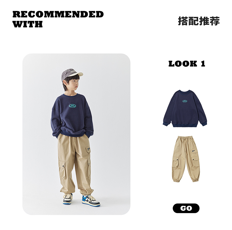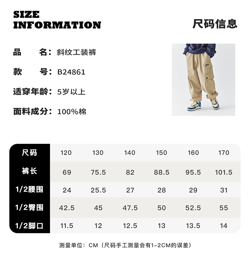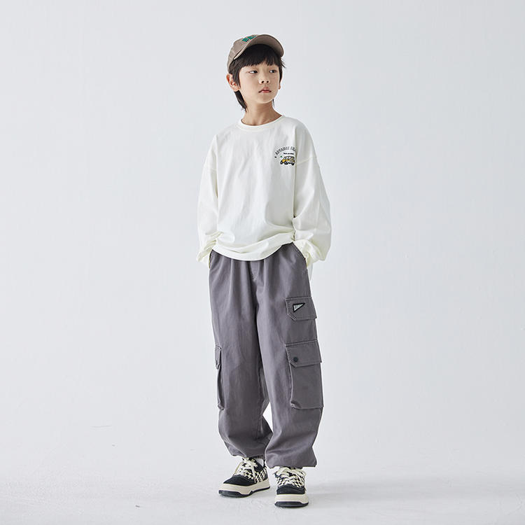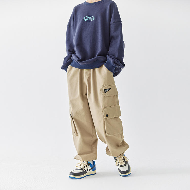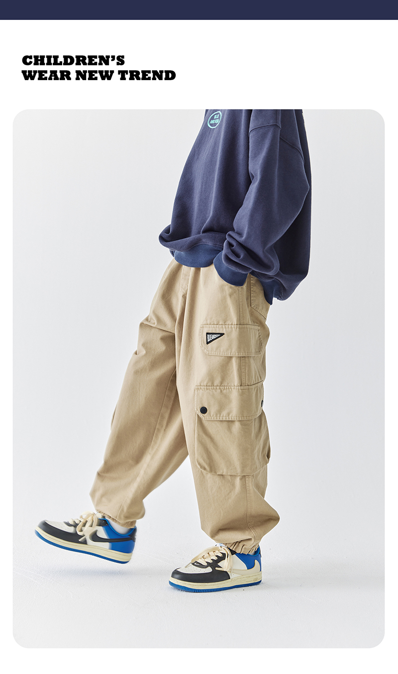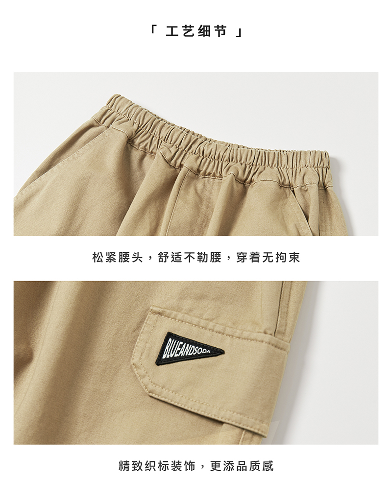 【代发】男款斜纹工装裤 蓝汽水童装斜纹重工裤子男童口袋设计中大童亲子束脚长裤