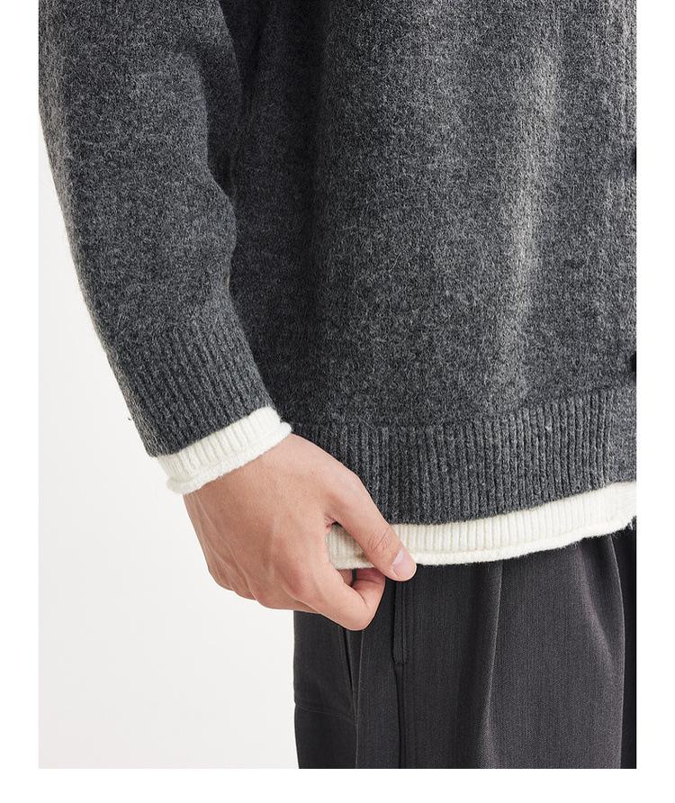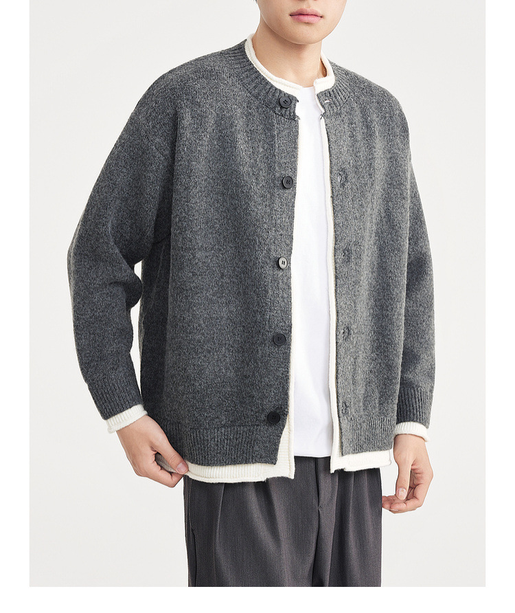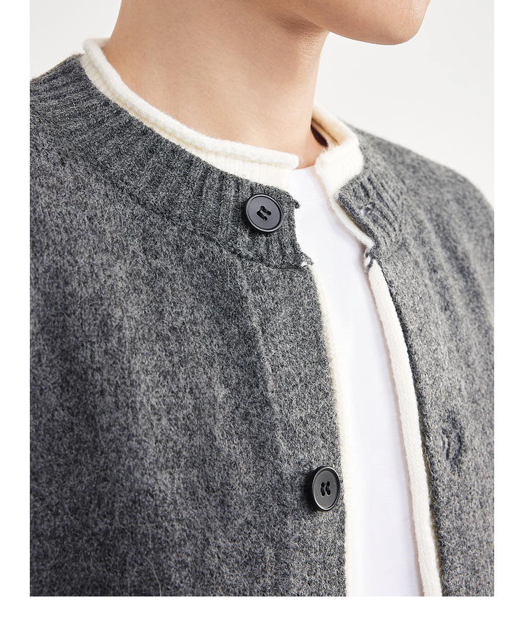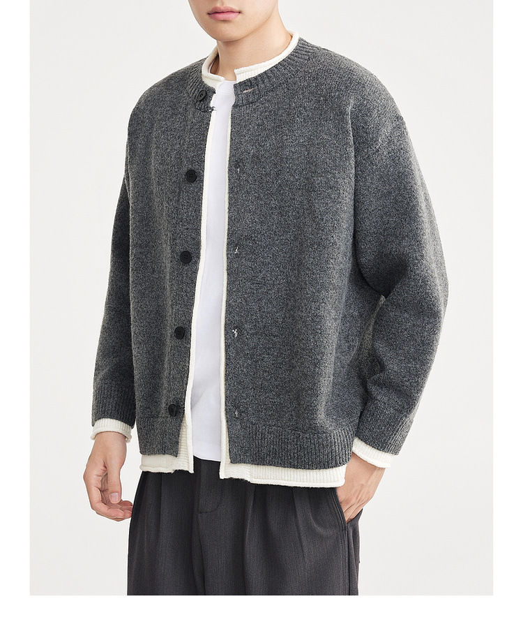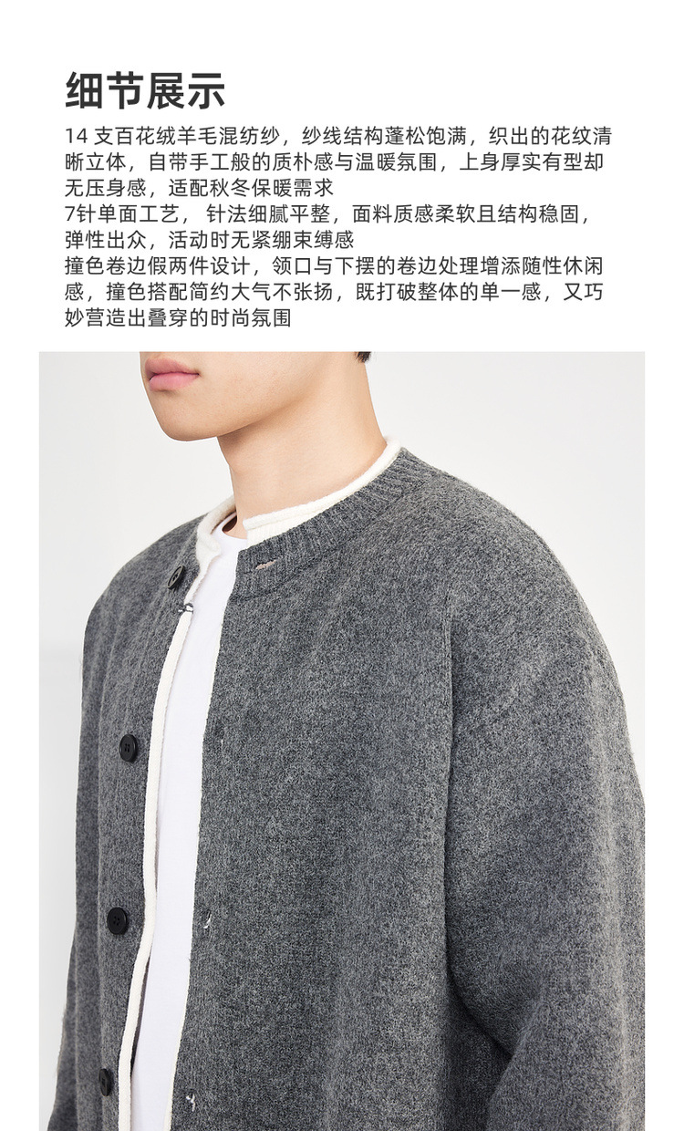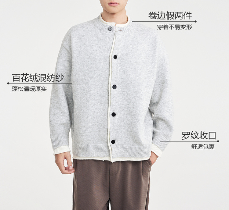 墨麦客男装撞色假两件针织外套男2025冬新款百花绒男士开衫22189