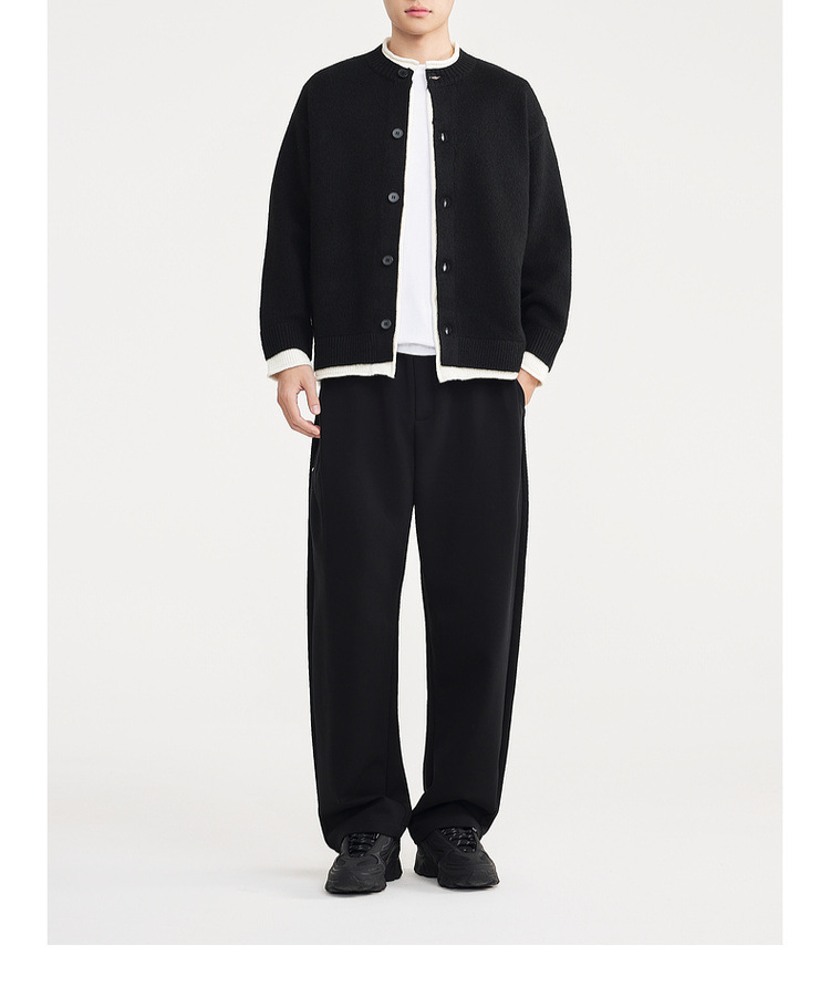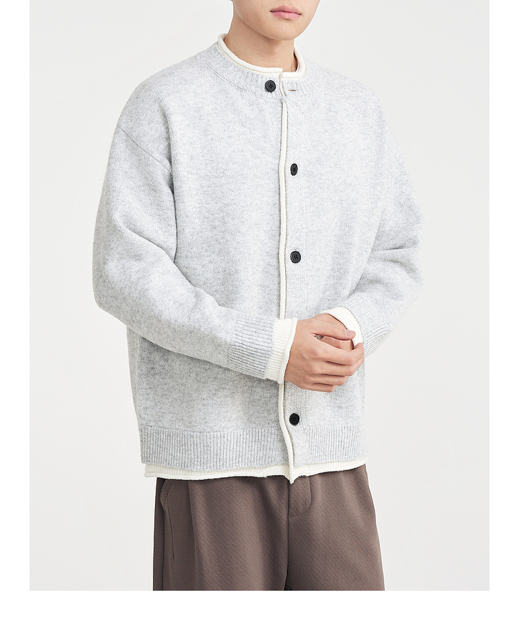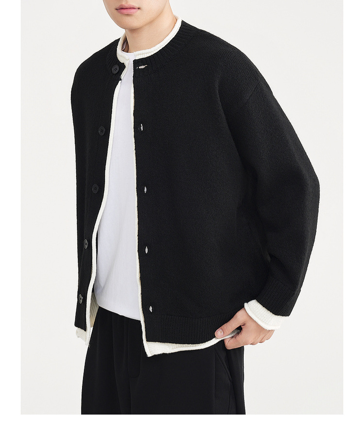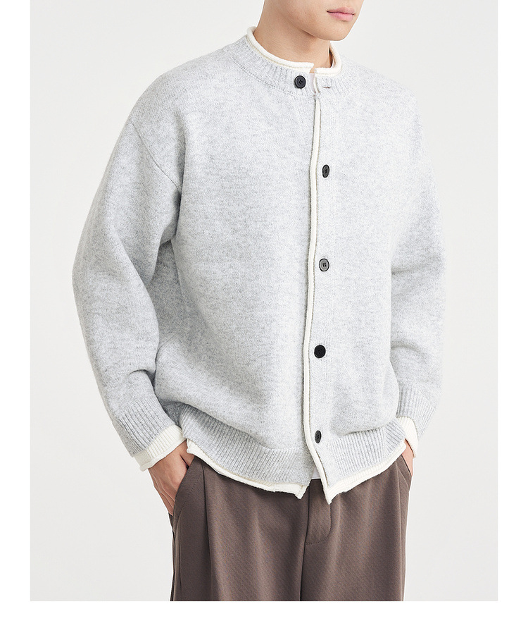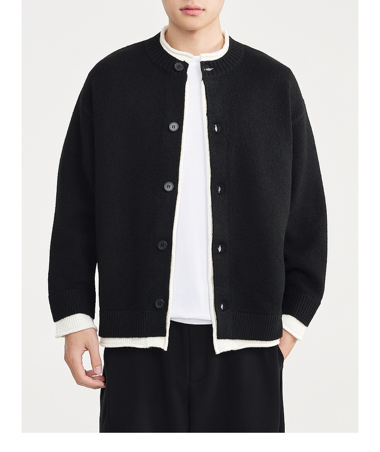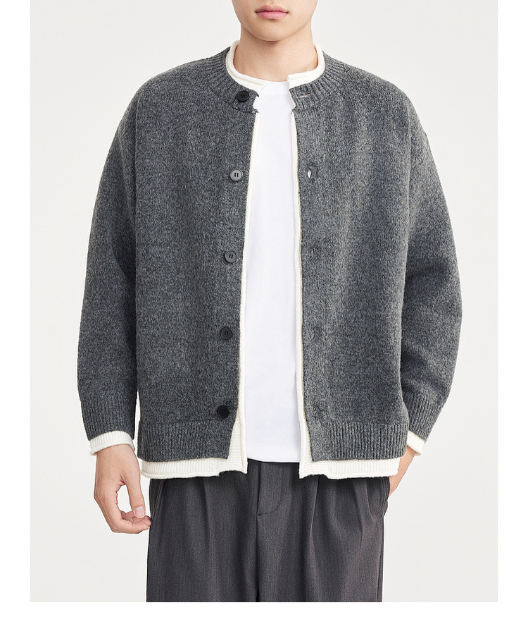 墨麦客男装撞色假两件针织外套男2025冬新款百花绒男士开衫22189