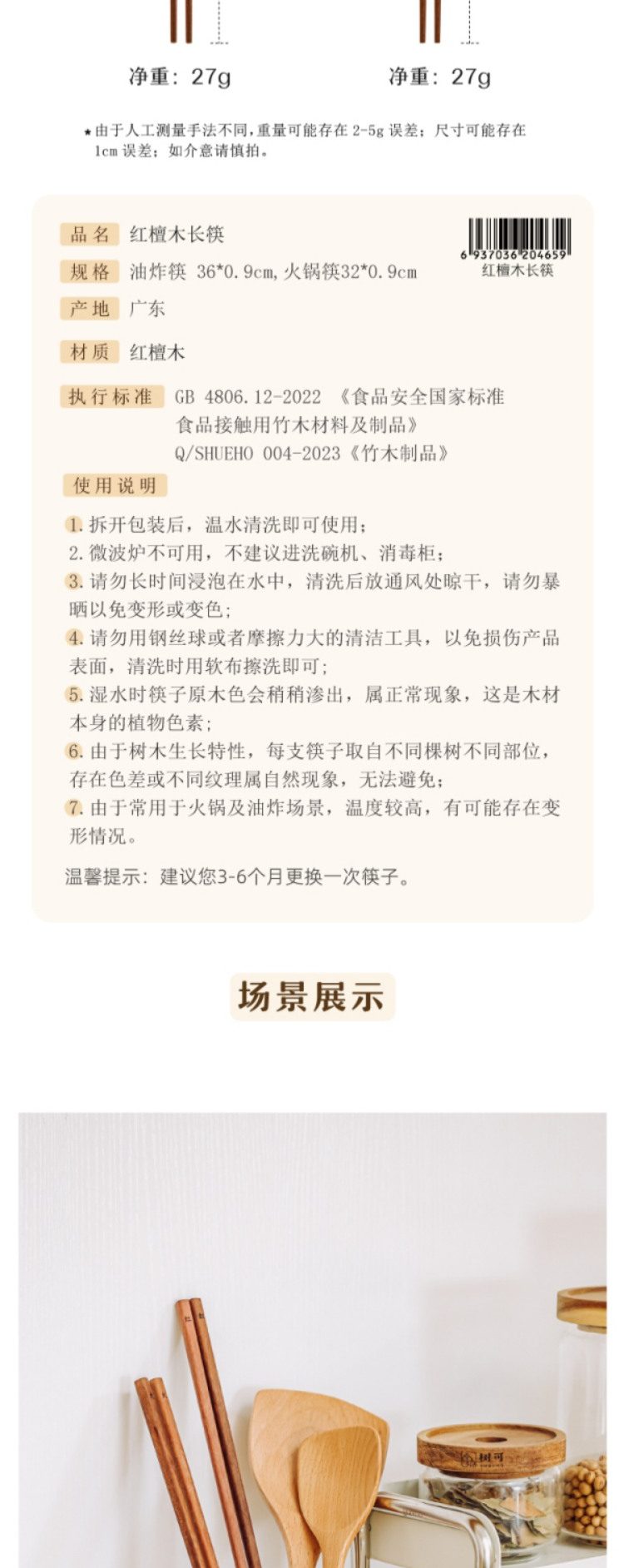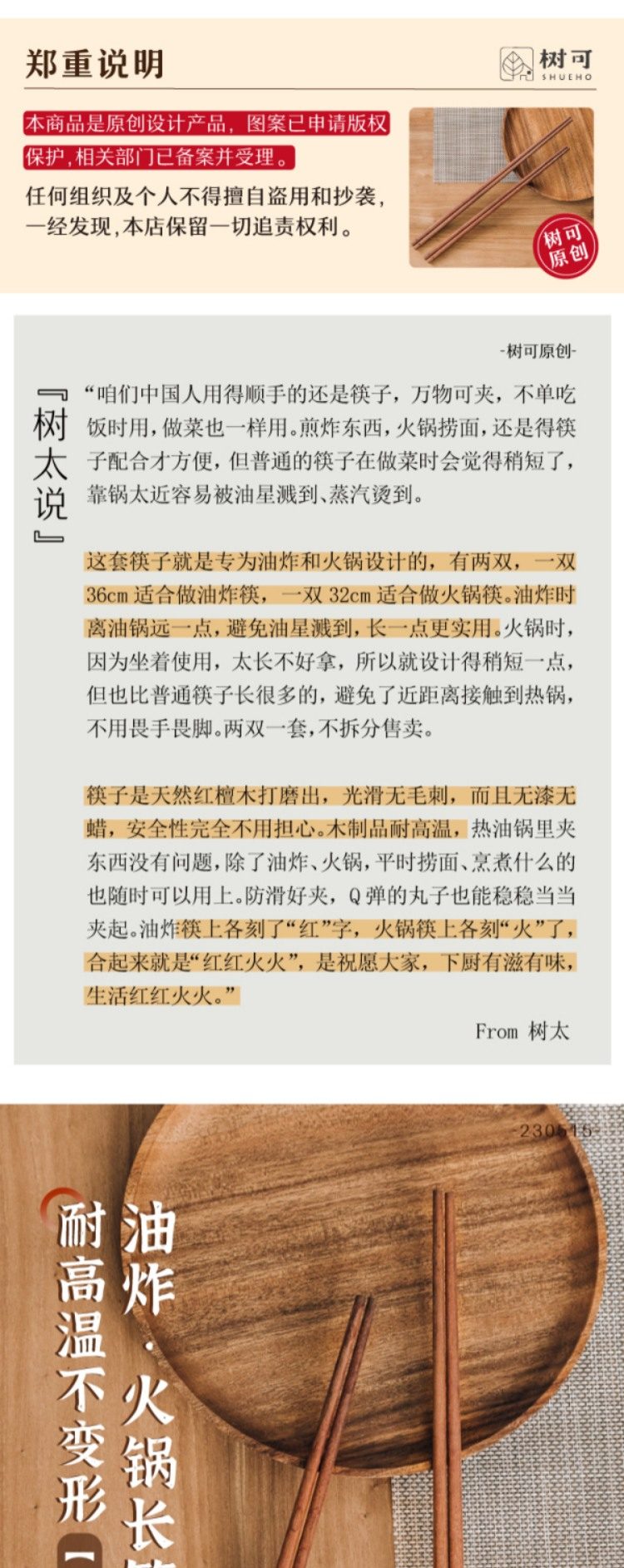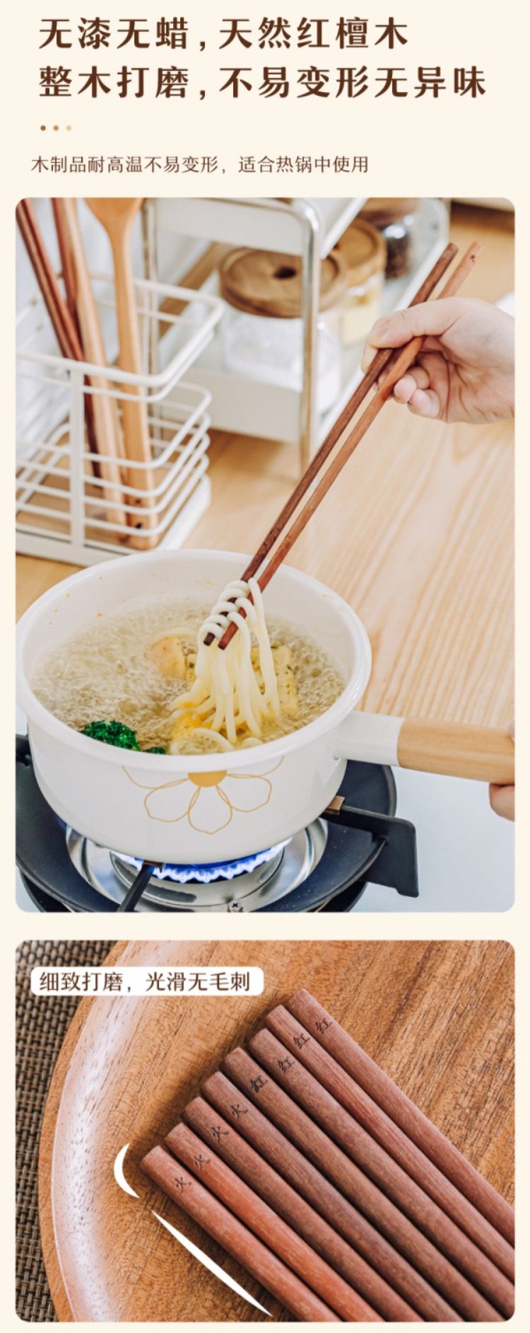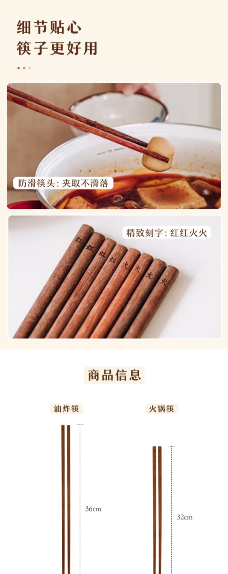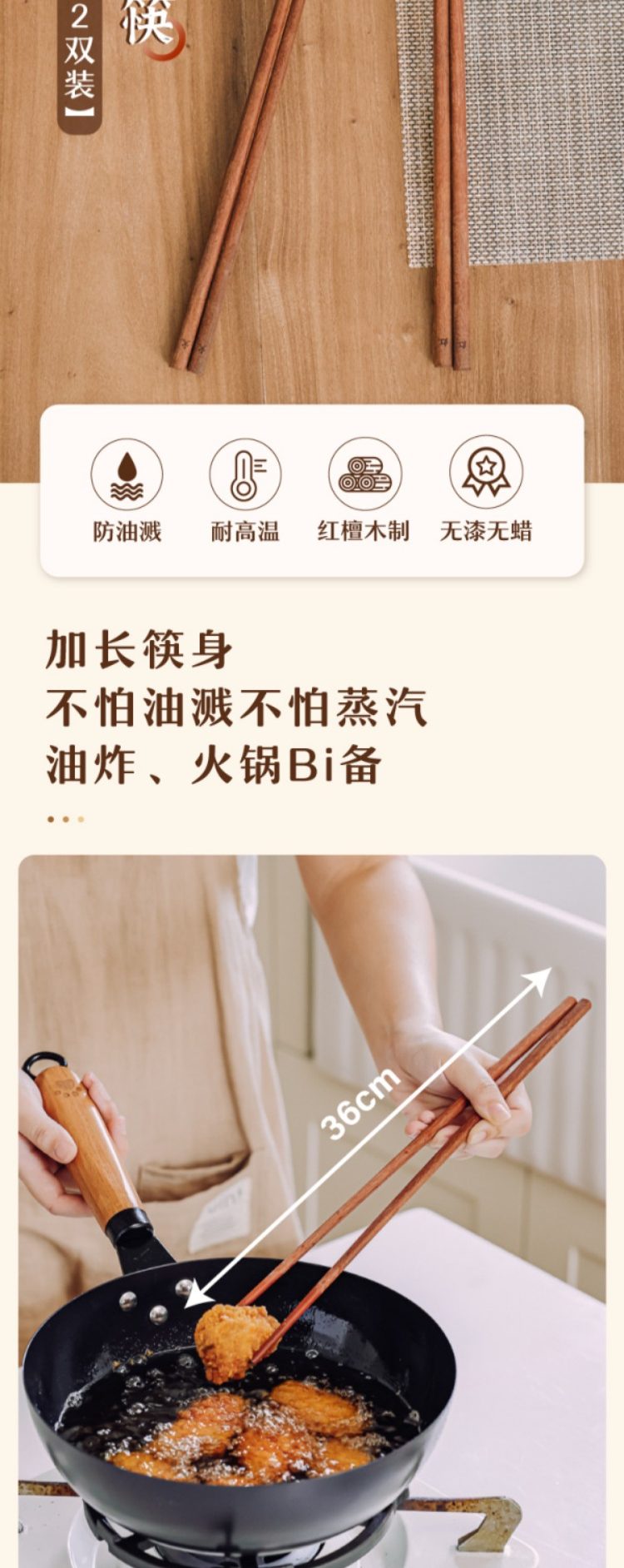 树可筷子油炸筷红檀木长筷子家用火锅筷防滑实木筷加长中式高档筷