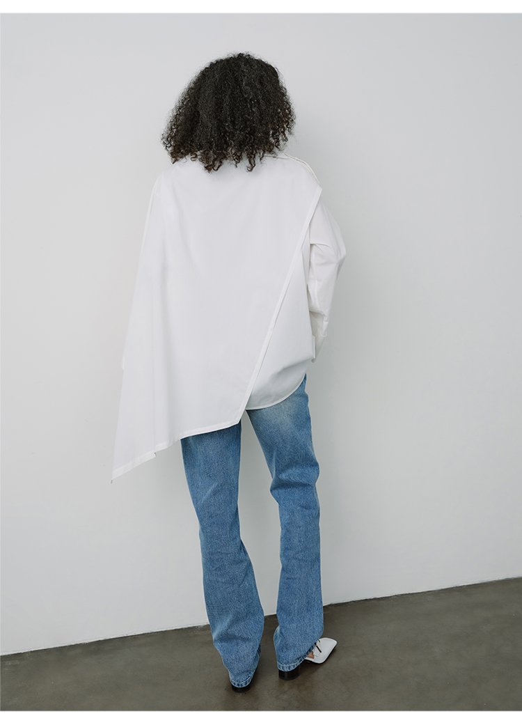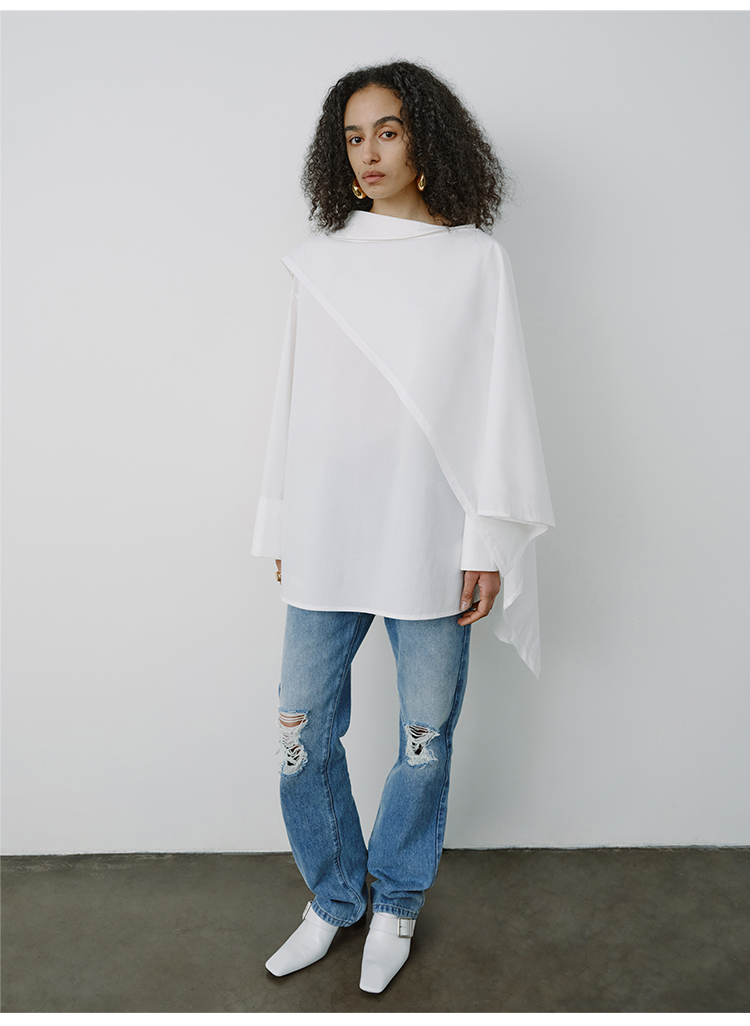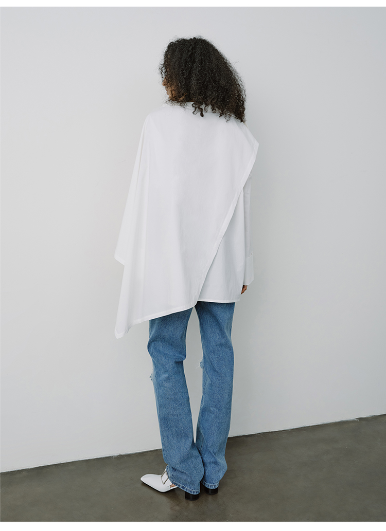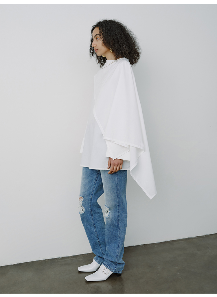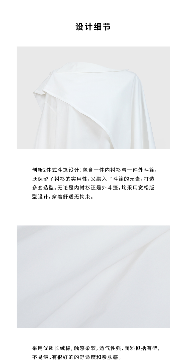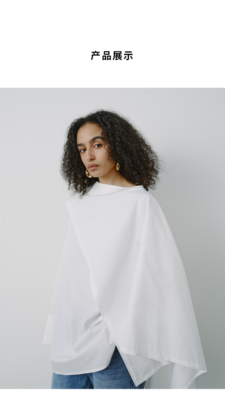 HIDEMI甄选长绒棉系列极简可拆卸斗篷设计感不对称剪裁廓形衬衫