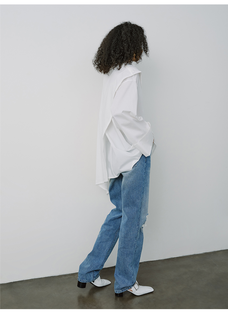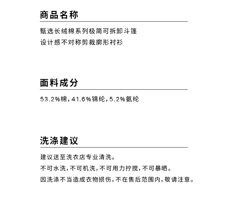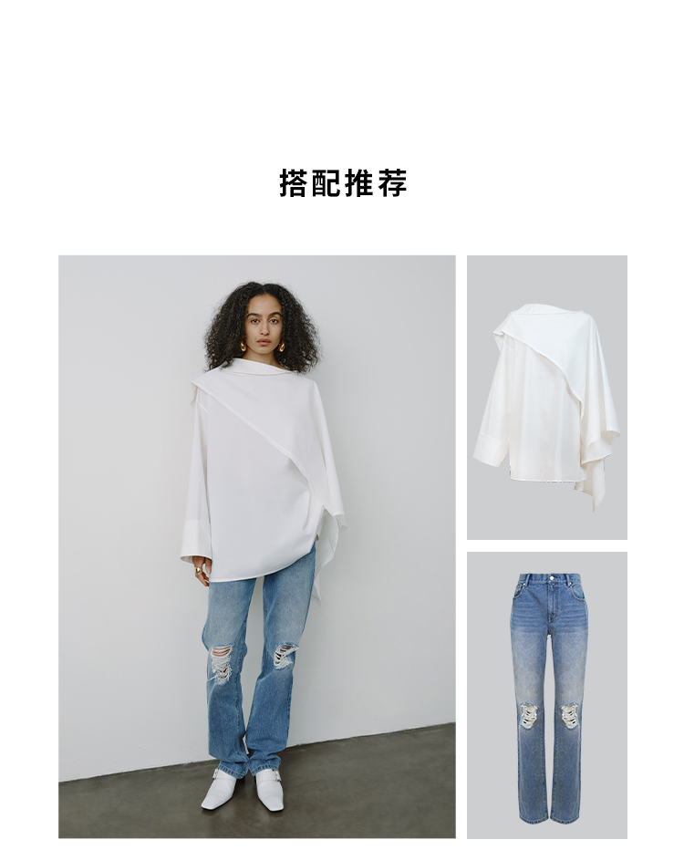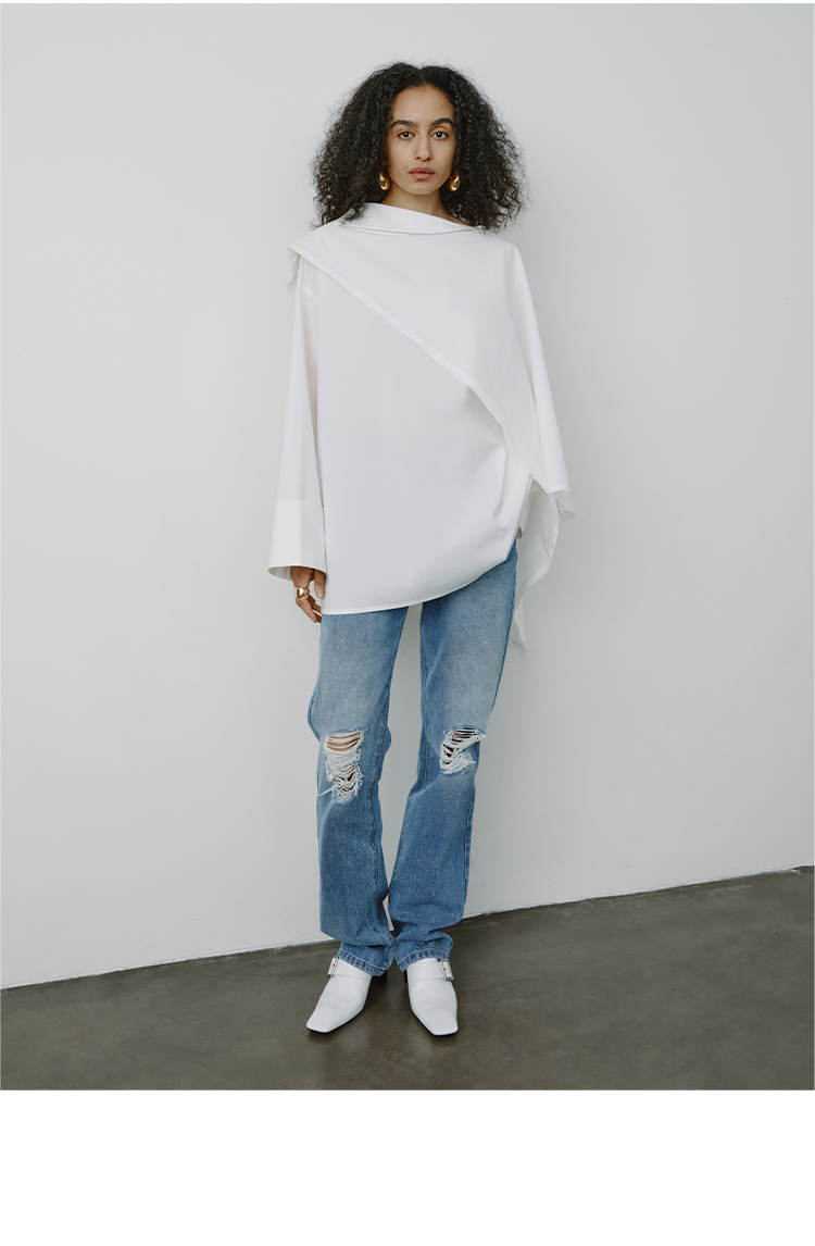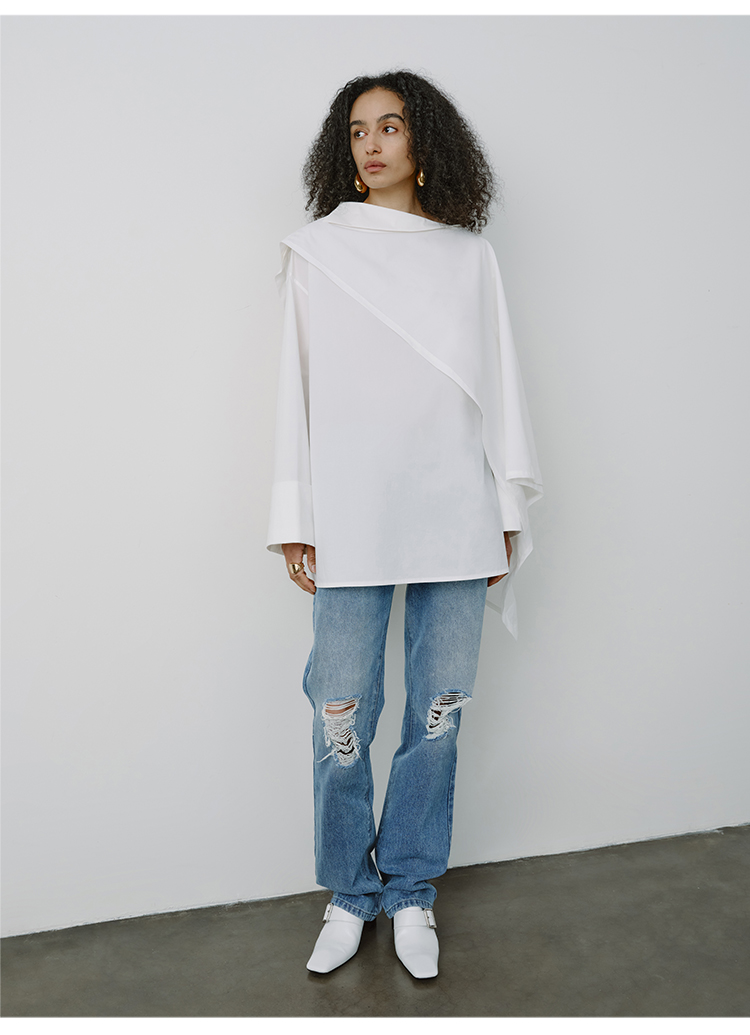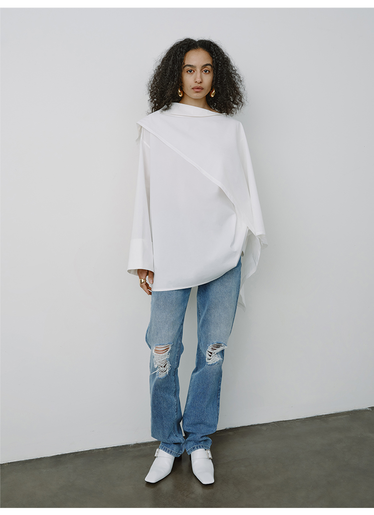 HIDEMI甄选长绒棉系列极简可拆卸斗篷设计感不对称剪裁廓形衬衫