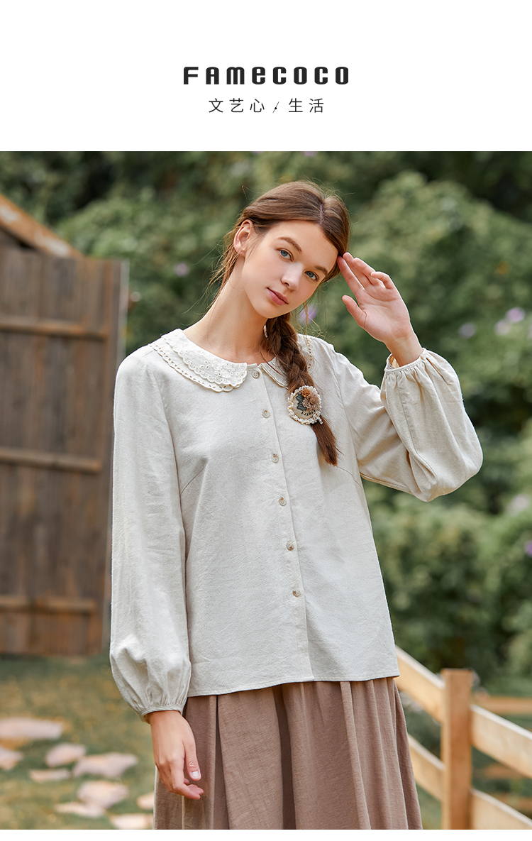 famecoco范可儿洋气春装女衬衫法式别致上衣F221BH008