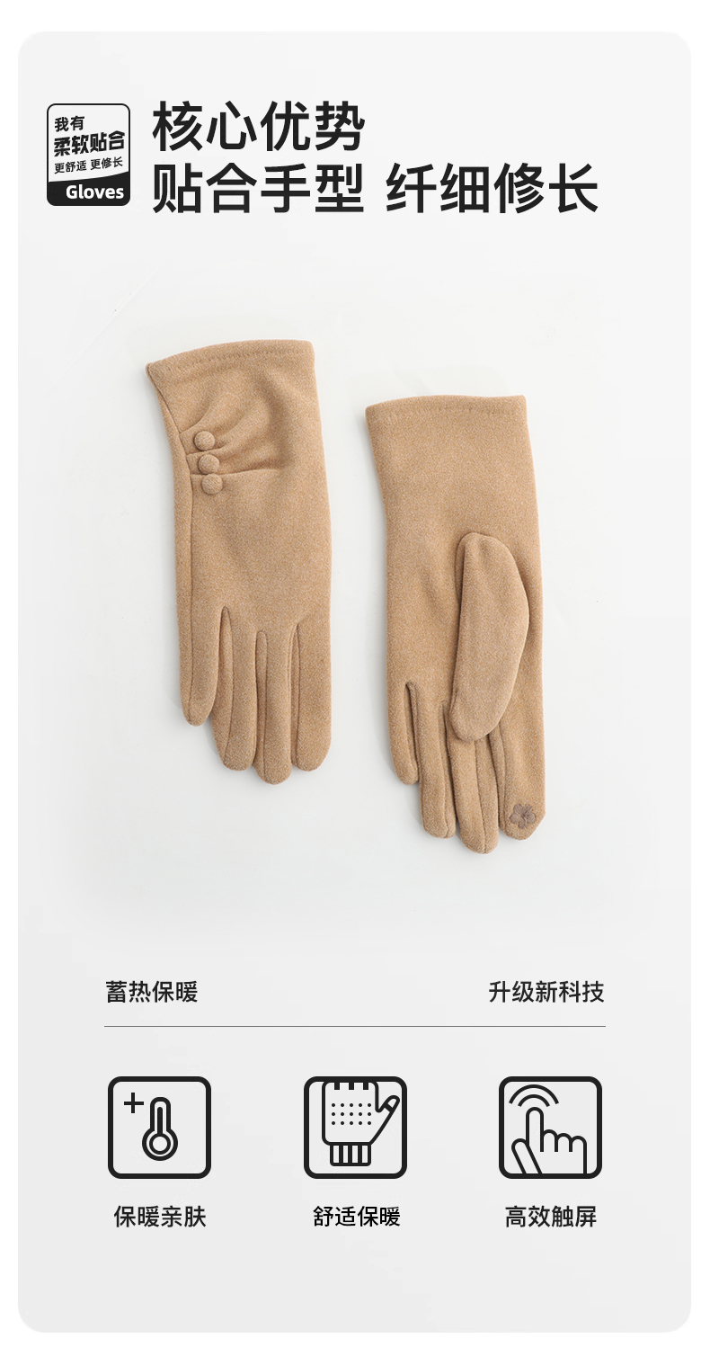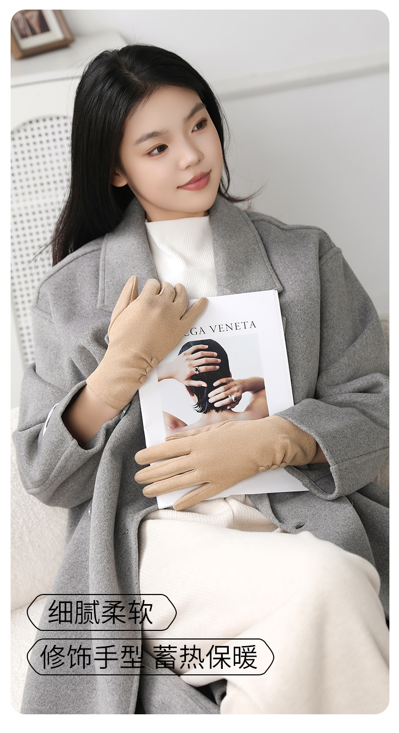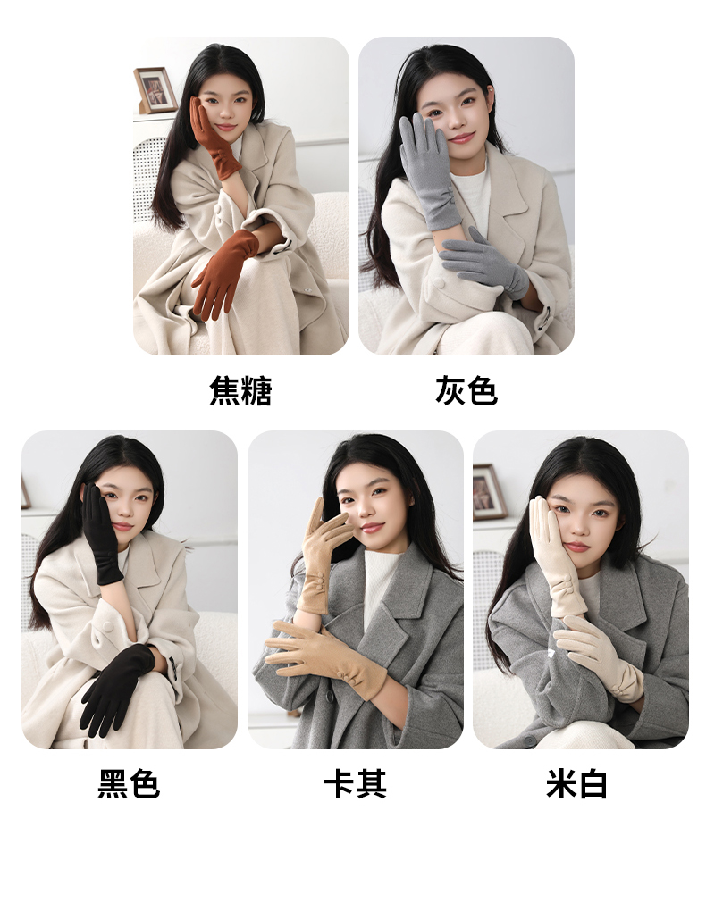 49元两副!小香风时尚女士手套 磨毛触屏保暖 秋冬加绒 修饰手型 蓄热防风 方便操作手机 时尚韩版百搭款式 骑车出行户外活动