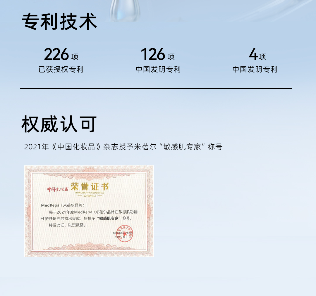 华熙生物集团旗下——米蓓尔MEDREPAIR 品牌以【调控神经免疫 修护受损肌肤】为核心理念,通过【神经免疫根源修敏】技术,源头进行受损信号调控,让敏感不再反复,重塑健康强韧肌肤。