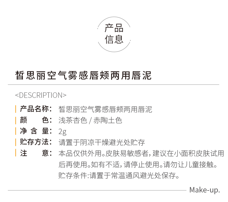 皙思丽空气雾感唇颊两用唇泥(浅茶杏色 赤陶土色)2g(250227-250228)