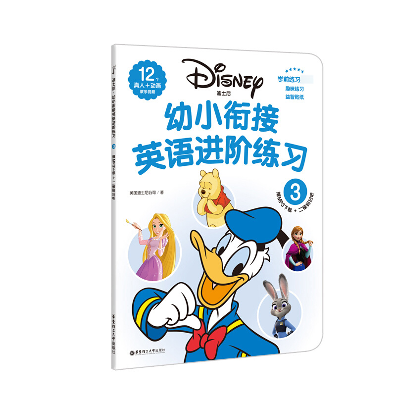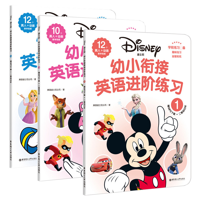 正版 全3册迪士尼 幼小衔接英语进阶练习123学前练习趣味练习益智贴纸0-3-6岁学前英语辅导12个真+动画教学视频字母认读主题词汇