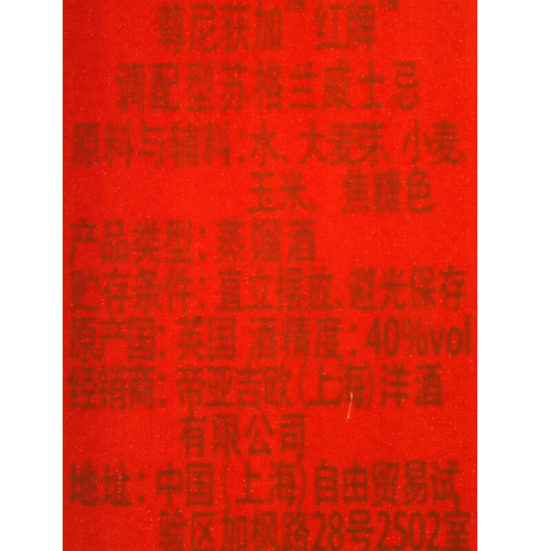 尊尼获加 红牌调配型苏格兰威士忌 40%vol 50ml