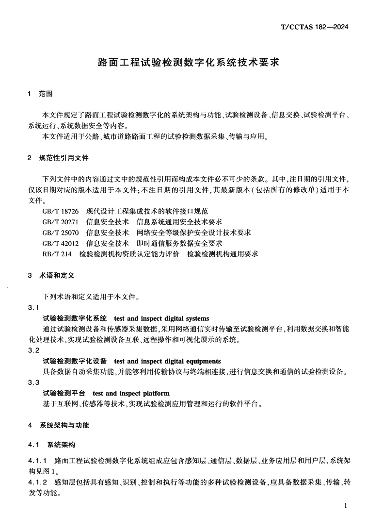 书名:路面工程试验检测数字化系统技术要求T/CCTAS 182—2024