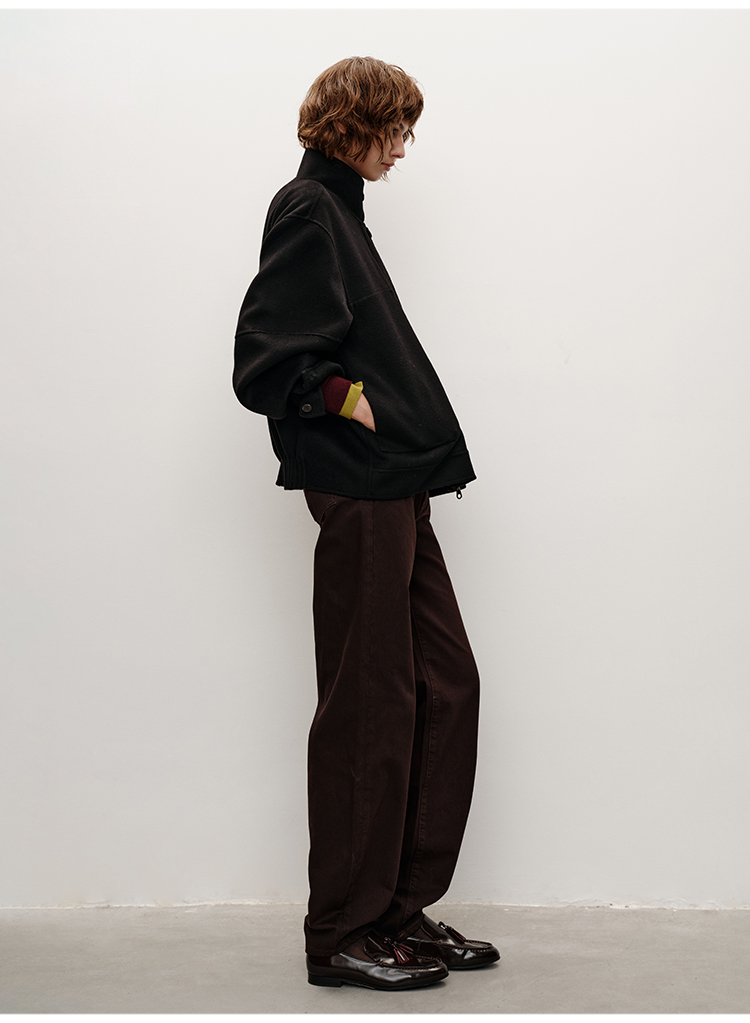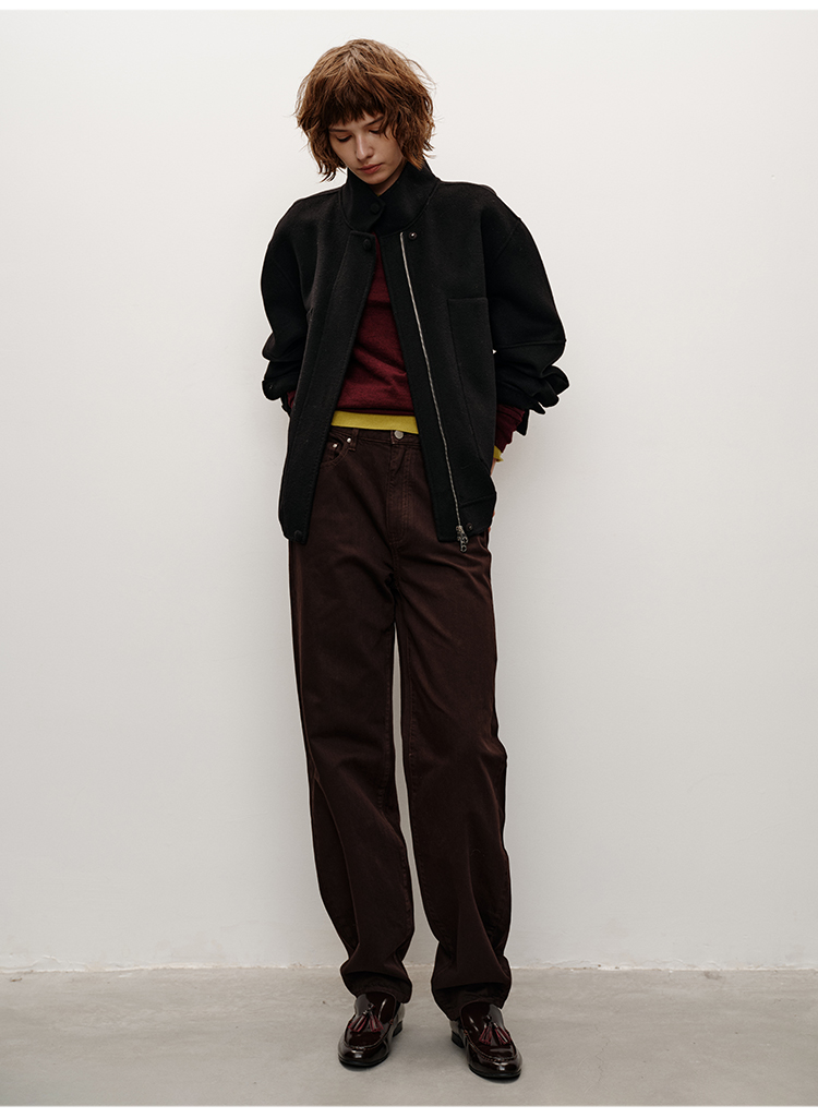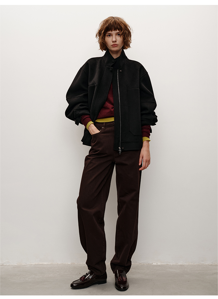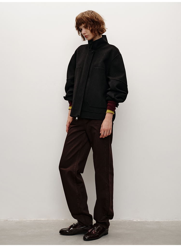 HIDEMI 进口澳洲美利奴羊毛立领廓形双面呢空军夹克短款大衣女