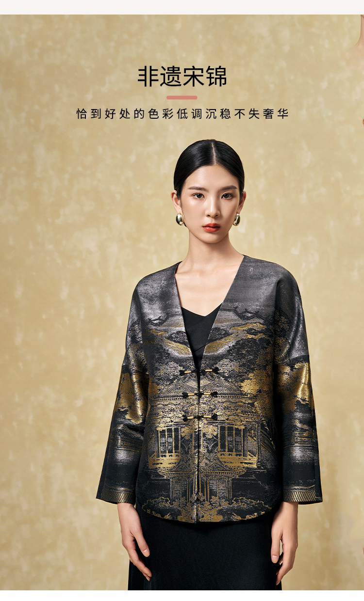 SAINTJOY/上久楷宋锦外套 复古 中国风 女士上衣 汉宫秋月图 CY1024207001