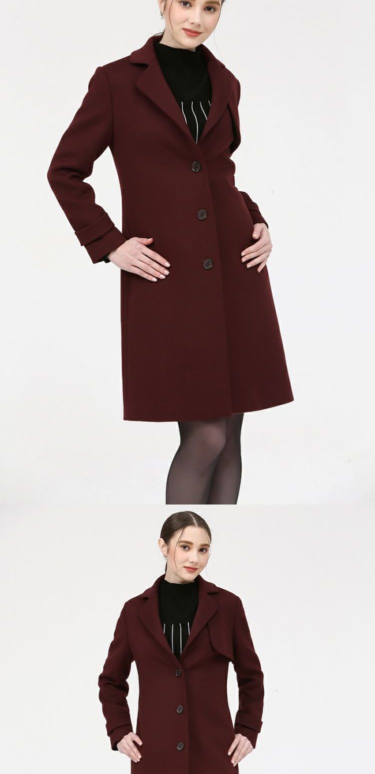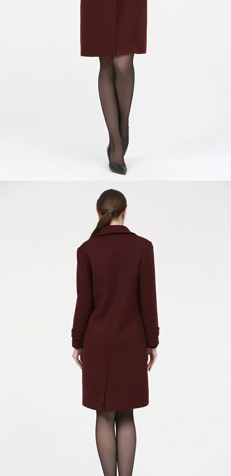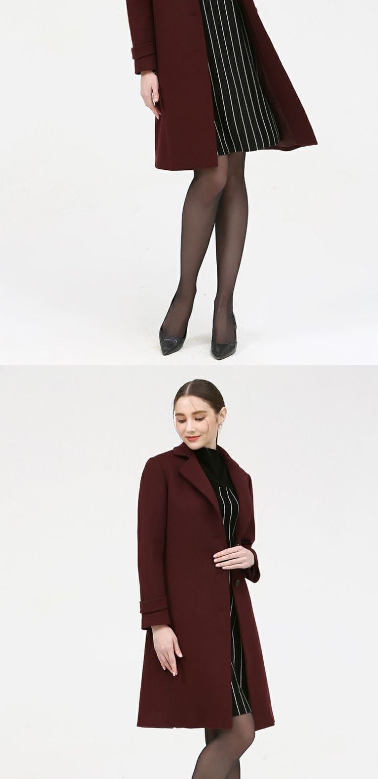 佐尔美冬季新品女士纯色中长款修身羊毛外套E74ZZ33