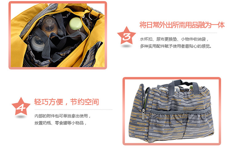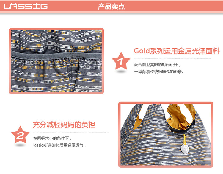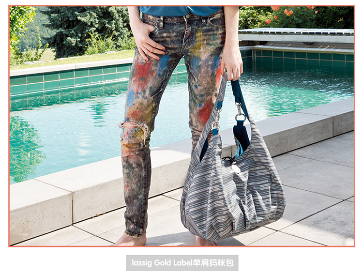 LASSIGGoldLabel系列妈咪包-单肩包麻灰条LASCLSB140