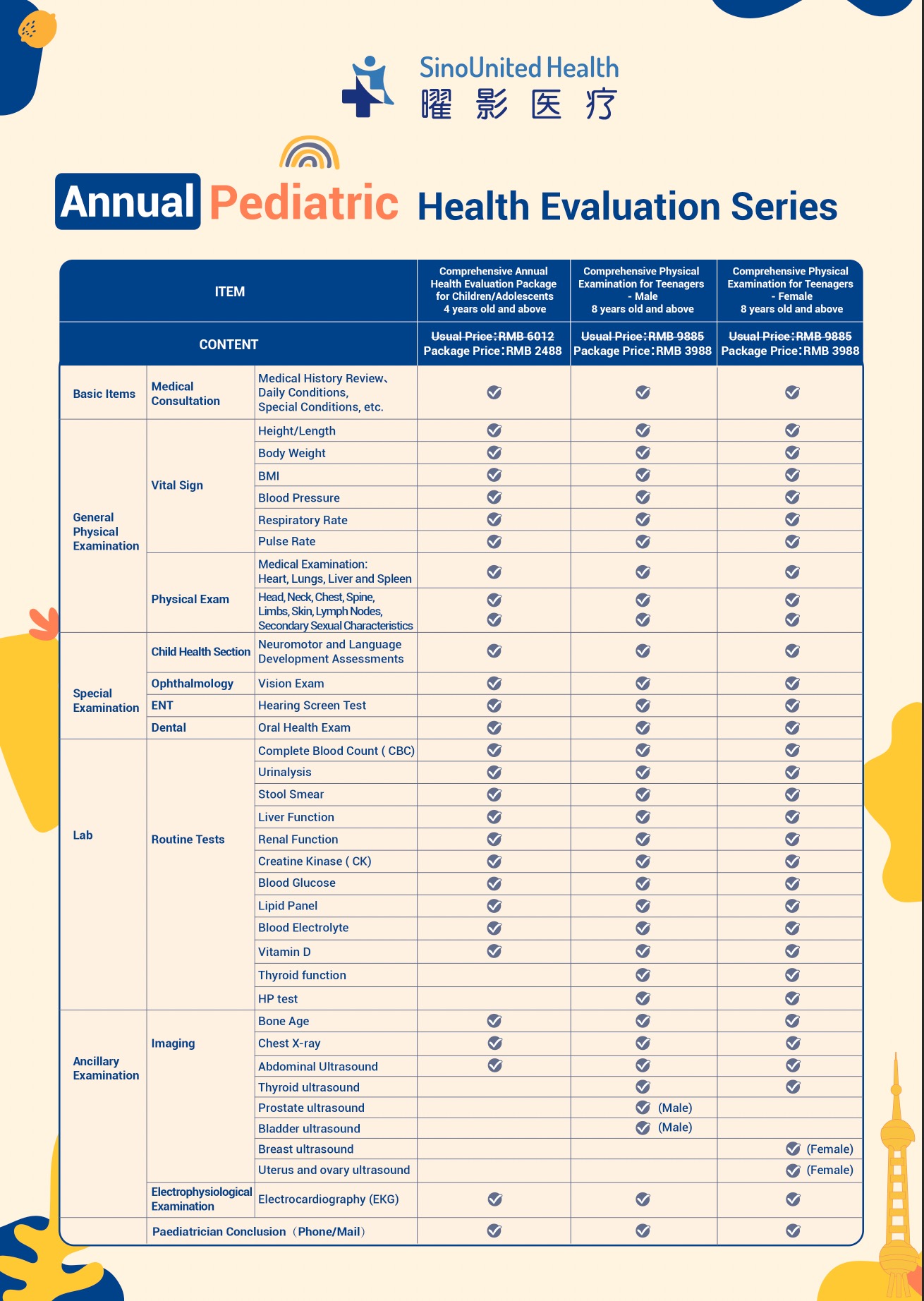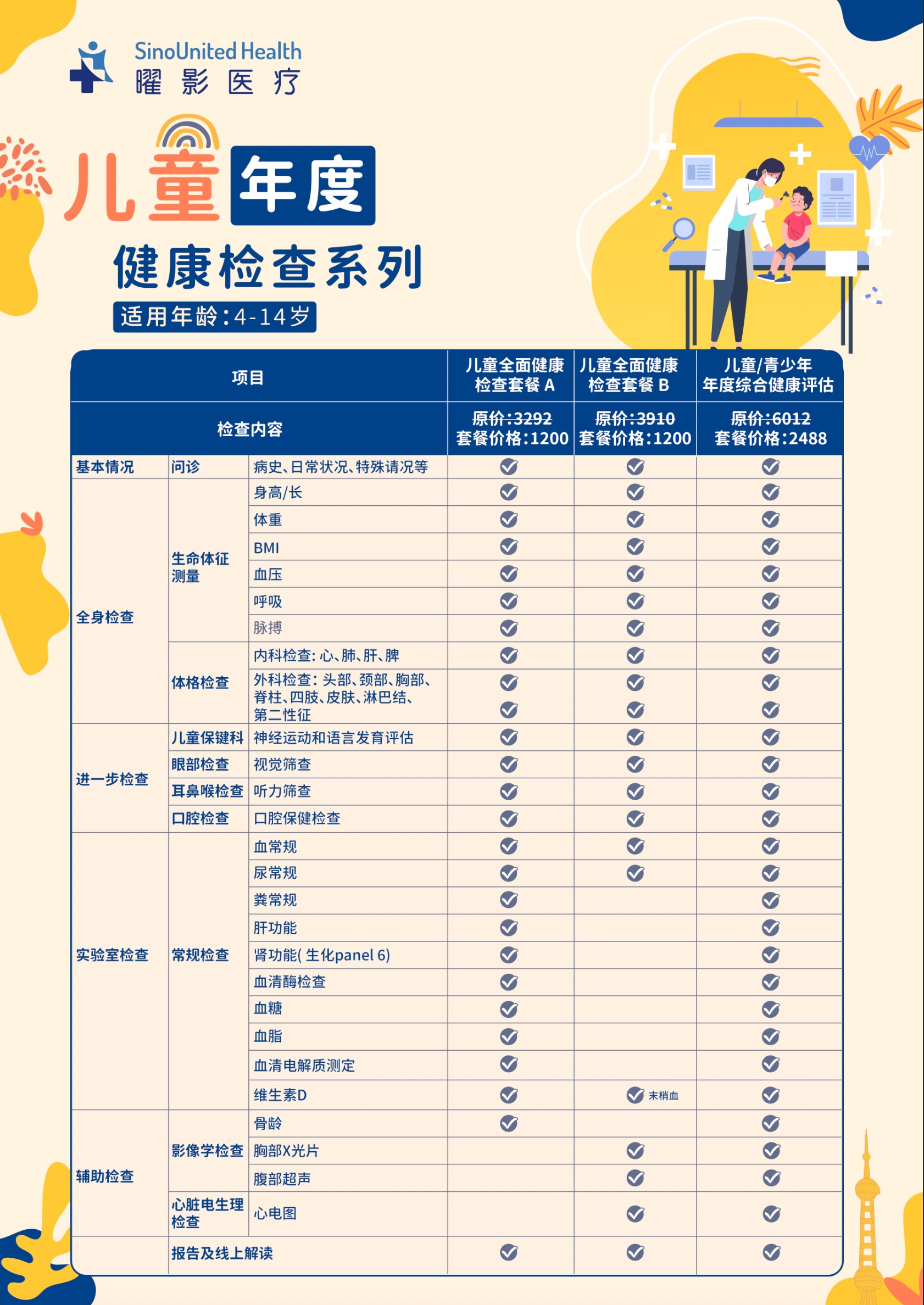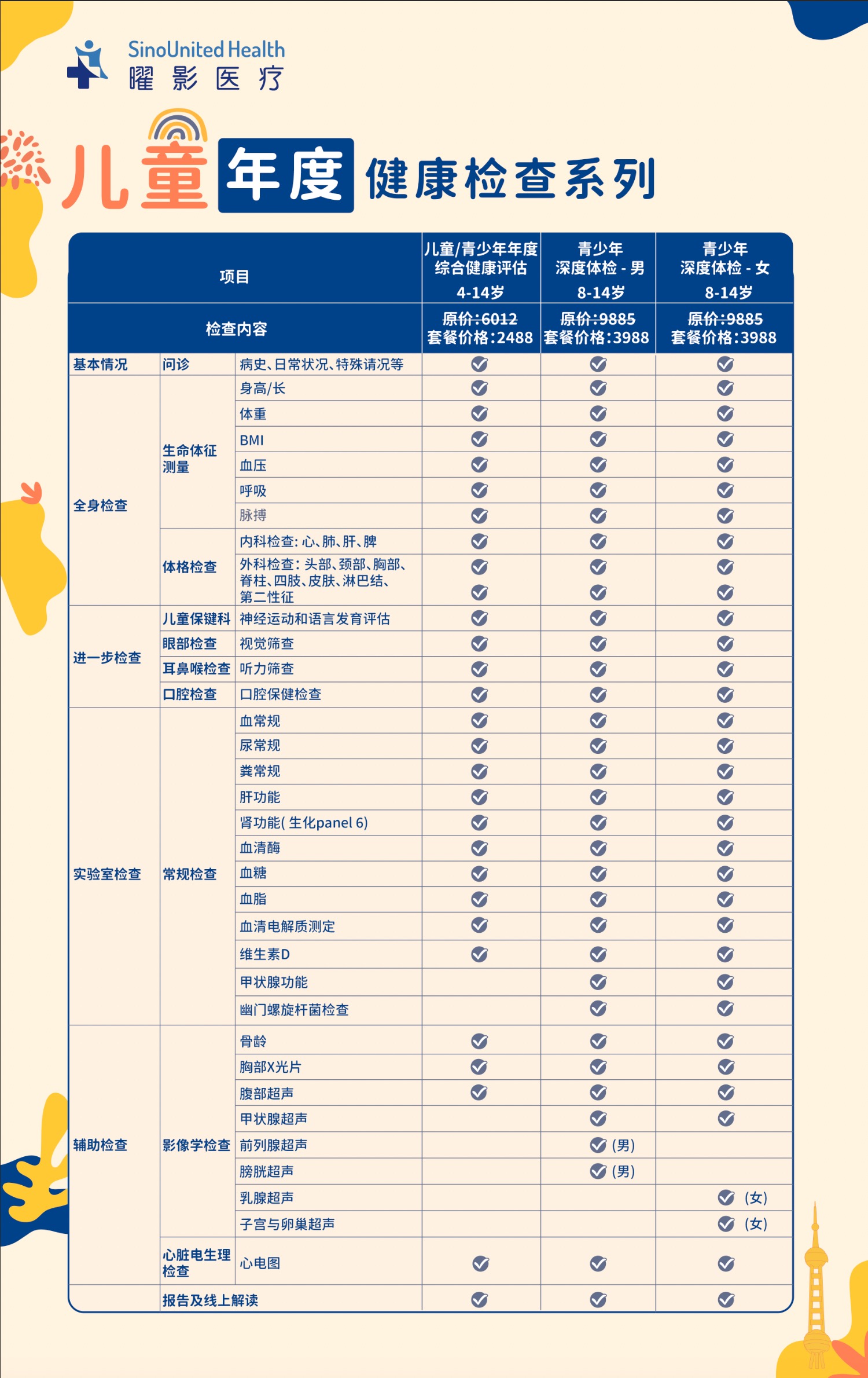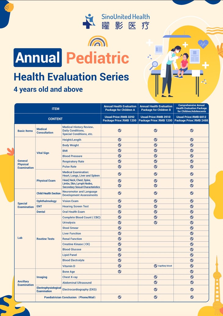 儿童年度全面健康检查套餐 / 儿童/青少年年度综合健康评估 /青少年深度体检 4-14岁