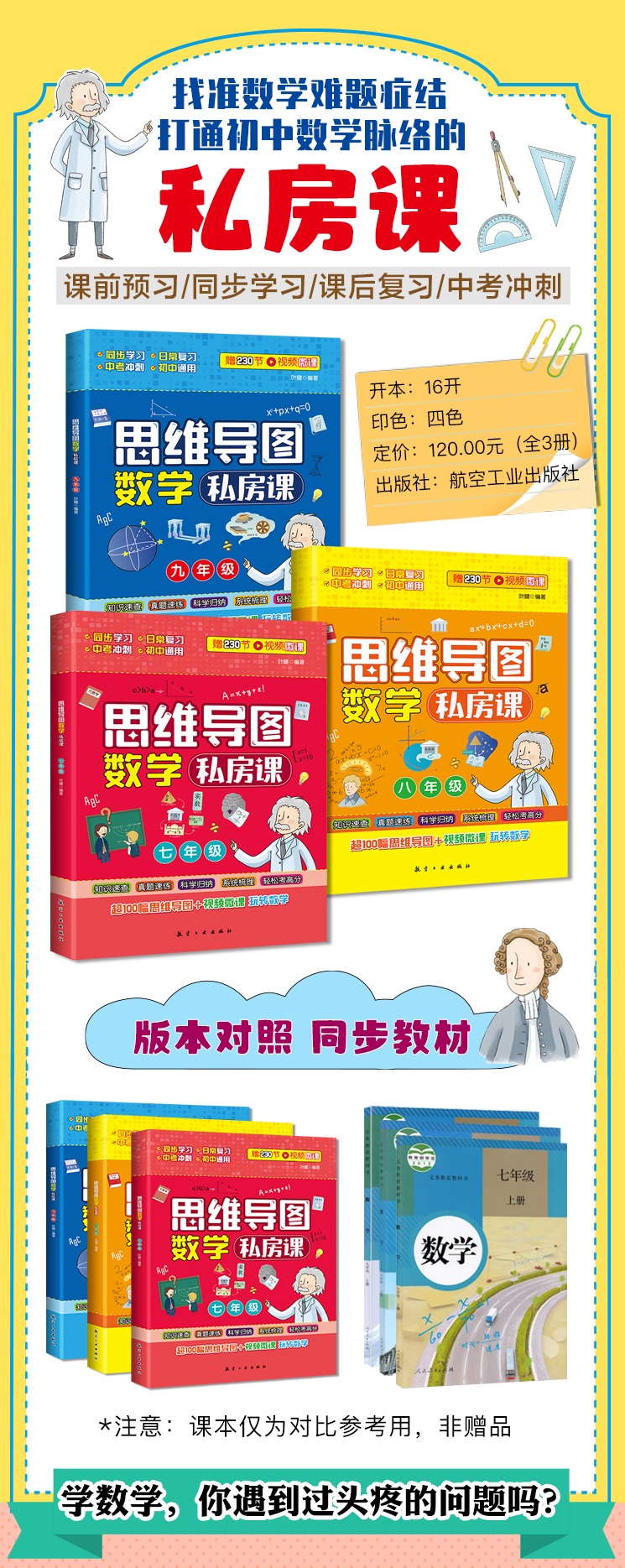 【初中数学】《数学私房课-思维导图》全3册 赠送230节视频微课【10-15岁】