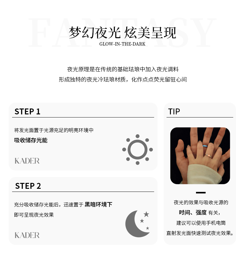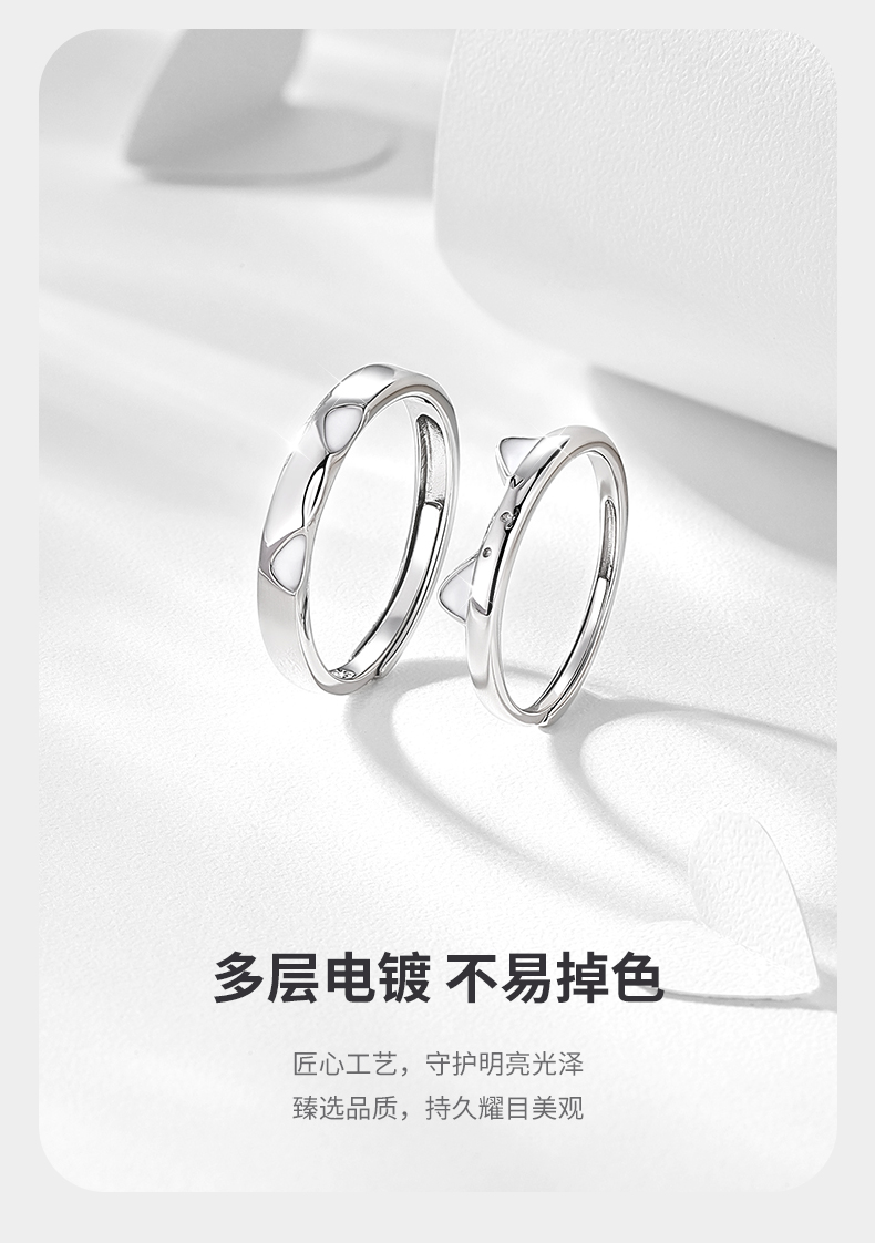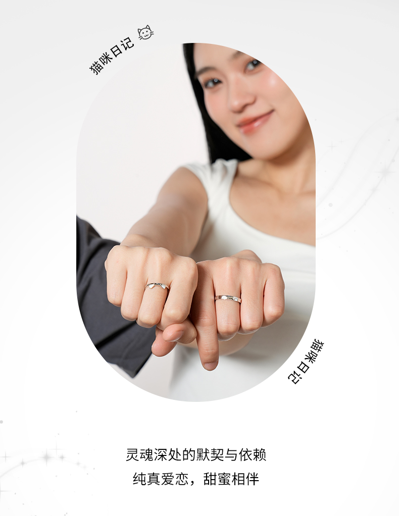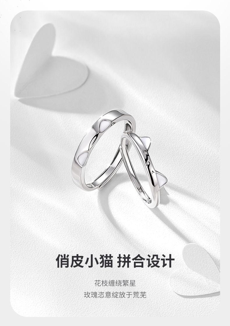【夜光|原创】 卡蒂罗KADER 猫咪日记情侣对戒(夜光) 轻奢可爱ins风萌趣猫耳生动立体俏皮设计开口可调节一对 925银 戒指 男女同款情侣款 银色 蛇年礼