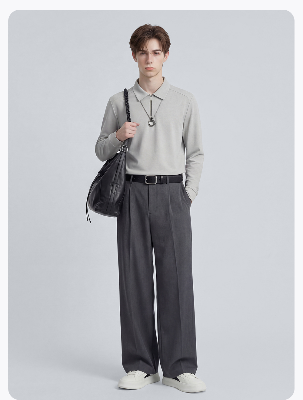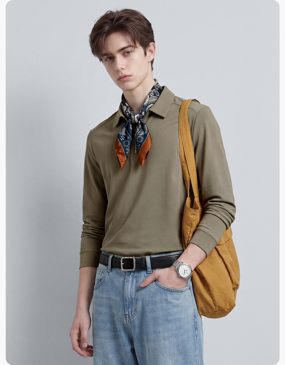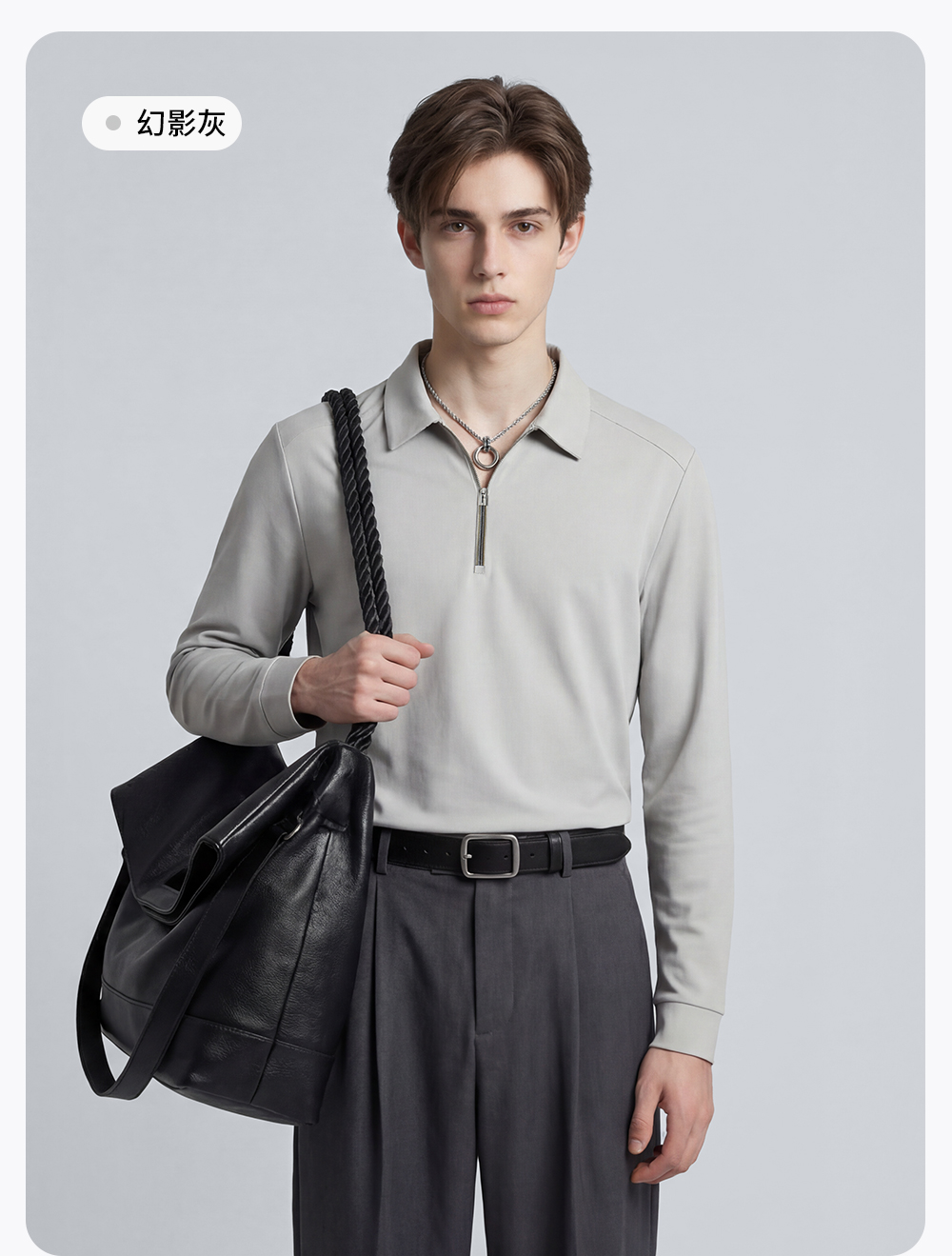 【含桑蚕丝】圣得西翻领POLO衫2025秋季新款商务风纯色长袖T恤男