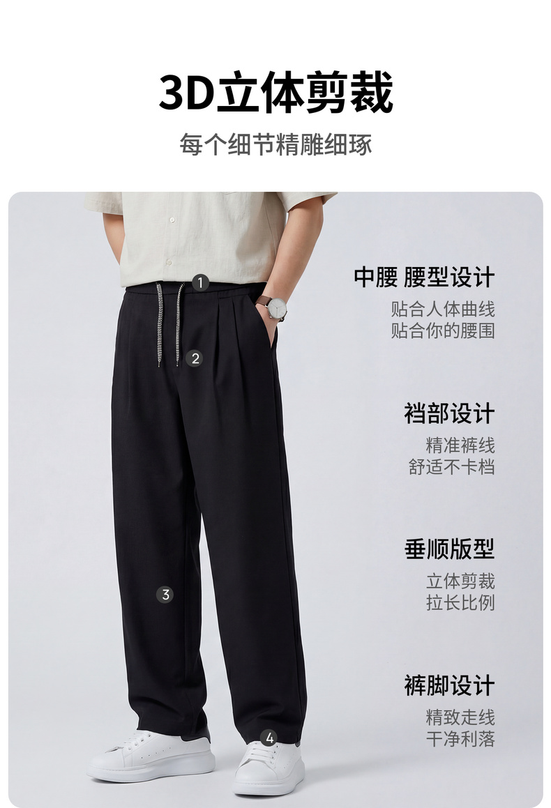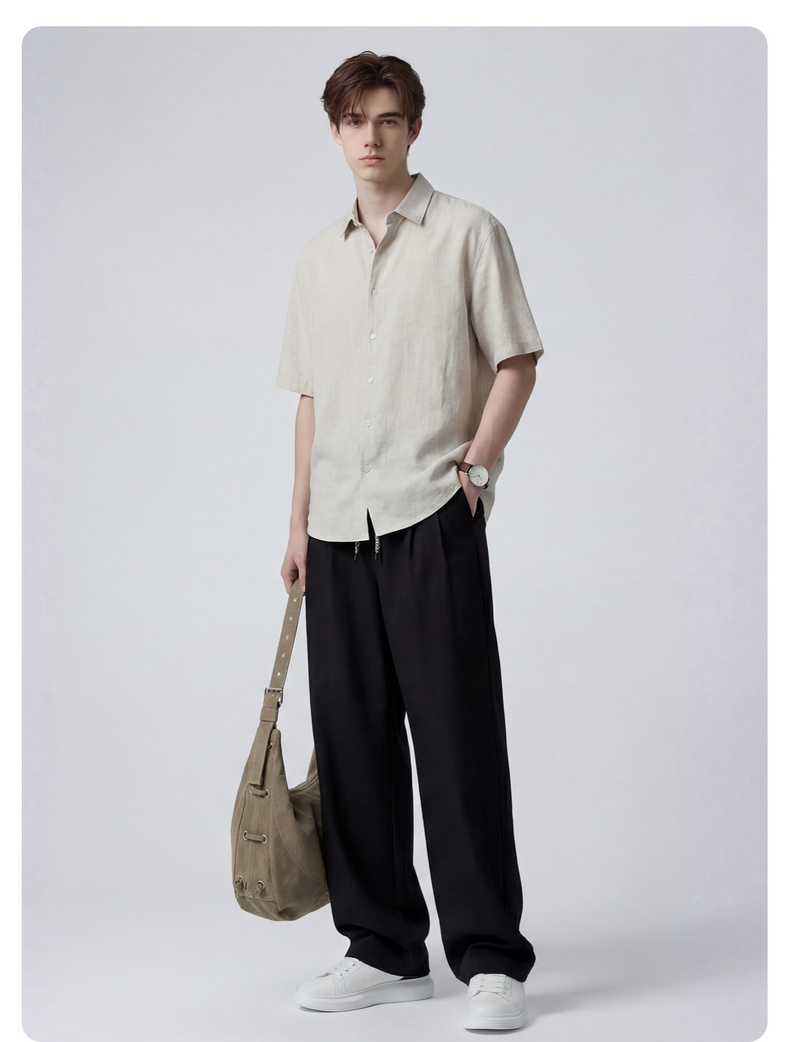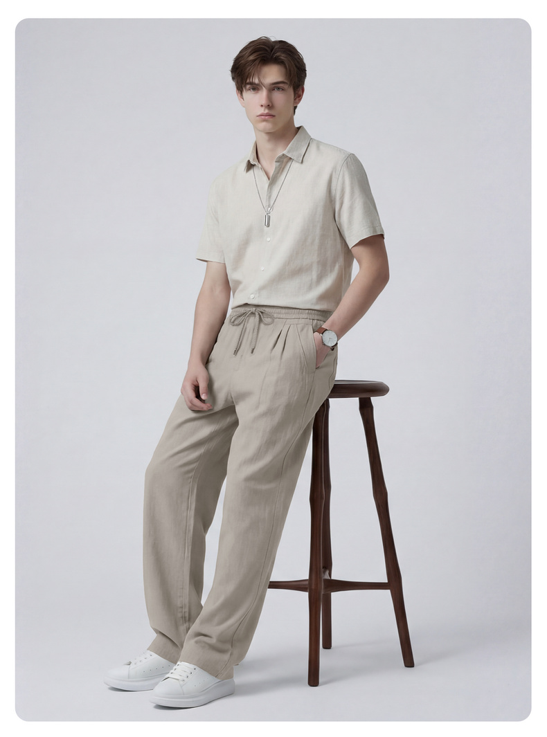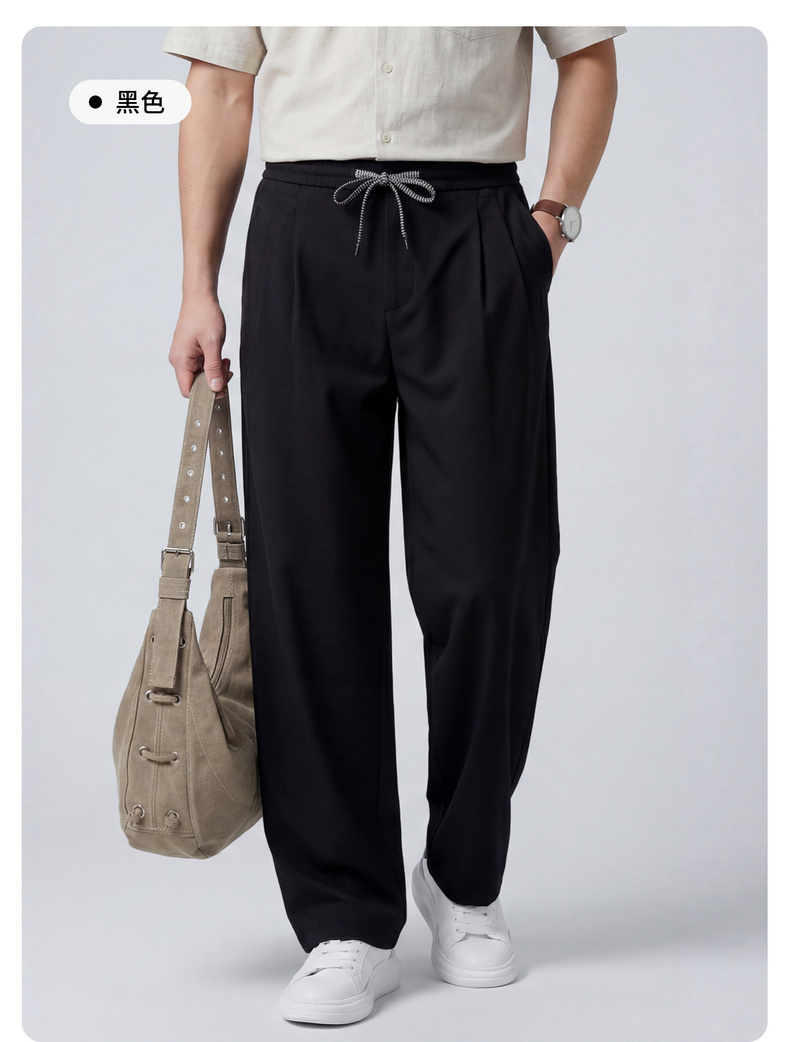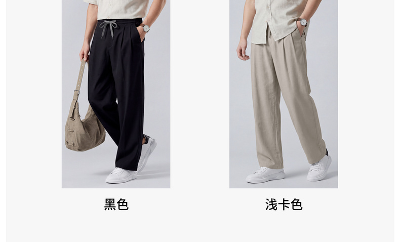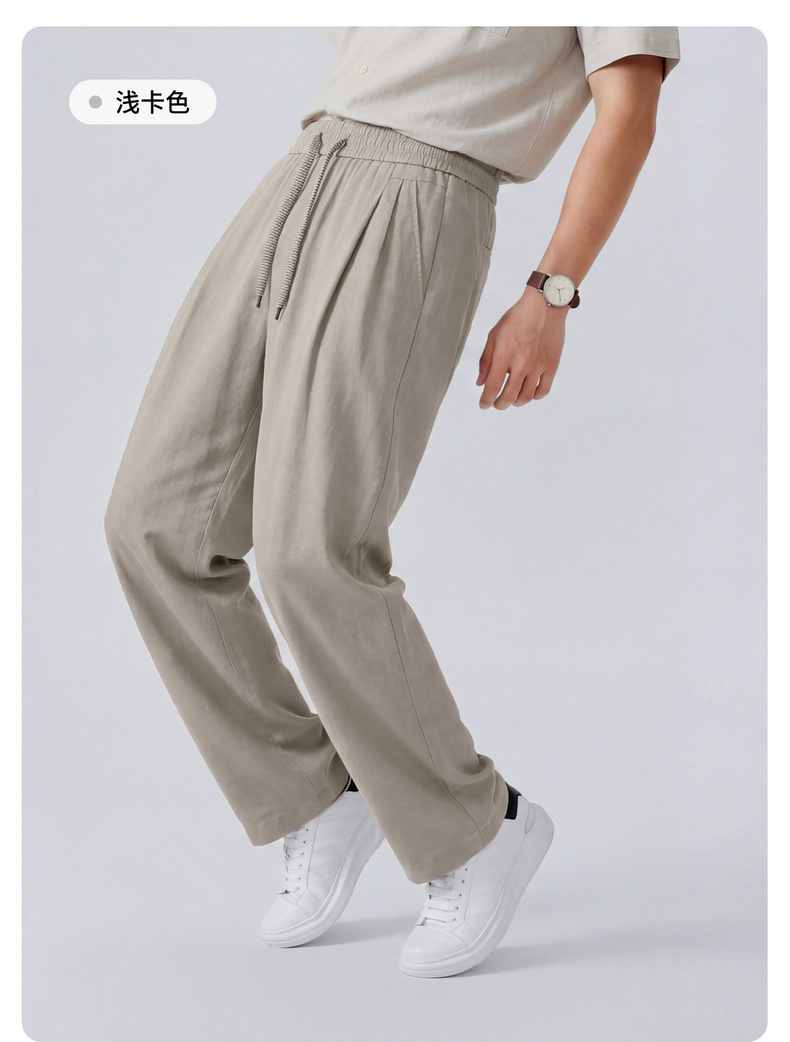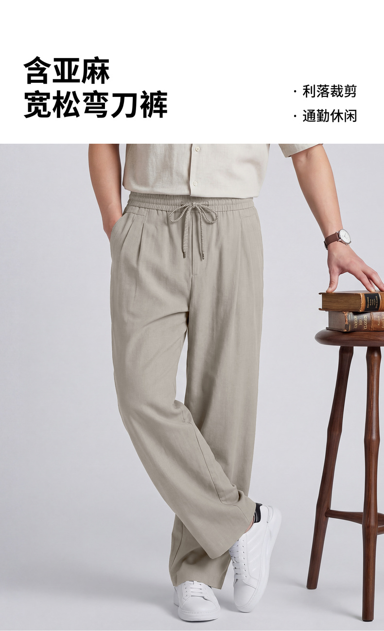 【含亚麻】圣得西宽松弯刀裤子男款2026新款春季松紧腰直筒休闲裤