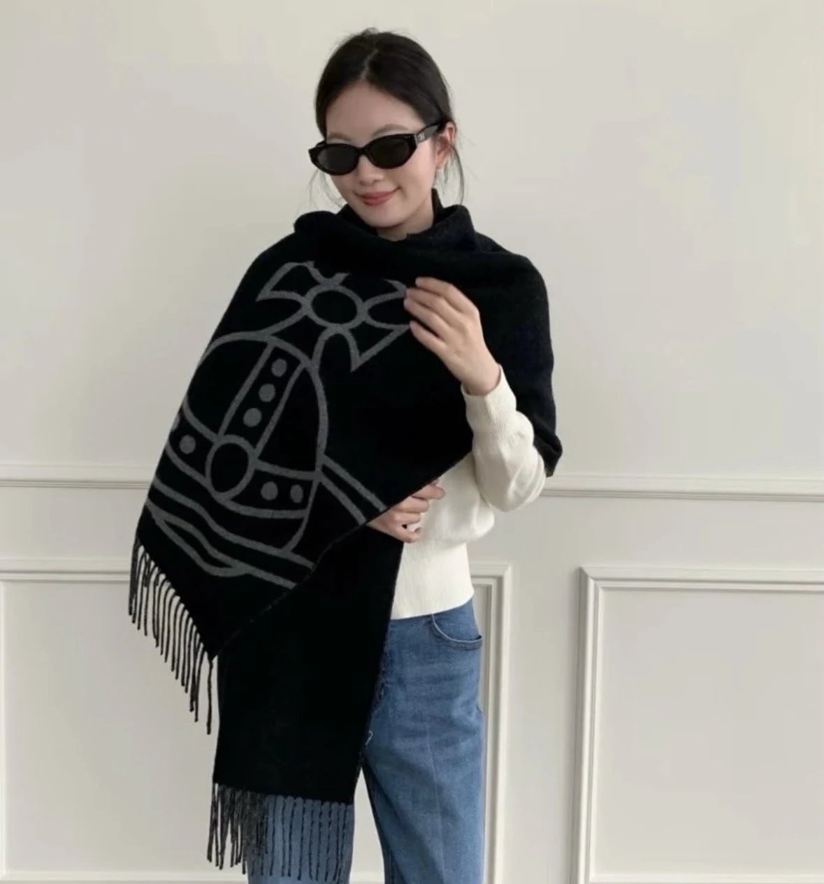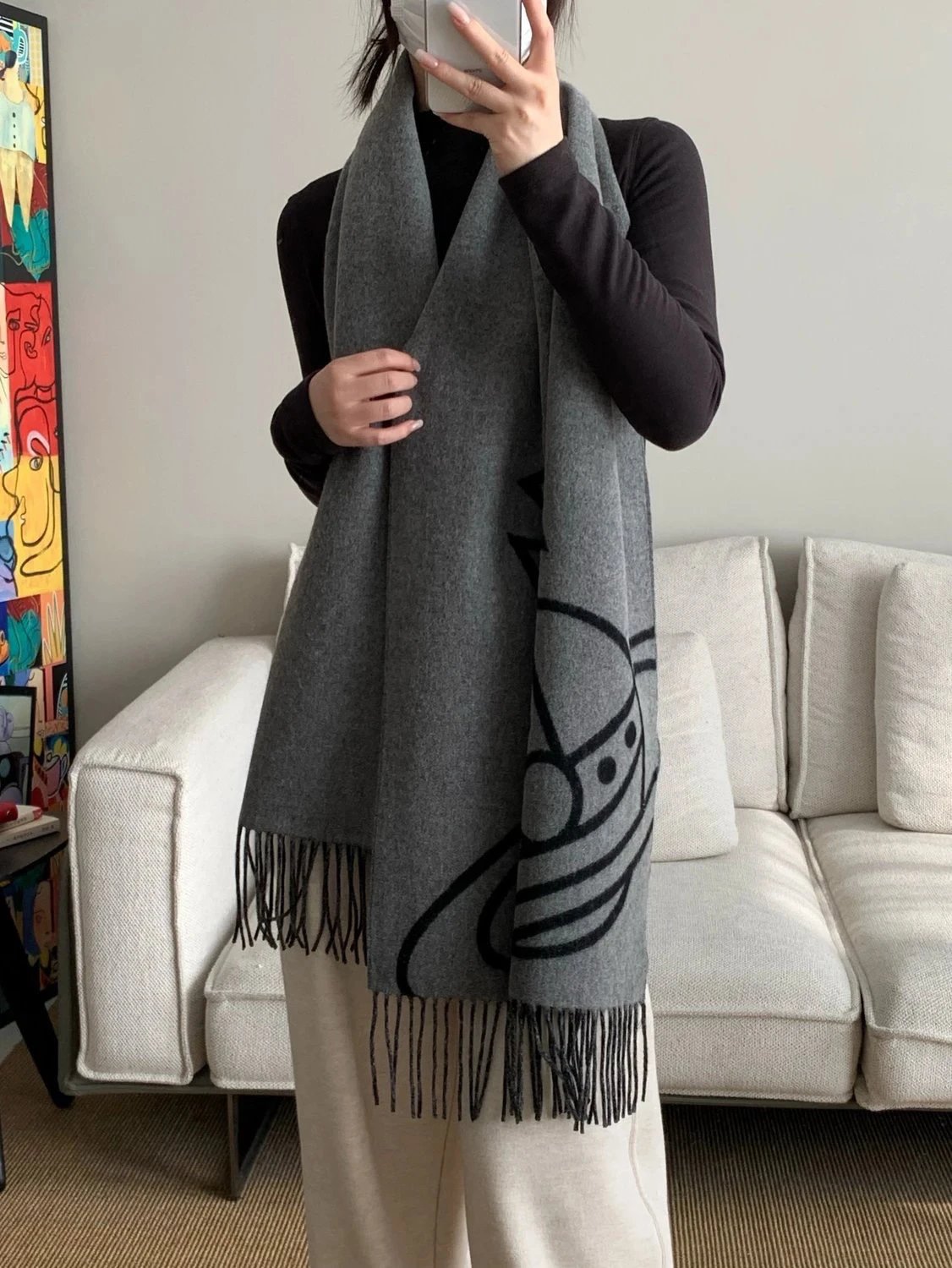 福利回馈 土星印花羊毛围巾 双面提花工艺! 冬日搭配氛围感神器