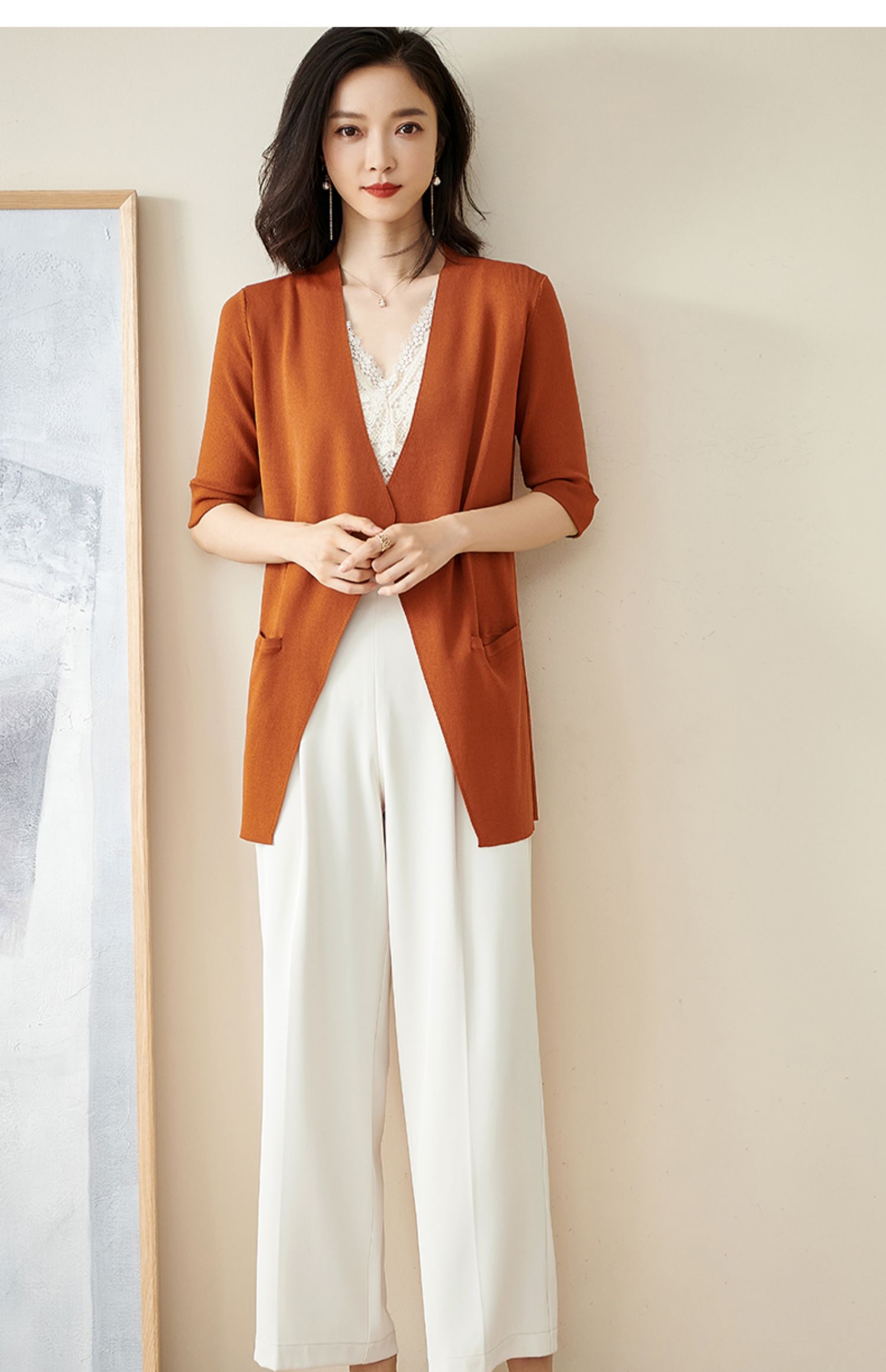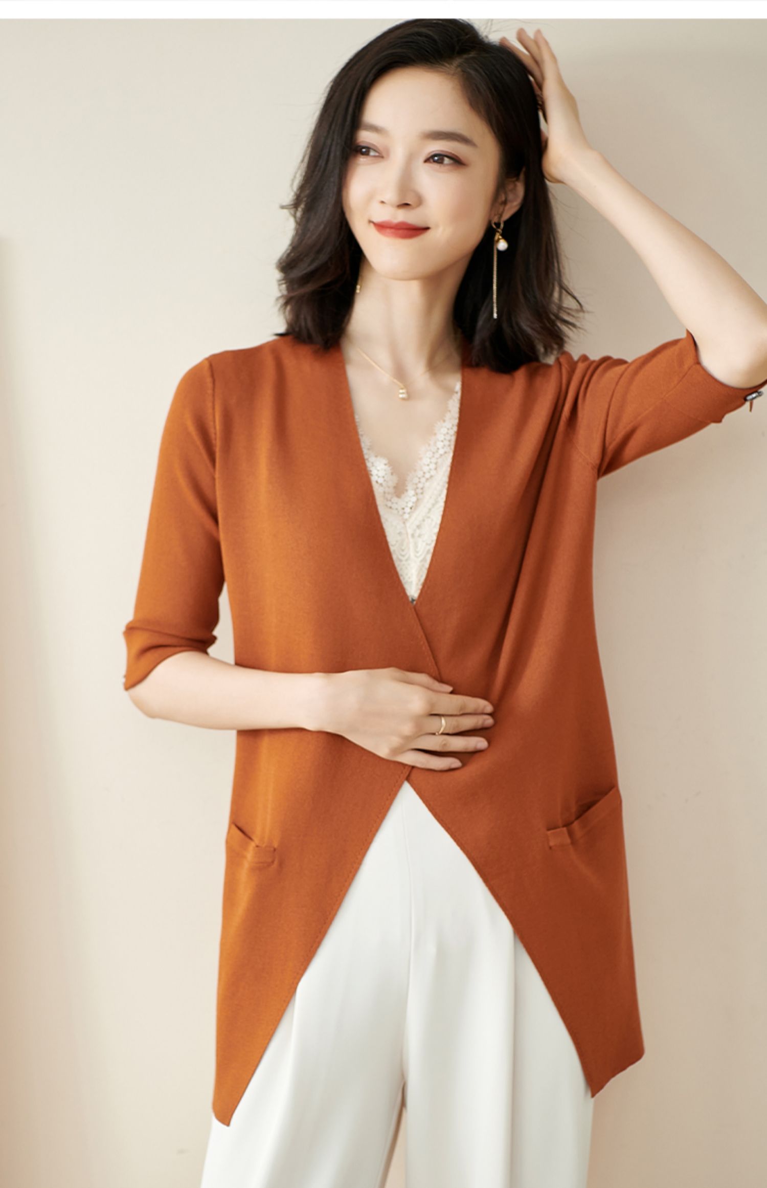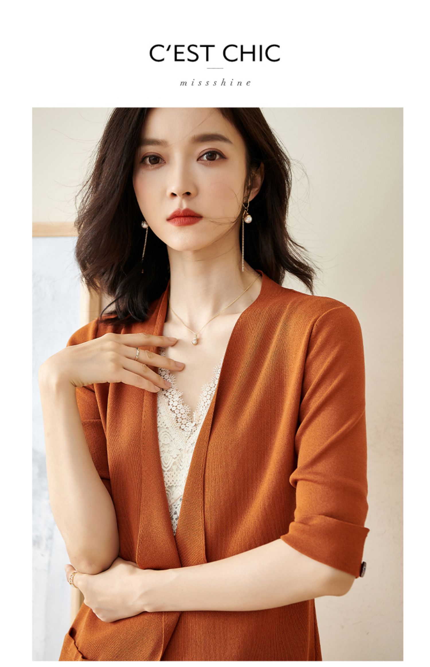 剩S/M/L 米思阳2025夏季新款知性优雅轻熟风针织开衫修身七分袖外套女1720