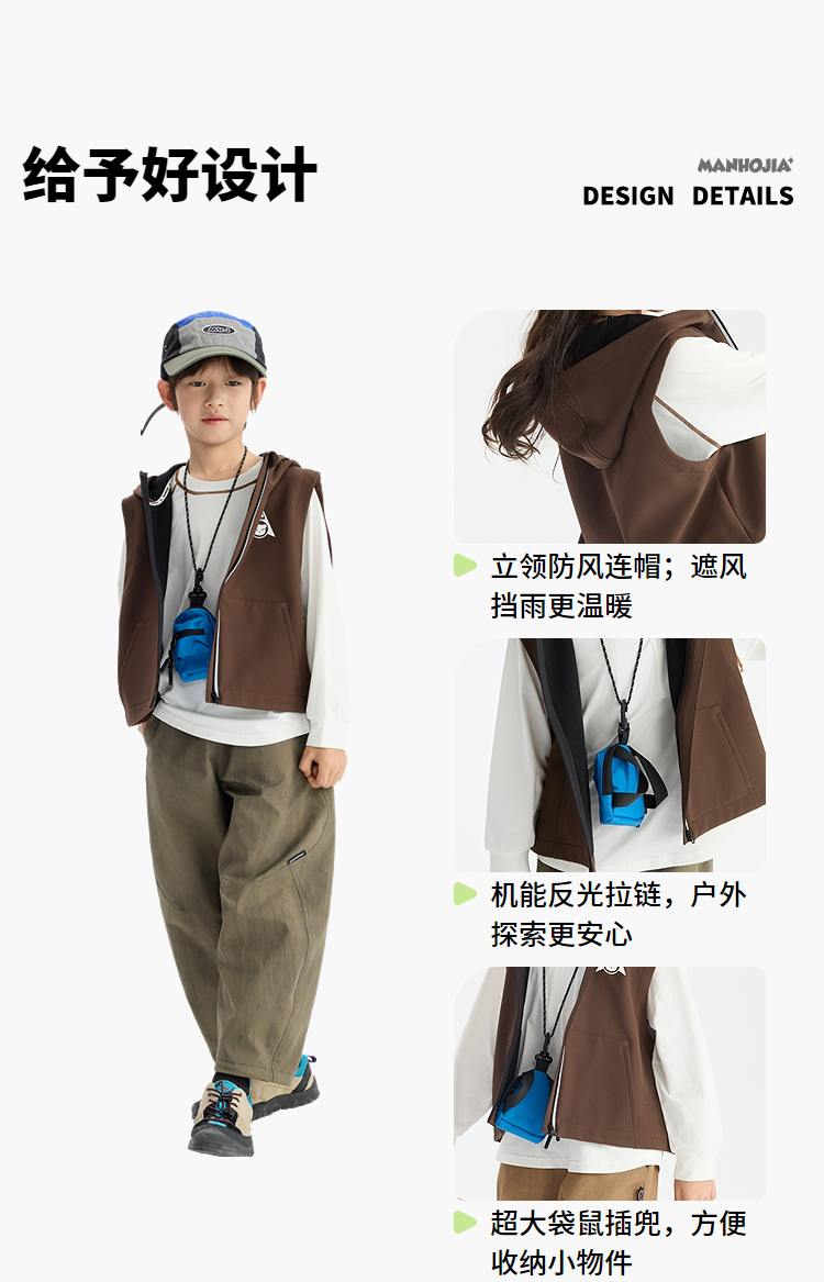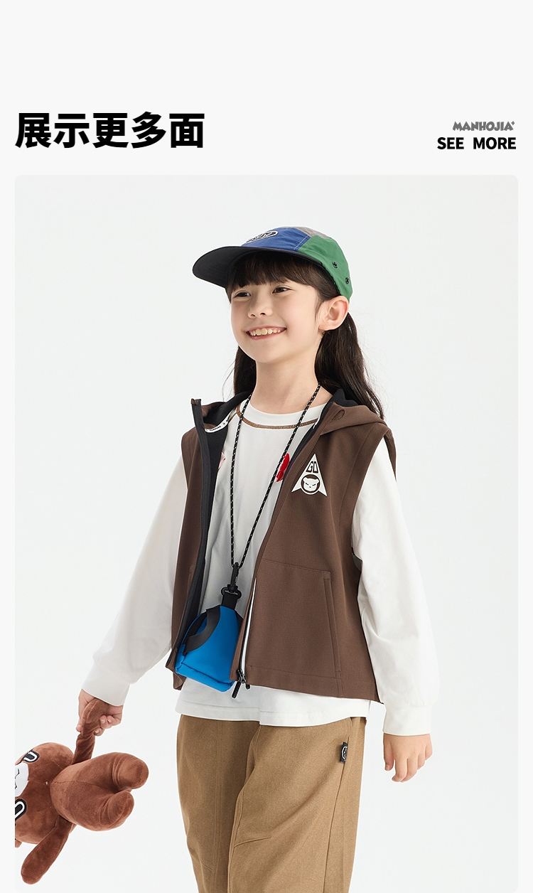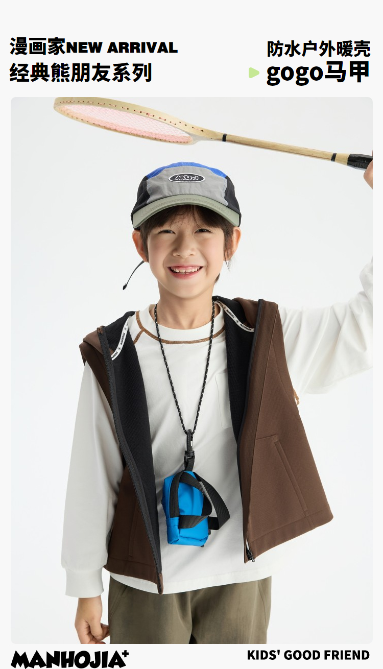 漫画家【gogo马甲】登山露营骑行防风防泼水保暖多功能儿童马甲