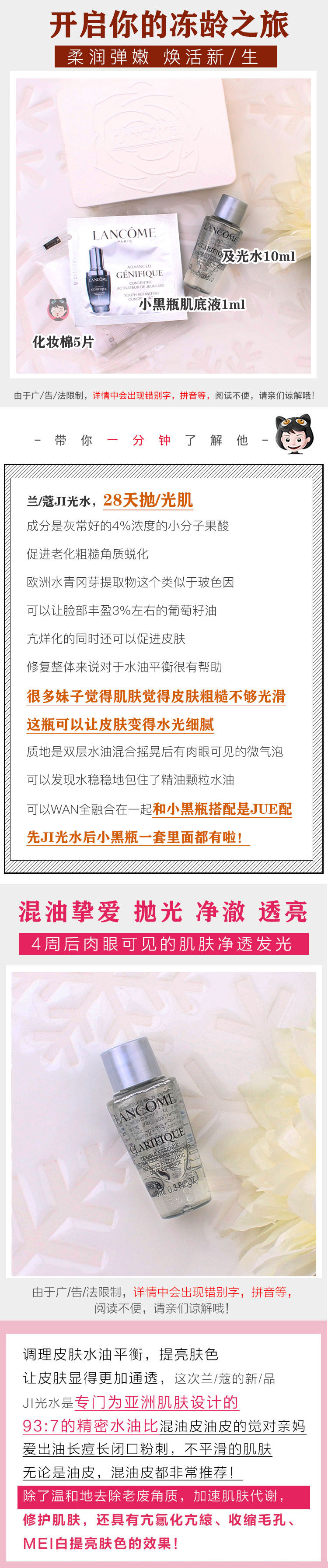 小样 兰蔻极光水10ml二代 小黑瓶精华1ml 体验装试用小美盒JPY带授权招加盟代理