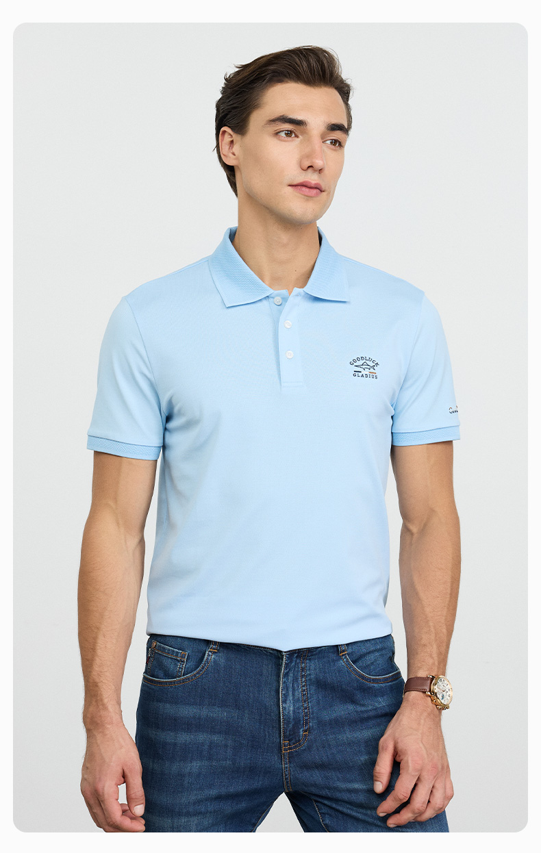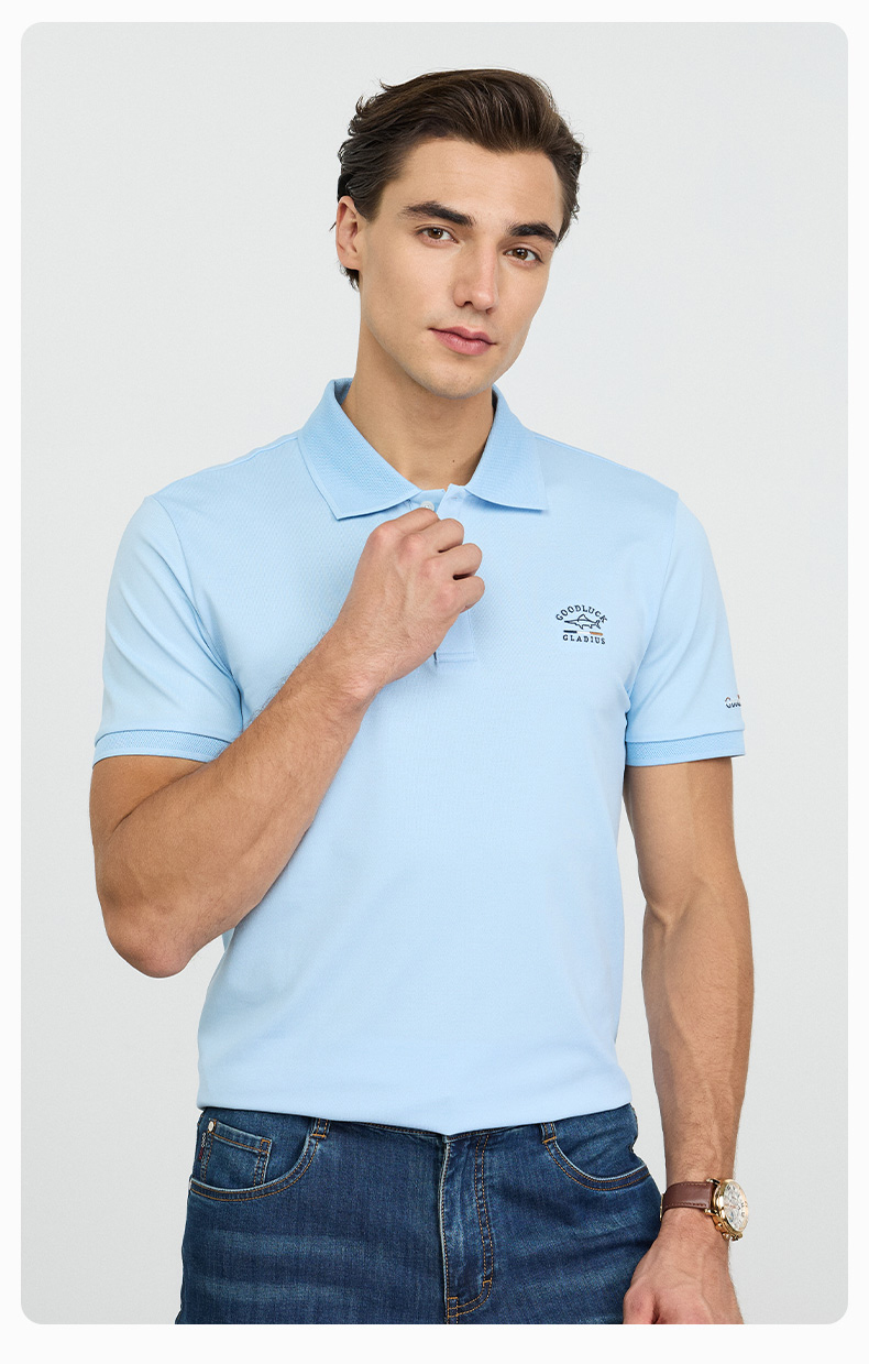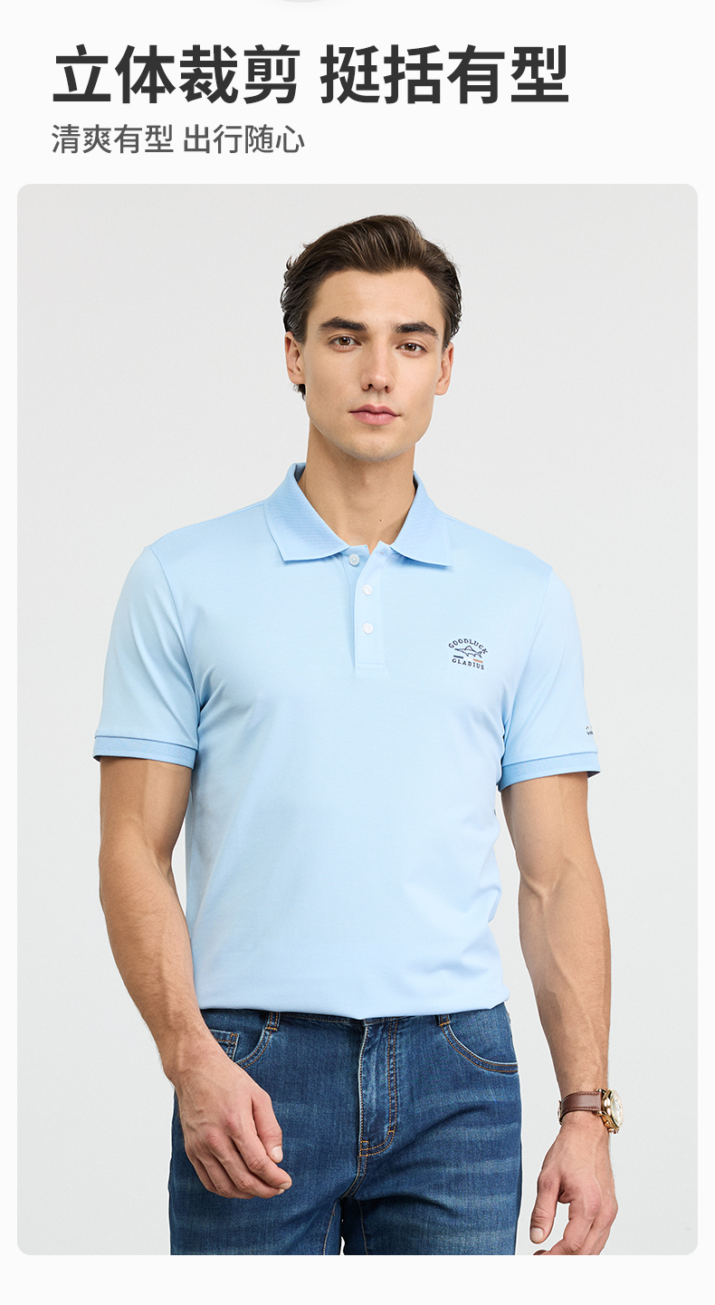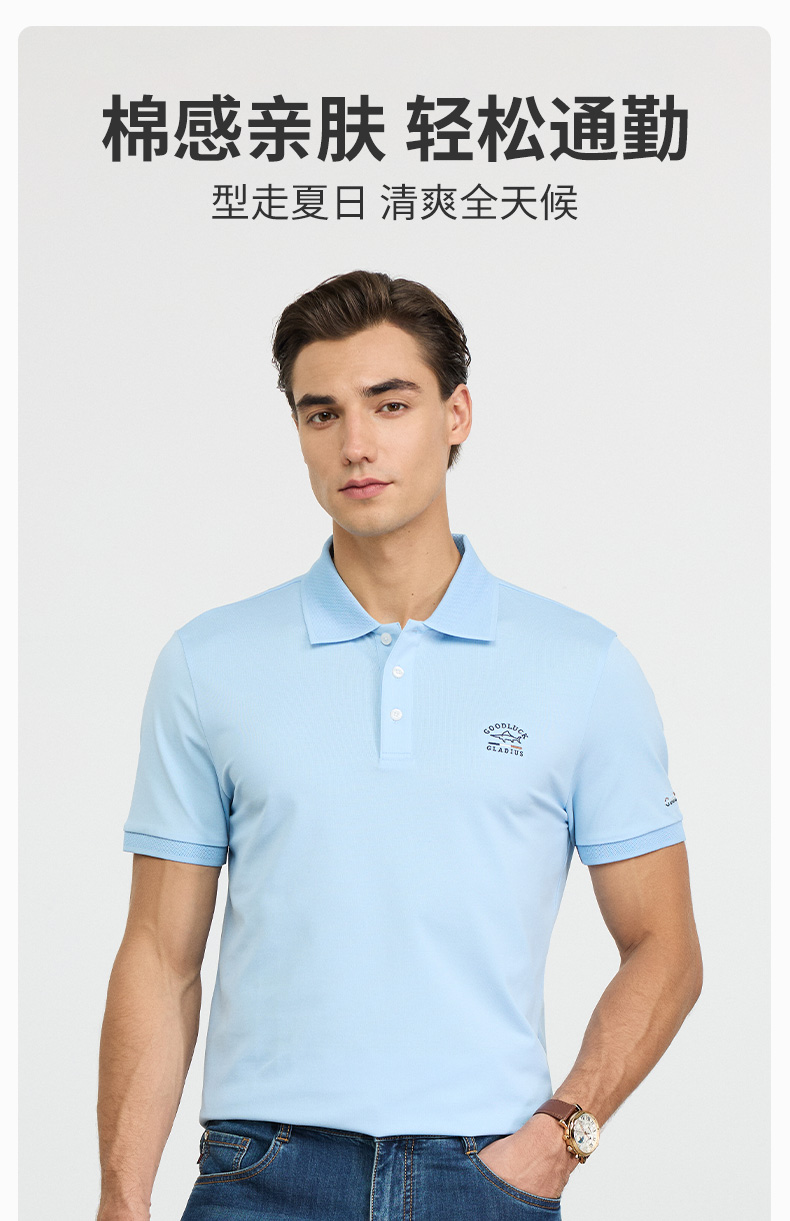 德鲨蓝色短袖POLO衫男青年2026夏新款休闲百搭上衣男棉质翻领T恤