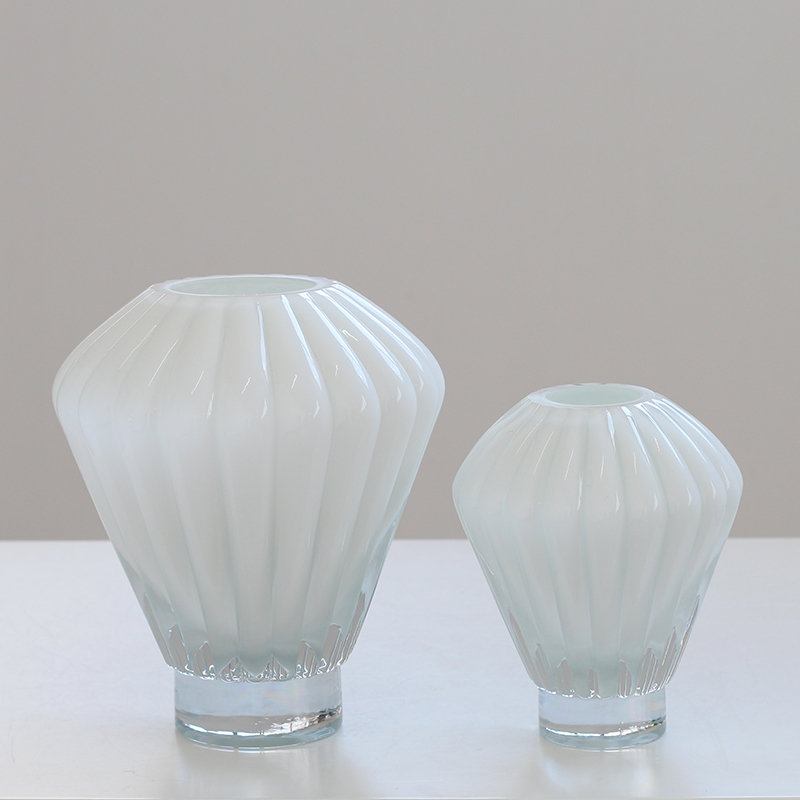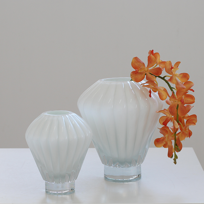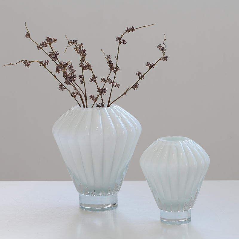 现代简约白瓷灯笼玻璃花瓶插花摆件家居样板房软装插花工艺设计