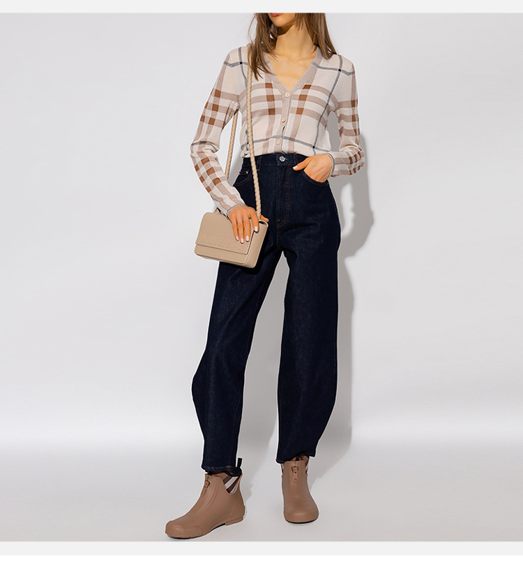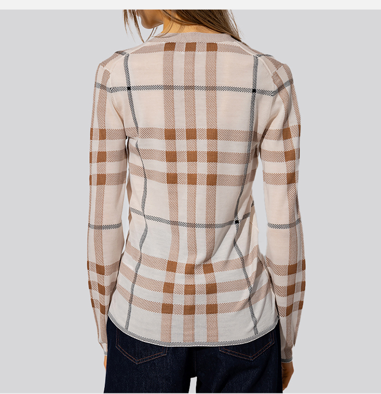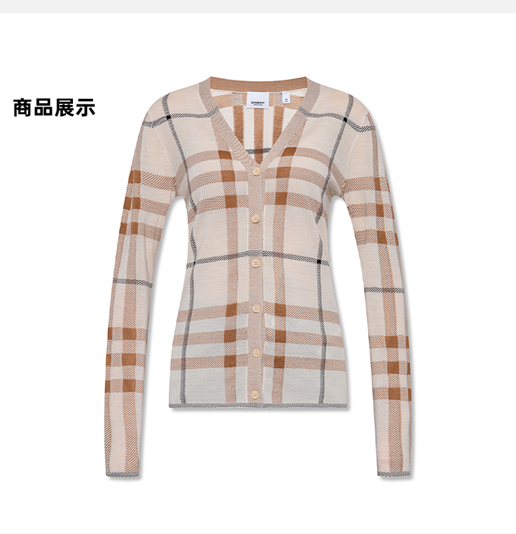 BURBERRY 巴宝莉 女士格纹嵌花羊毛真丝棉质长袖针织开衫 8052401 B2111