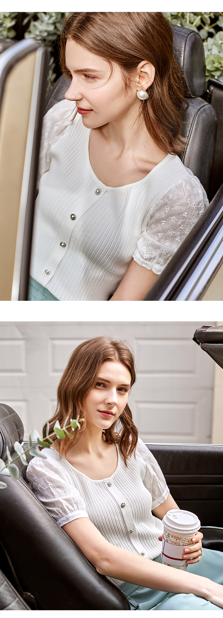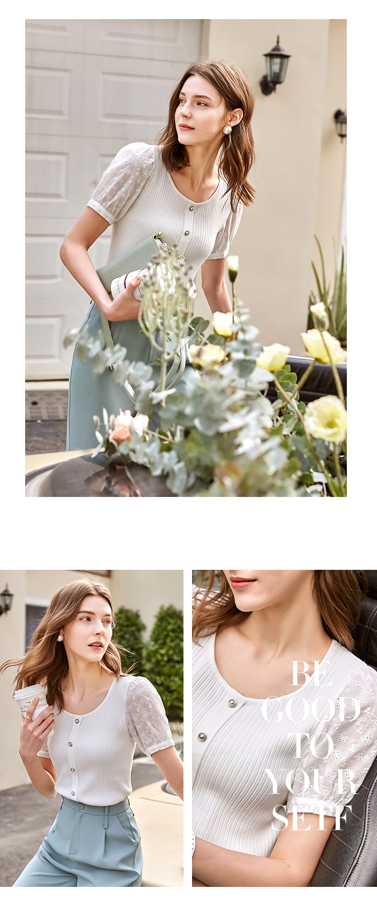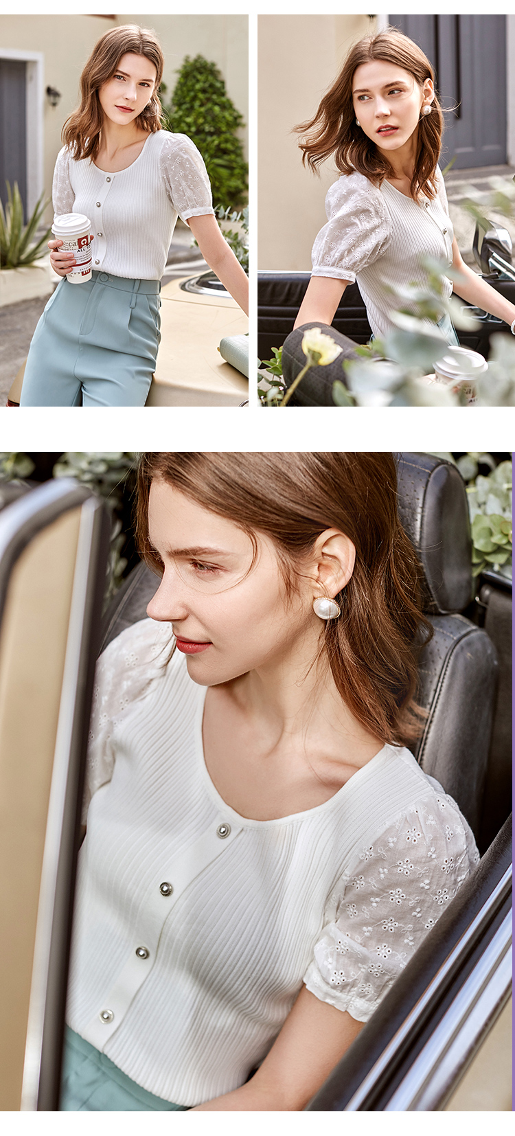 欧芮儿短袖毛针织衫女2021春款修身显瘦提花拼接年轻优雅时髦上衣