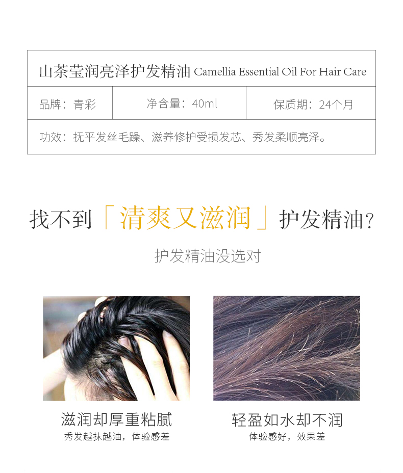 青彩山茶莹润亮泽护发精油 顺滑不毛躁改善干枯滋润轻爽 40ml/瓶