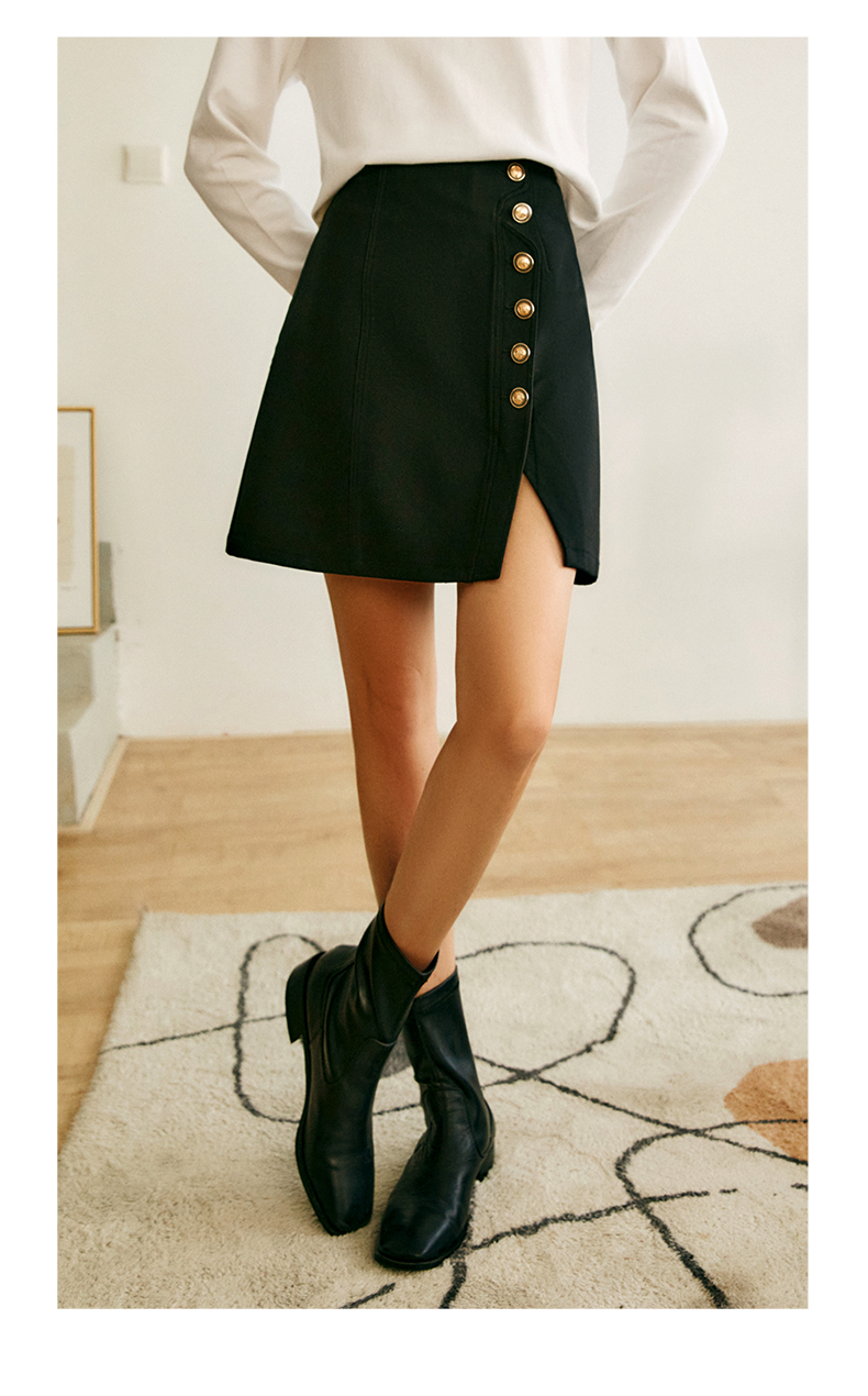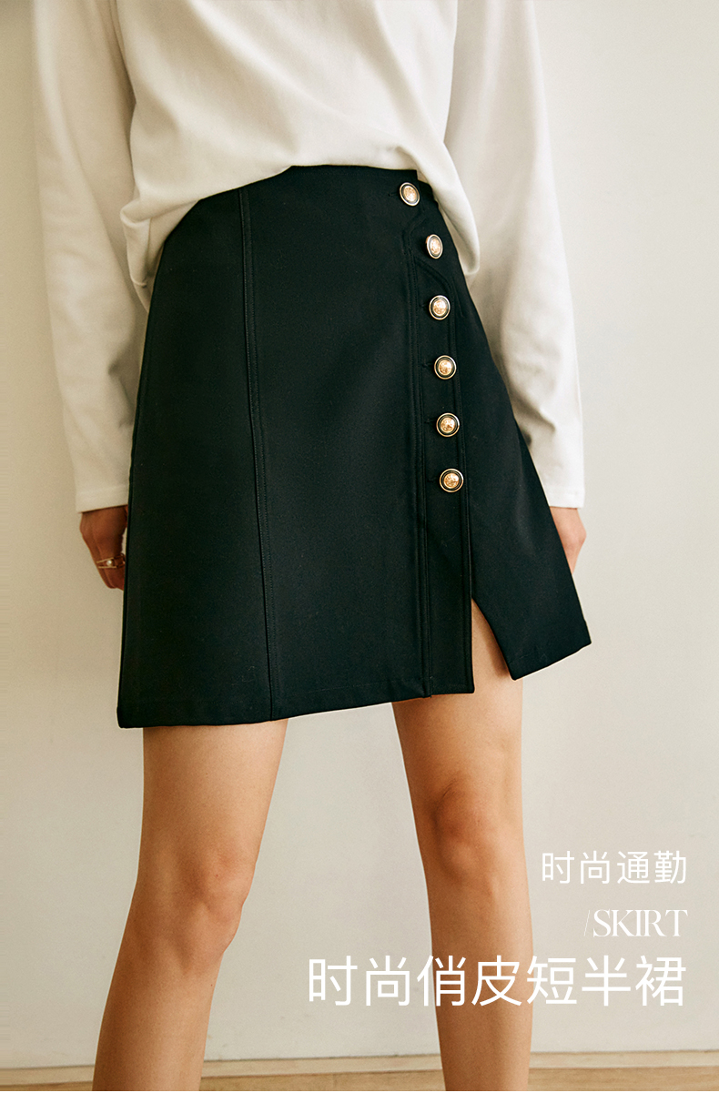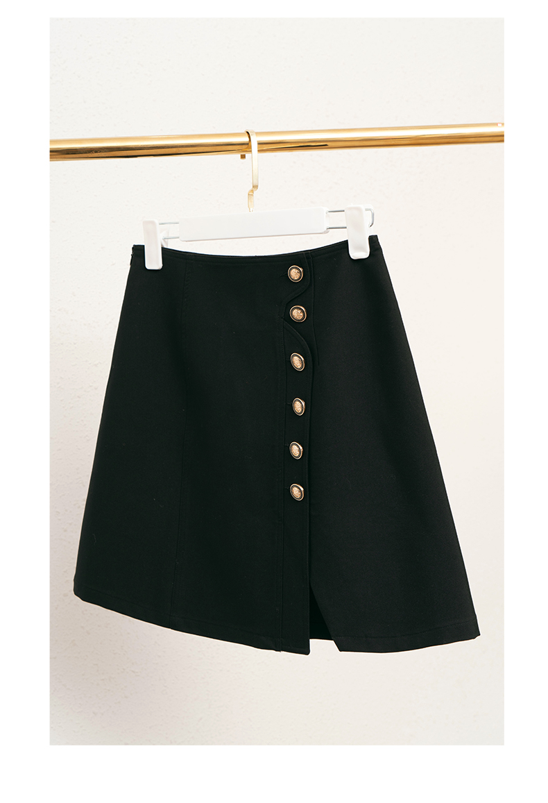 OLrain法式高级穿搭黑色半身裙女2022年夏季新款高腰不规则A字裙