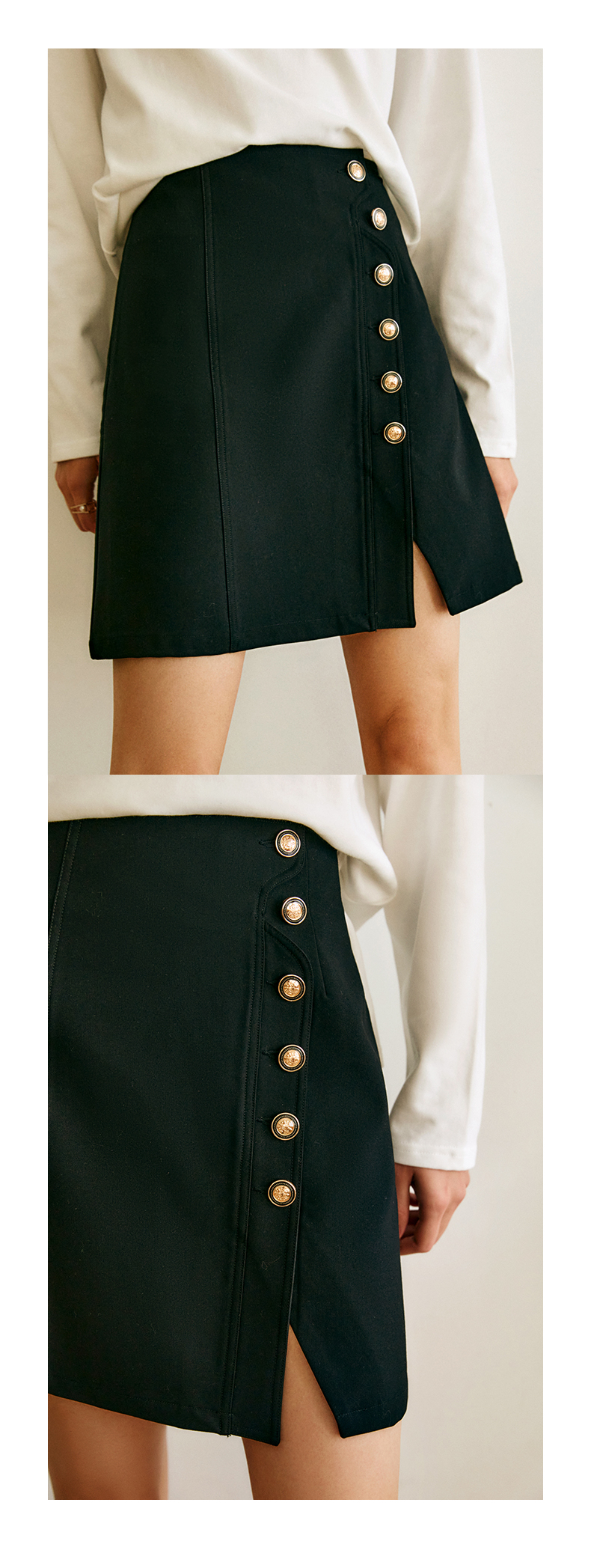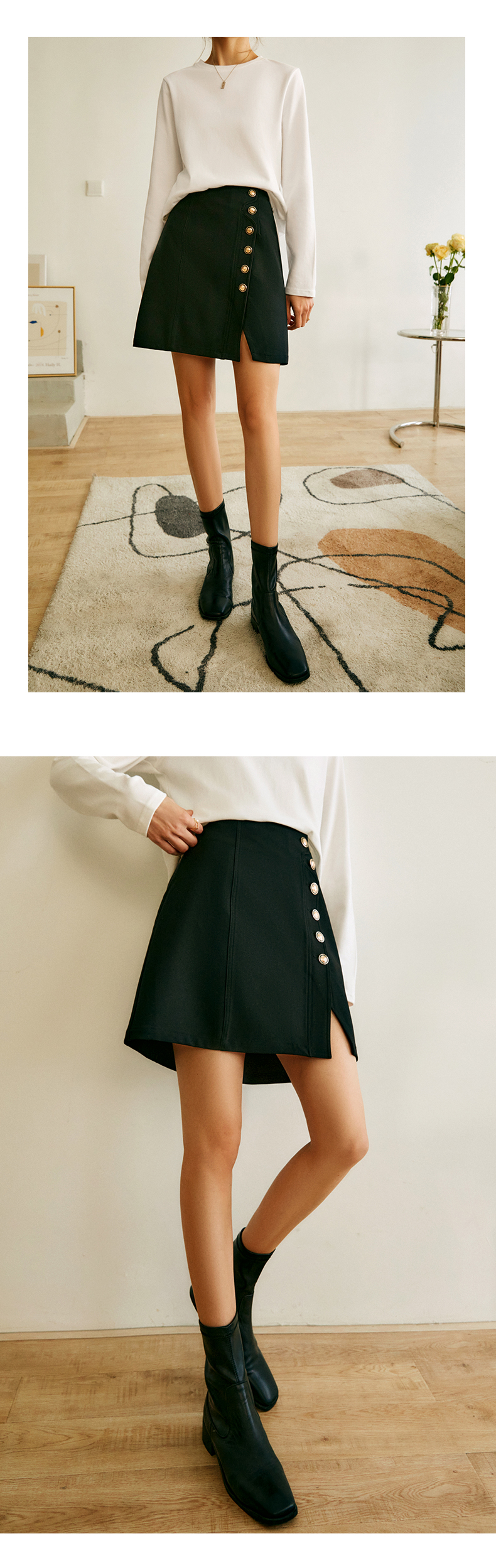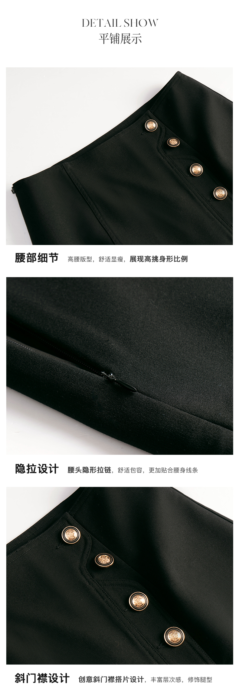 OLrain法式高级穿搭黑色半身裙女2022年夏季新款高腰不规则A字裙
