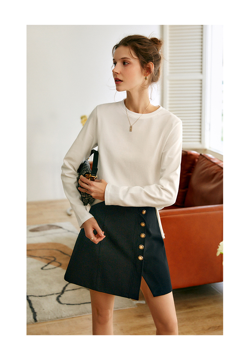 OLrain欧芮儿米白色套头连肩袖设计感上衣女夏季2025新款圆领T恤
