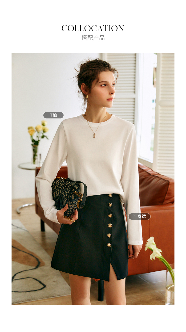 OLrain欧芮儿灰色设计感不对衬T恤女春季2025年新款时尚休闲上衣
