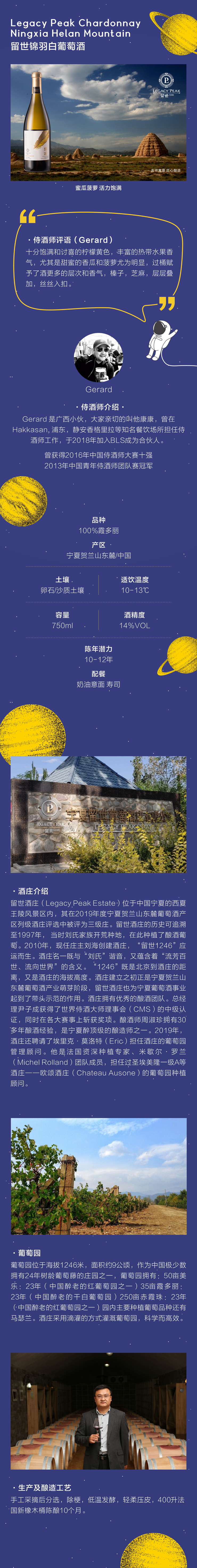 留世锦羽霞多丽白葡萄酒Legacy Peak Chardonnay Ningxia Helan Mountain 2017