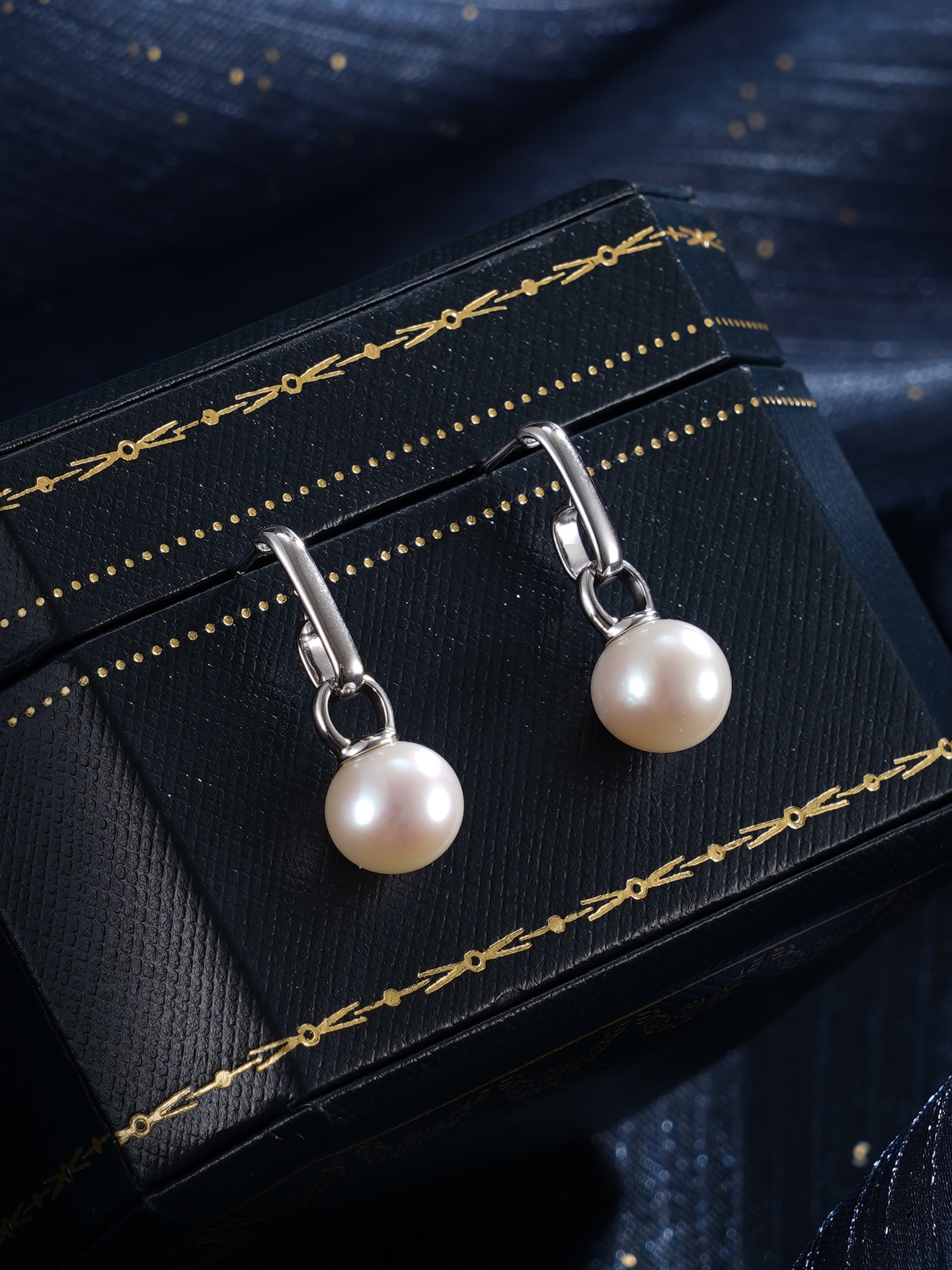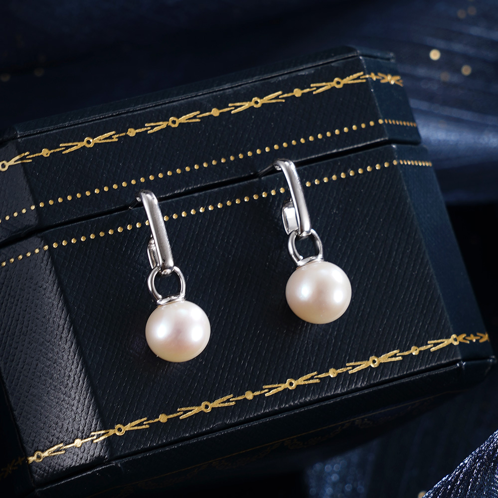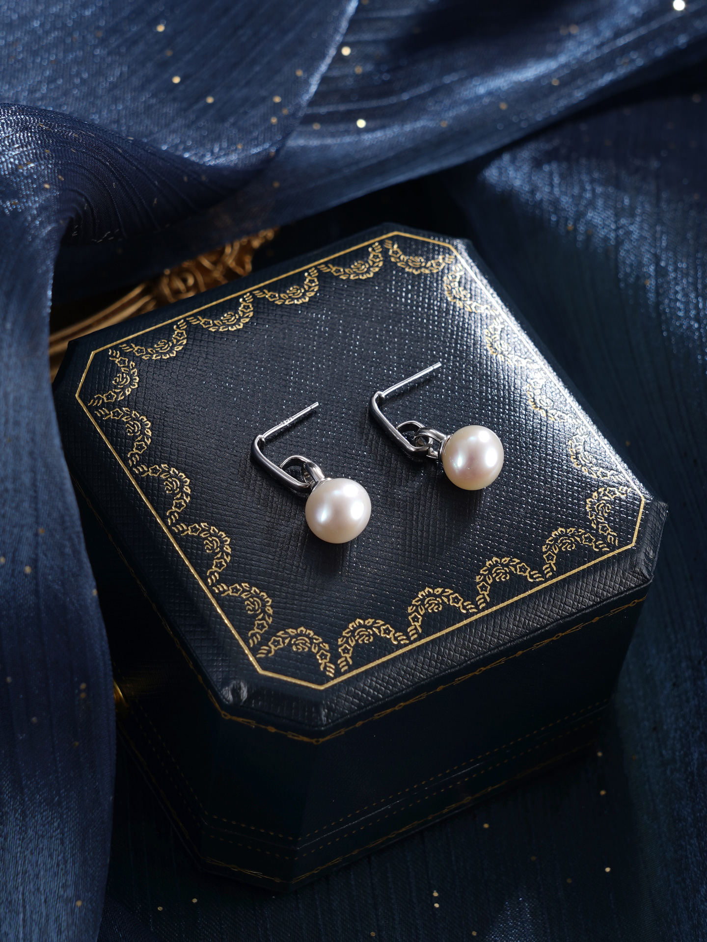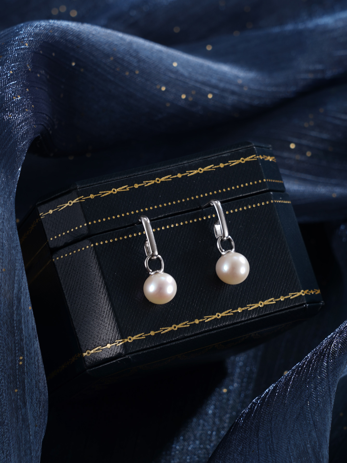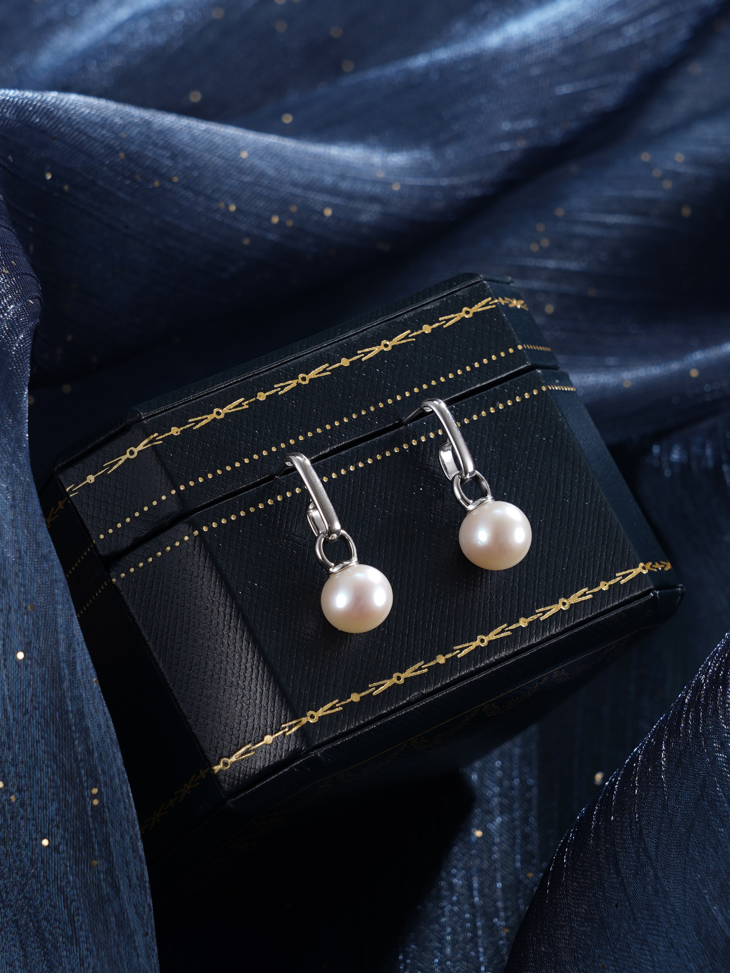 子佩集【微光凝露】银S925珍珠惜王妃耳钉【SPE0370001】8-9mm珠吊球2601