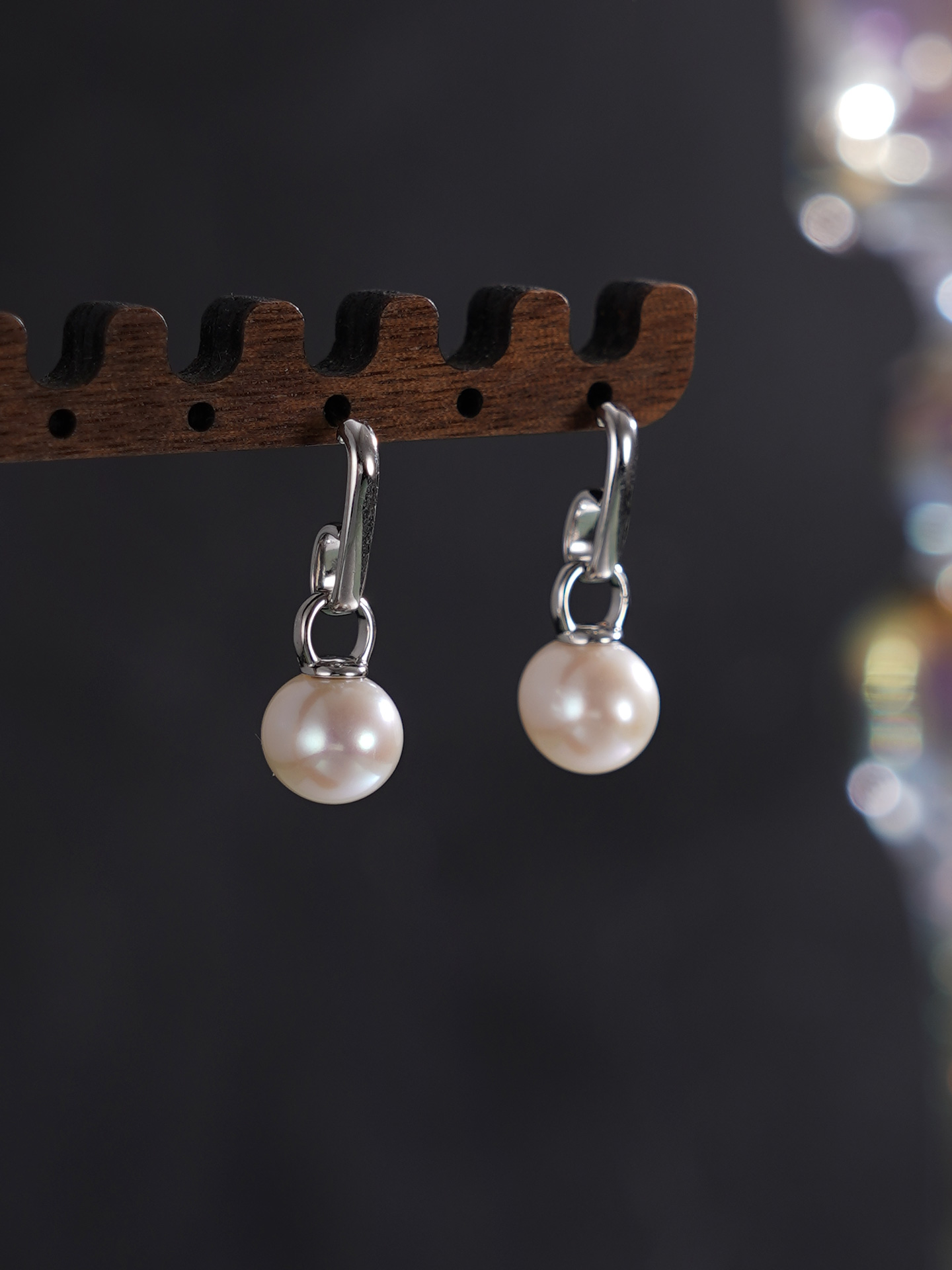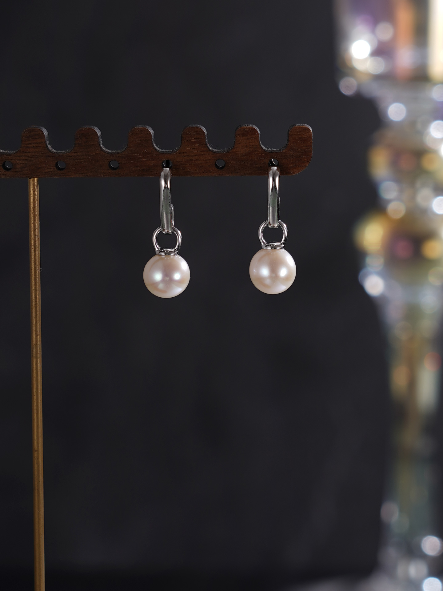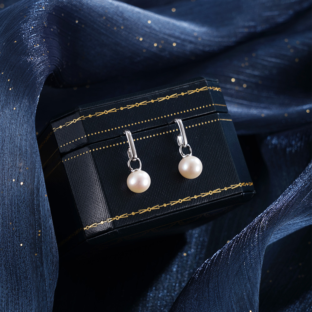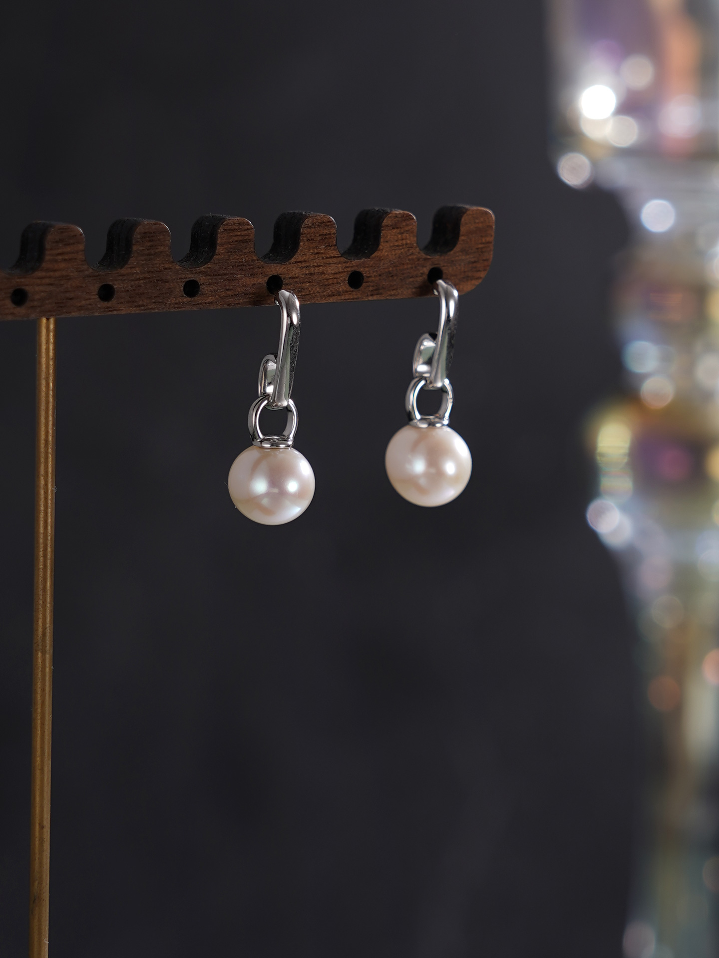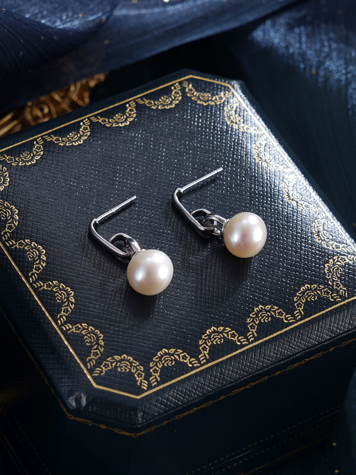 子佩集【微光凝露】银S925珍珠惜王妃耳钉【SPE0370001】8-9mm珠吊球2601