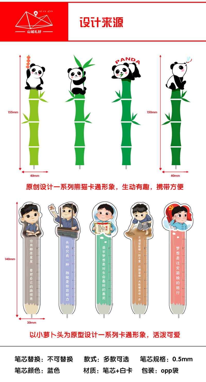 重庆熊猫卡通书签笔/重庆原创伴手礼/旅游纪念品