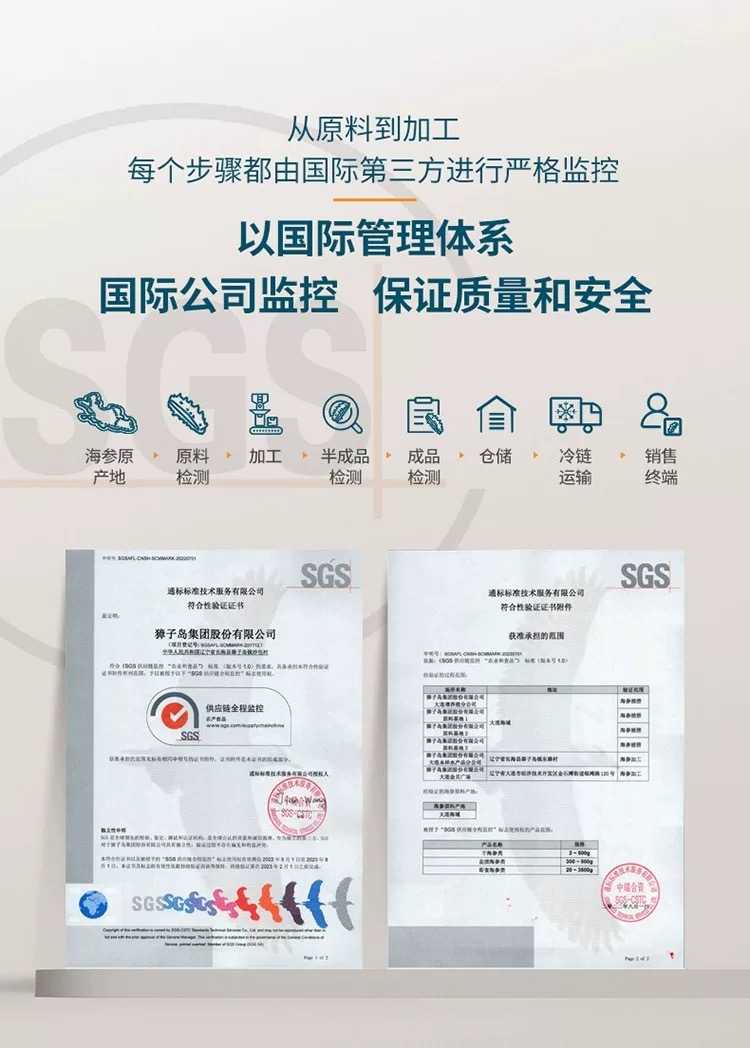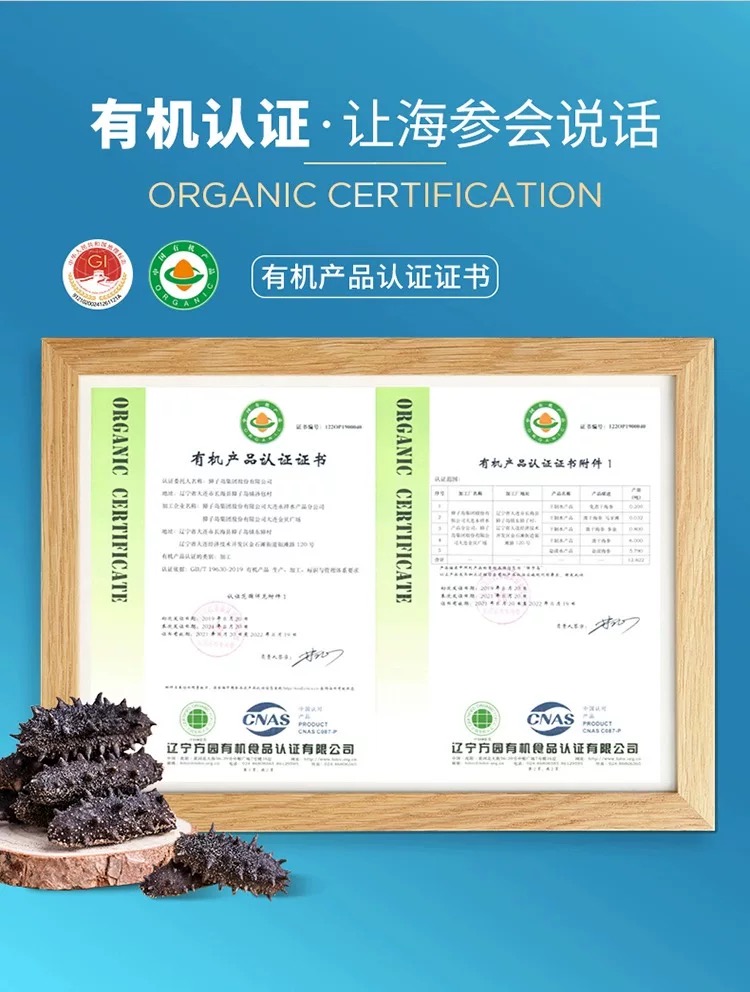 獐子岛大连底播有机海参干货辽刺参淡干海参御享200g