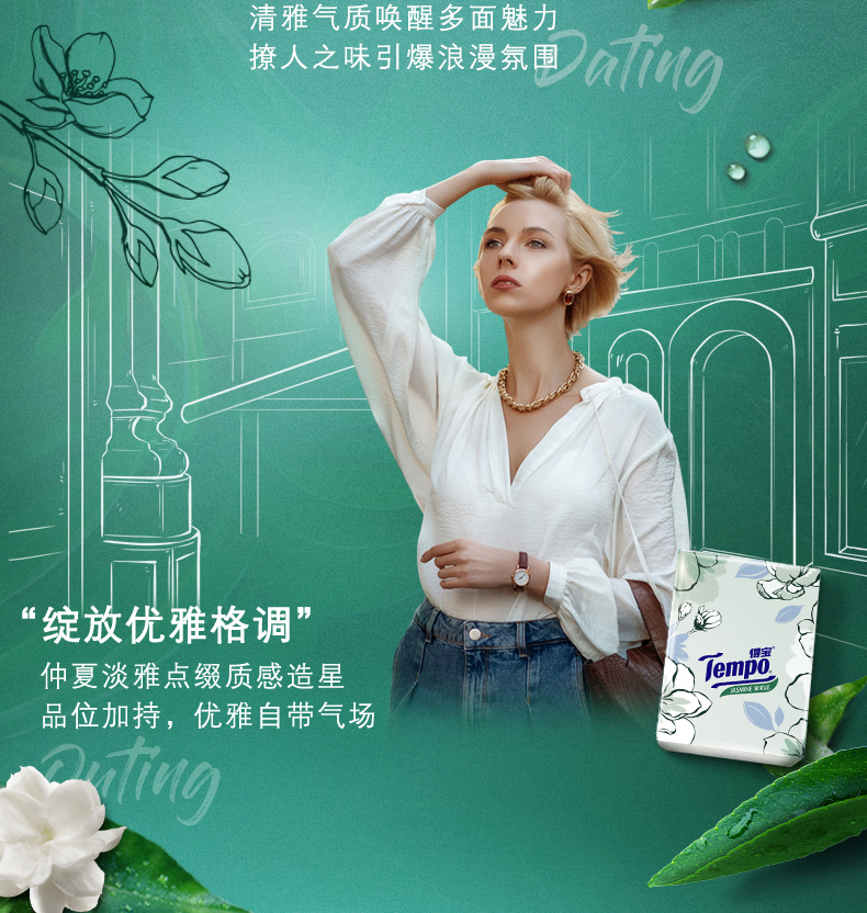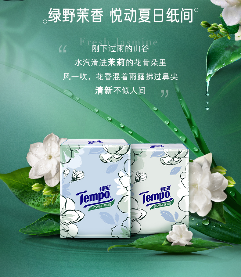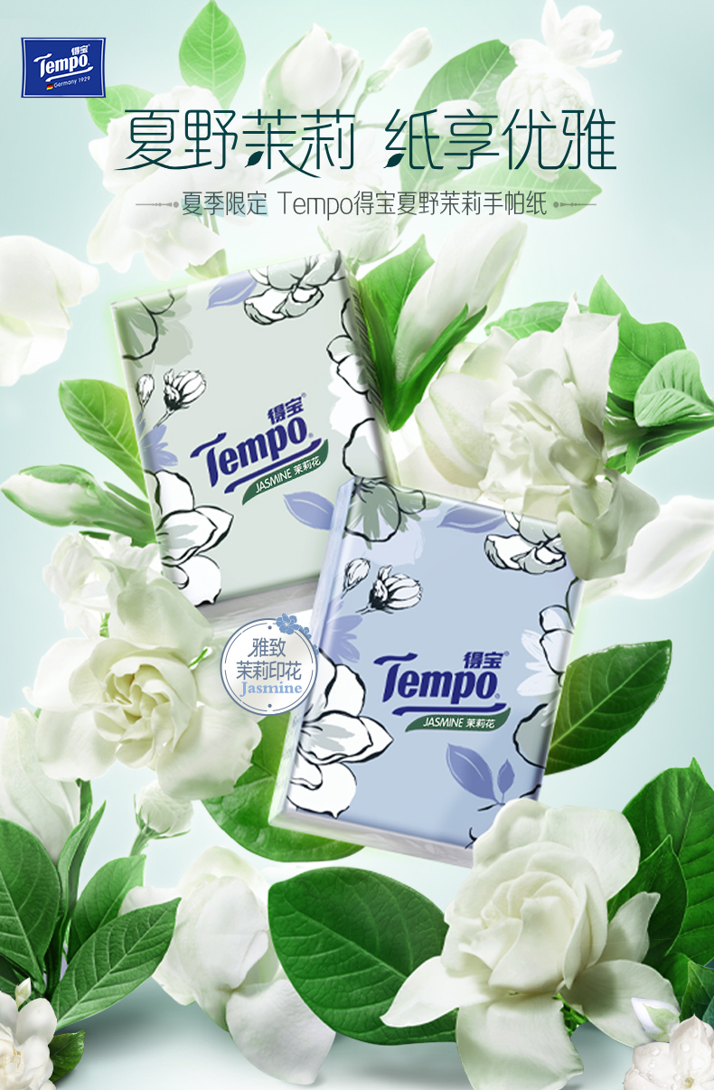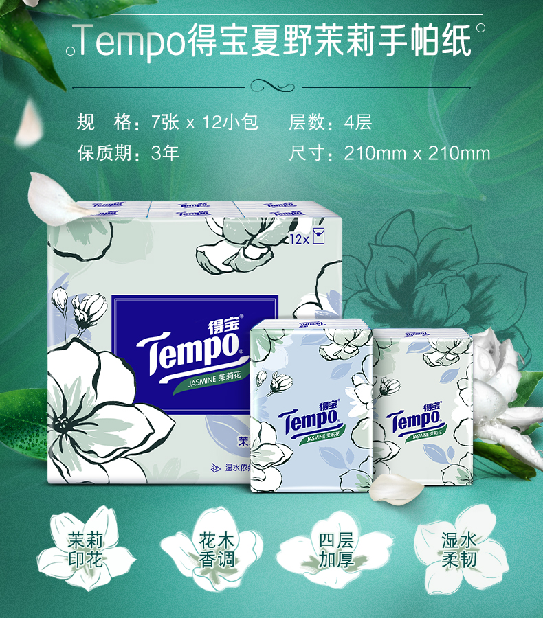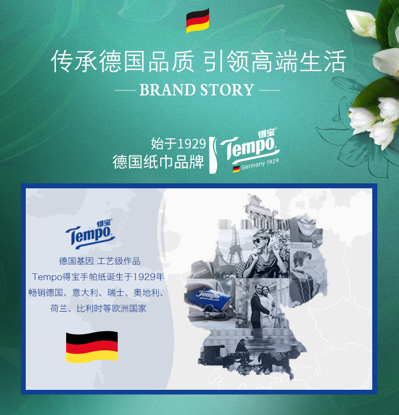 Tempo源自德国1929 茉莉花香 面巾纸 手帕纸 餐巾纸 36包 德宝 得宝