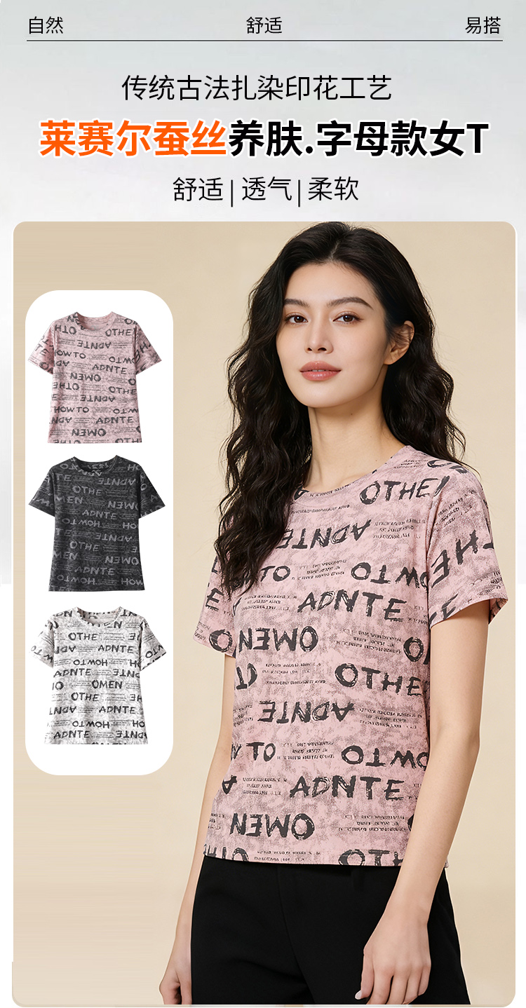 【传统古法扎染工艺】莱赛尔蚕丝T恤 10A抑菌 莱赛尔+桑蚕丝面料柔软亲肤透气,圆领正肩版型显瘦 ,弹力面料不变形不起球,轻松穿搭