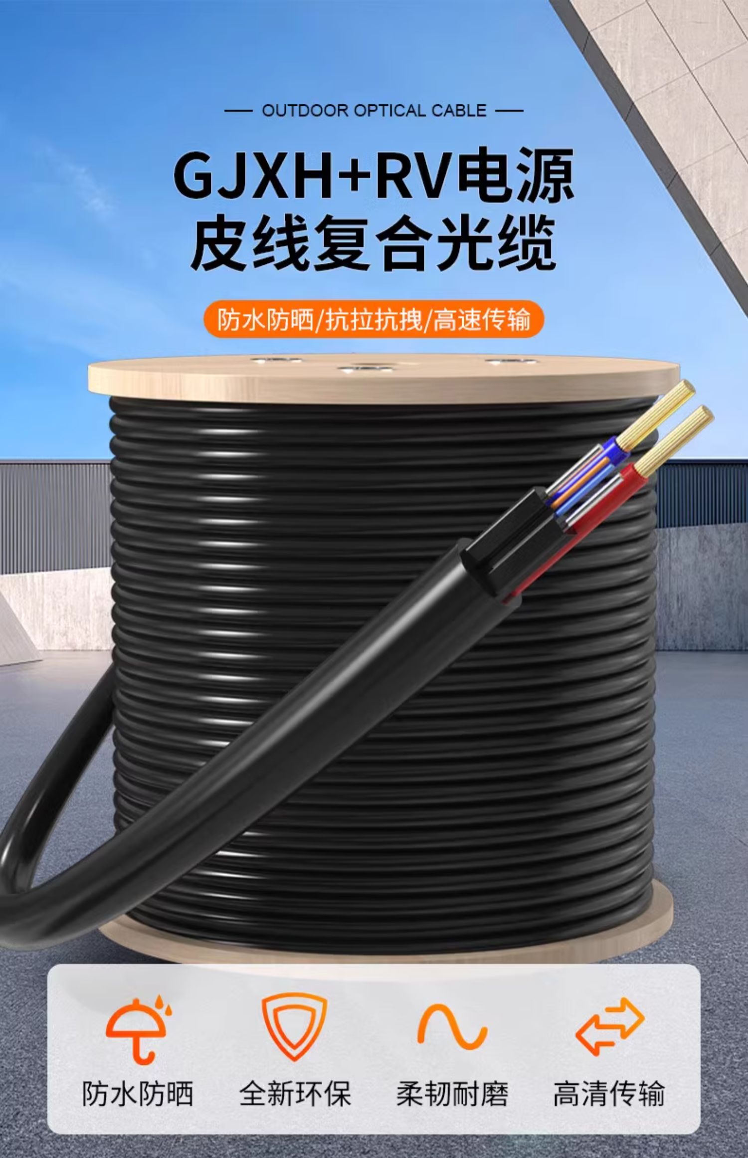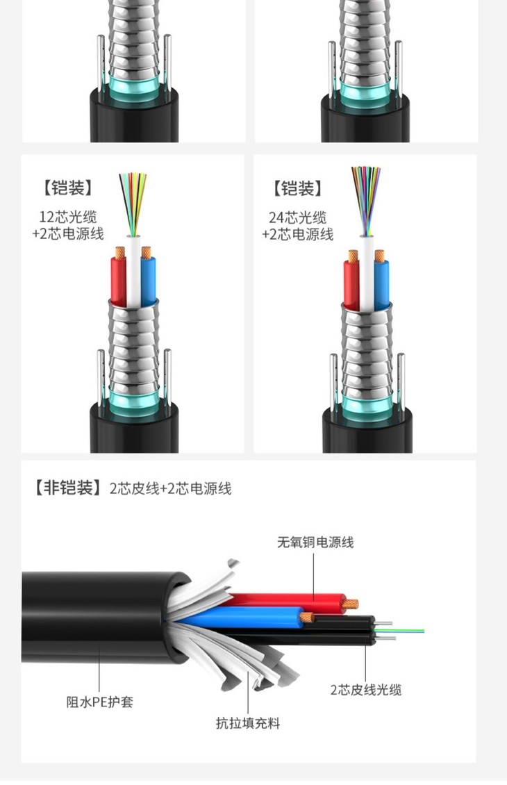 商品名称:光电复合缆光钎一体线光缆带电源线综合线室外光缆线监控2芯4芯8芯12芯24芯纯铜光钎光缆铠装户外专业用架空地埋