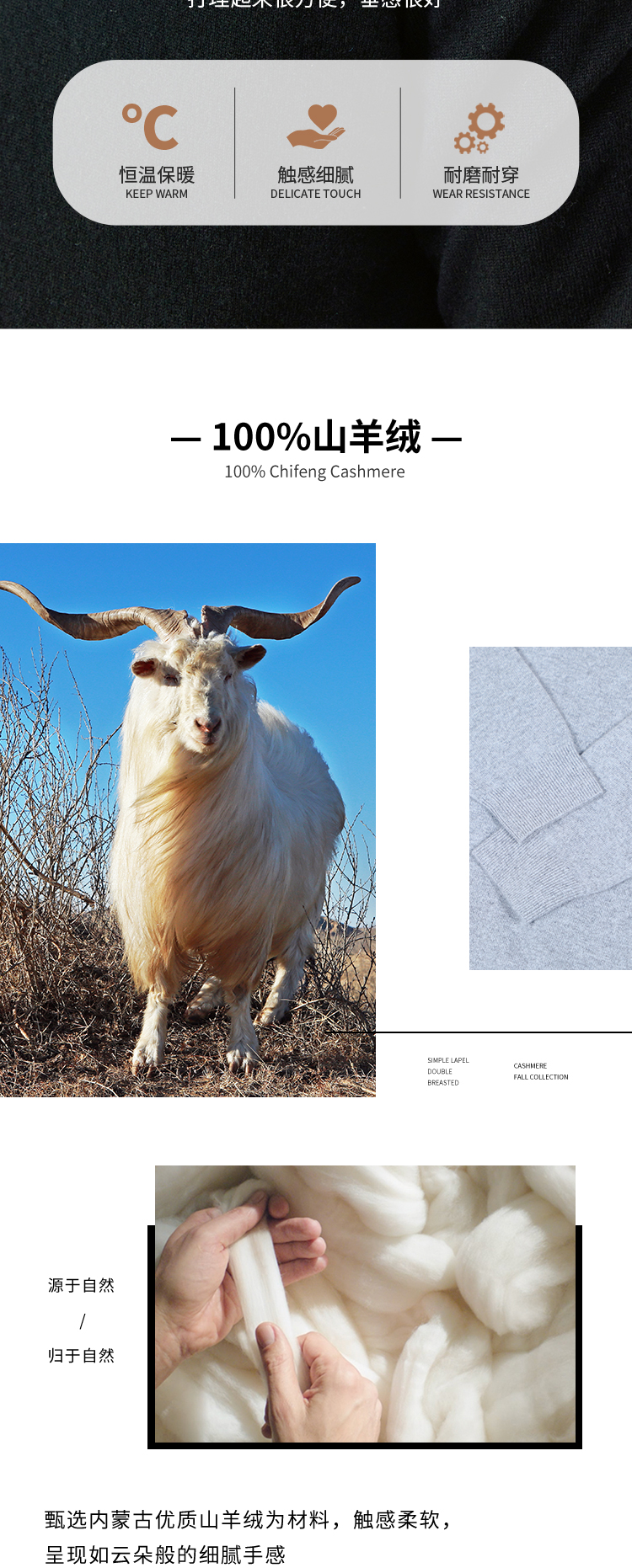 东黎羊绒是赤峰东荣集团自主品牌,自有牧场/羊绒制品全产业链优势,实现了羊绒从“牧场”到“商场”的华丽转变。