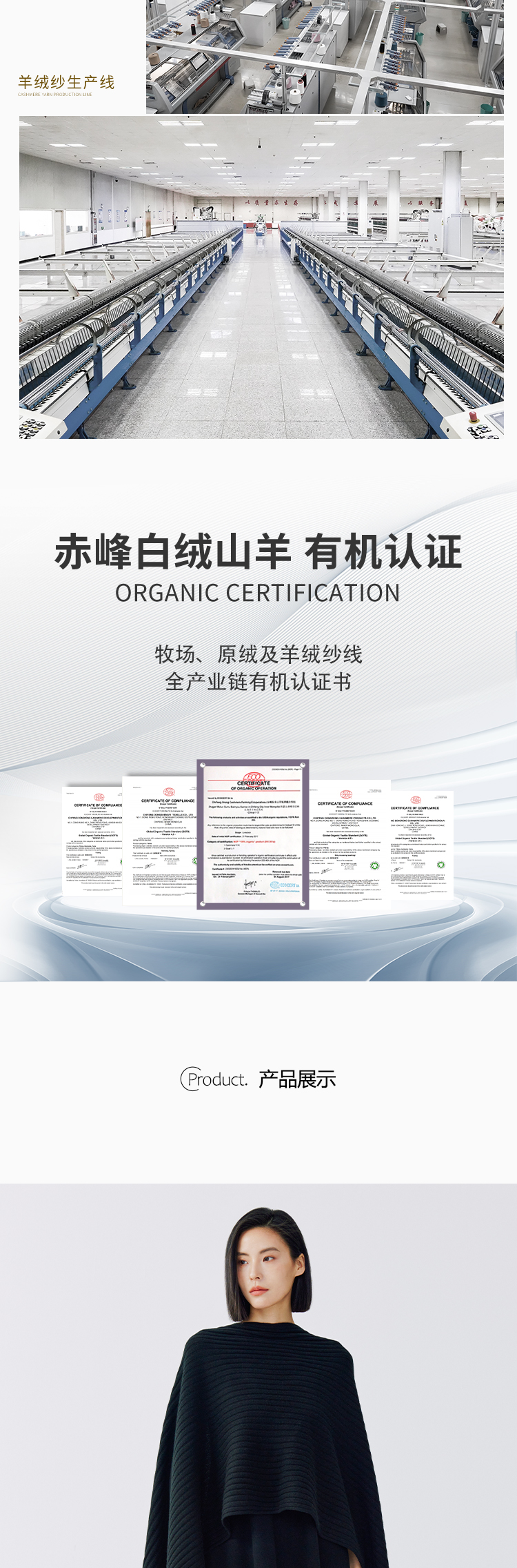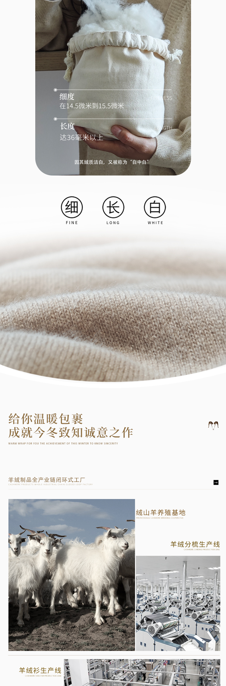 东黎羊绒是赤峰东荣集团自主品牌,自有牧场/羊绒制品全产业链优势,实现了羊绒从“牧场”到“商场”的华丽转变。