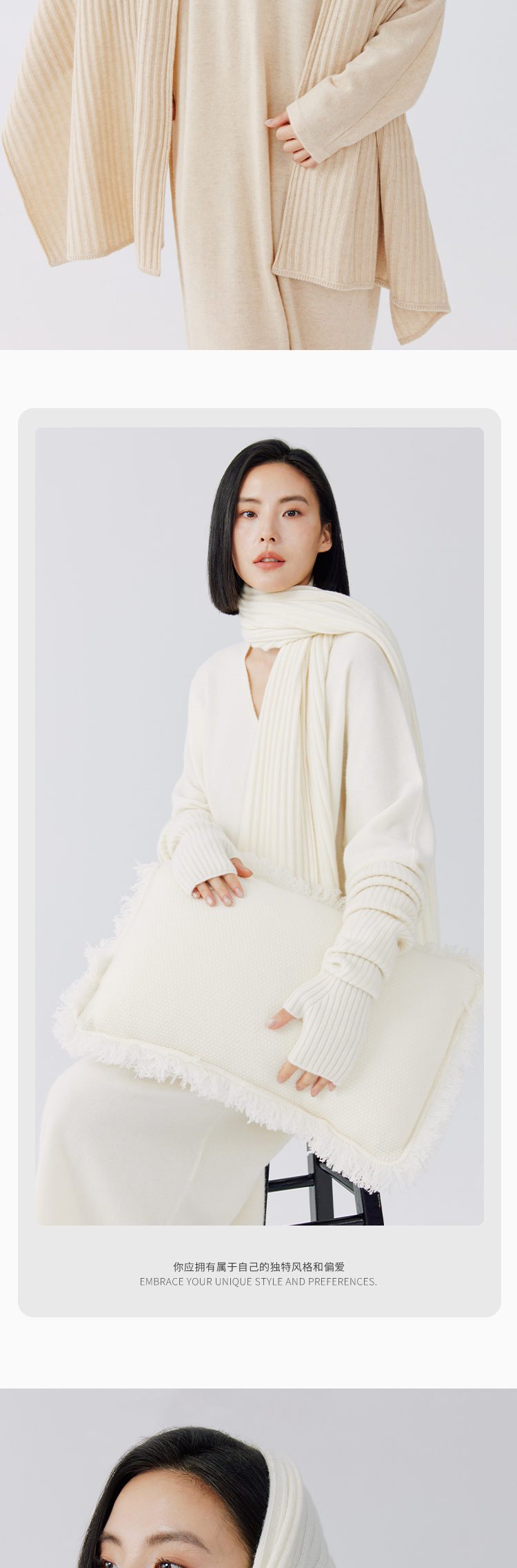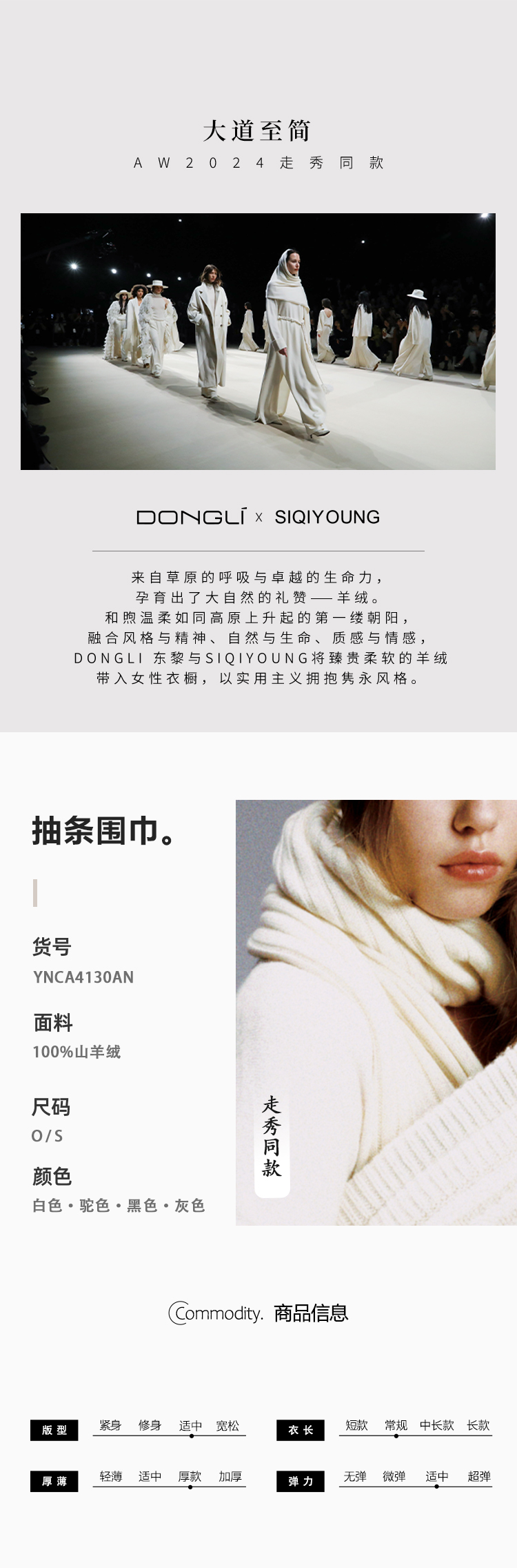 东黎 • 秀场同款 山羊绒女士冬季保暖百搭披肩围巾 4130