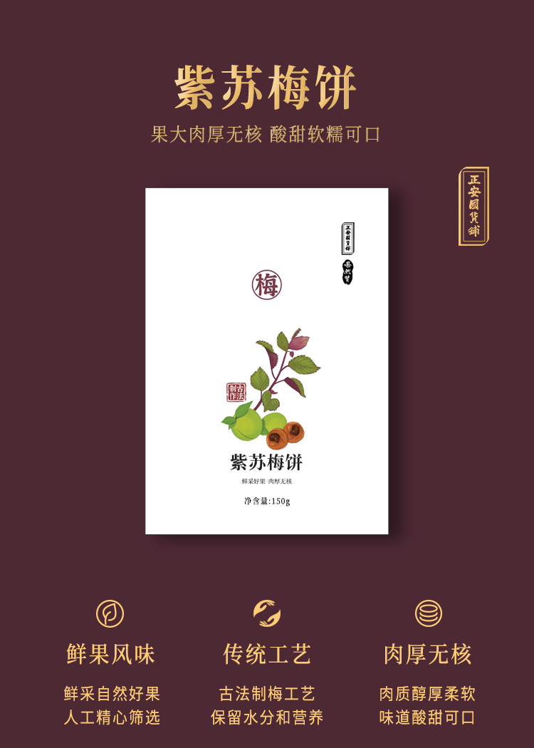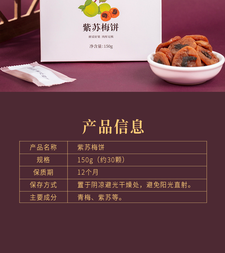 正安 紫苏梅饼 酸甜开胃 大人小孩都爱吃的健康零食 传统工艺果大肉厚无核酸甜软糯可口零食150g(有效期:26年1月)