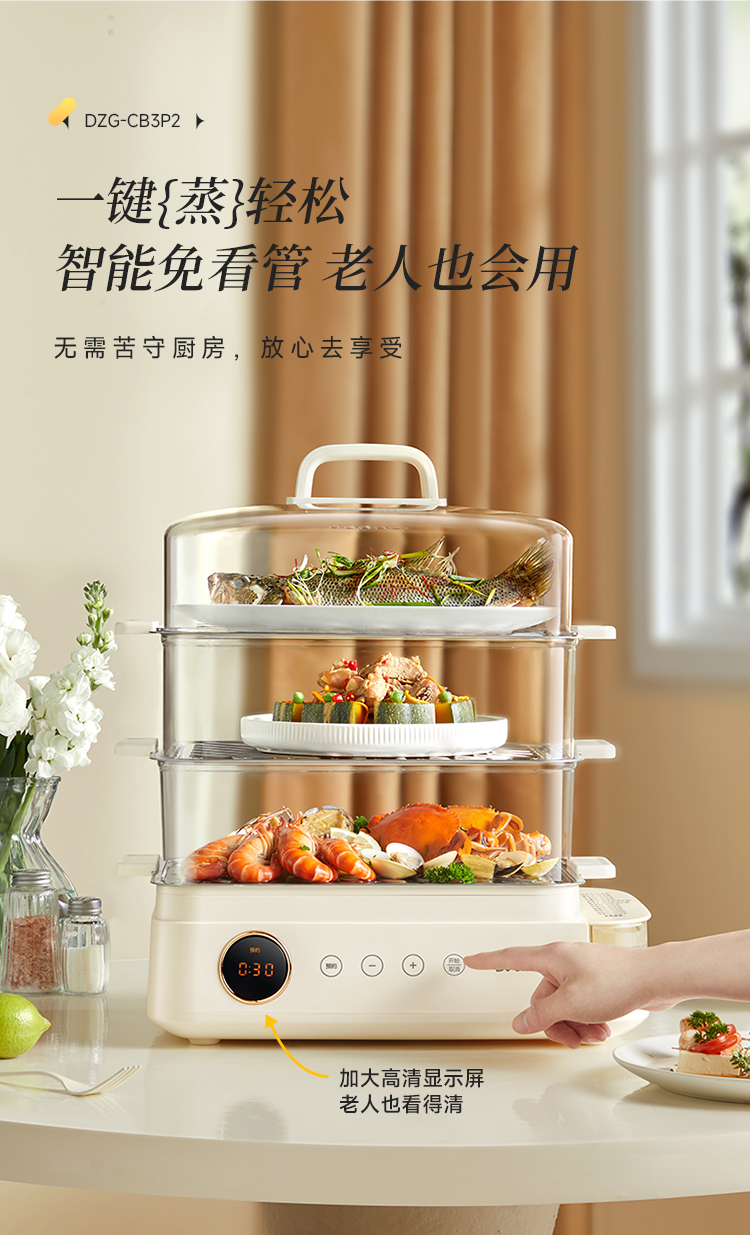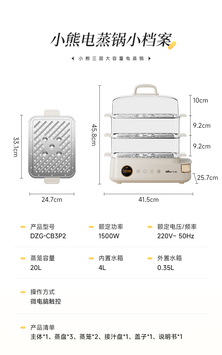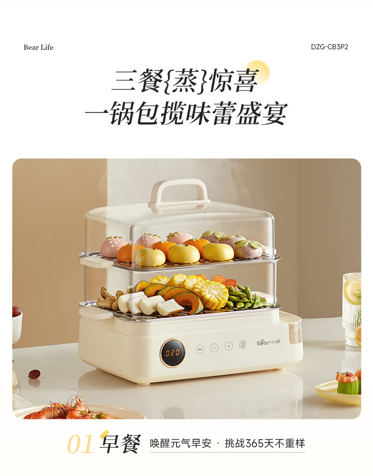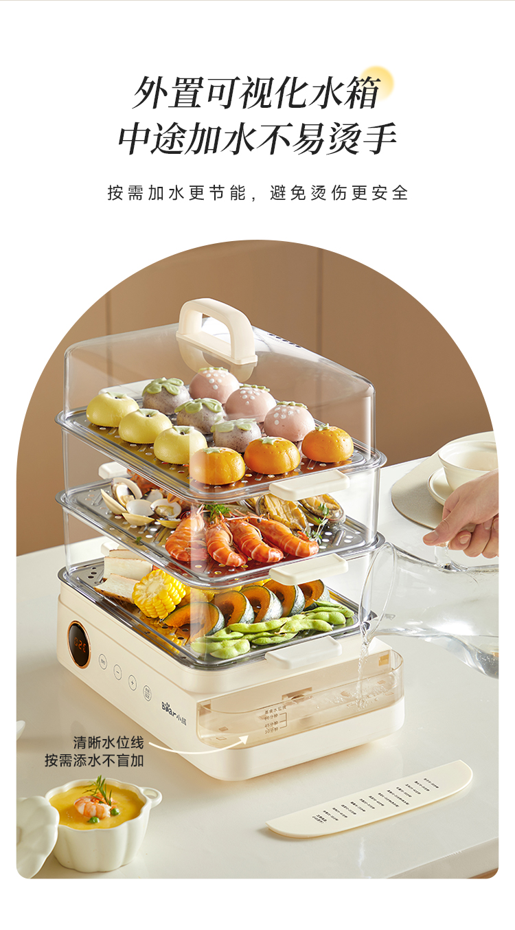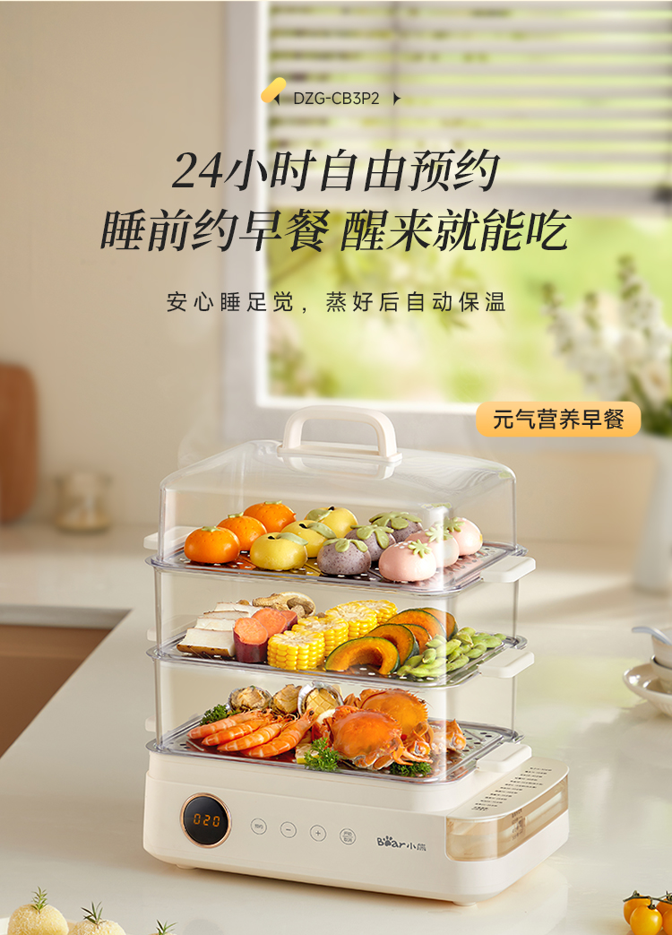 小熊/Bear 电蒸锅 DZG-CB3P2 米白色 电子式 三层蒸