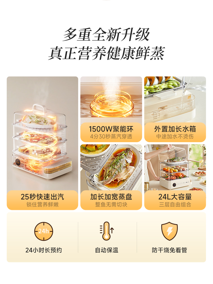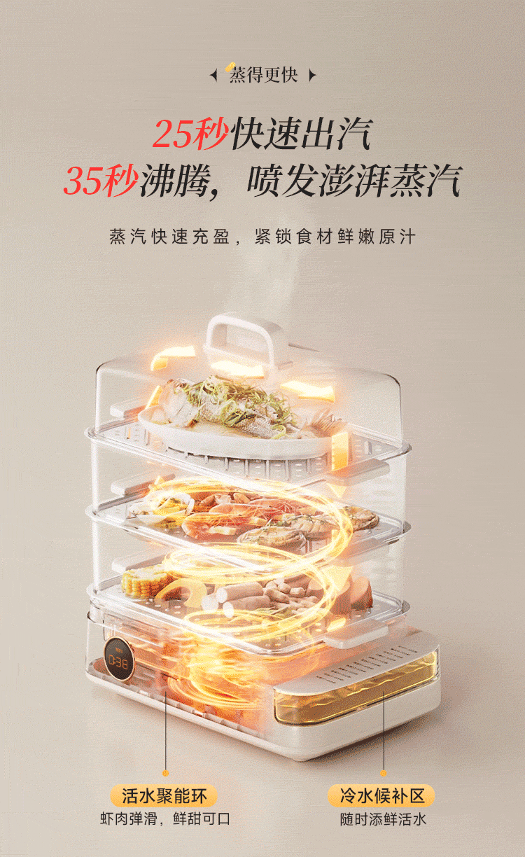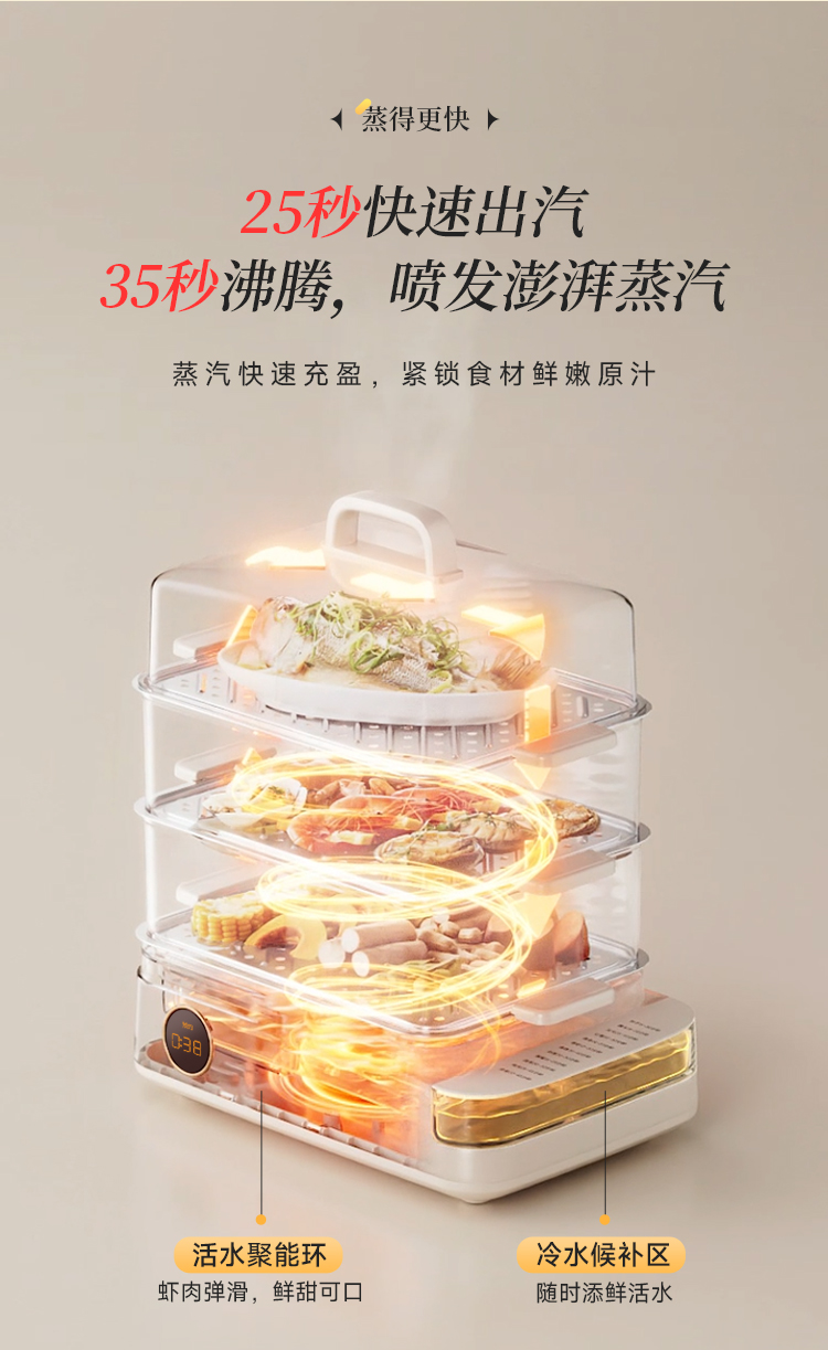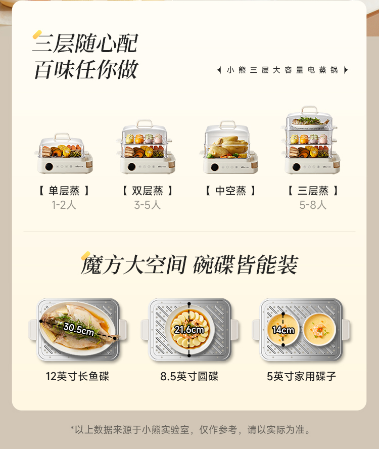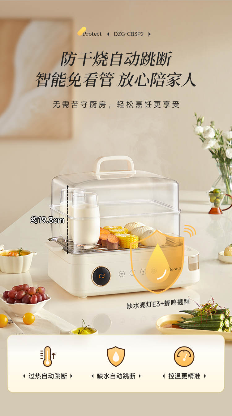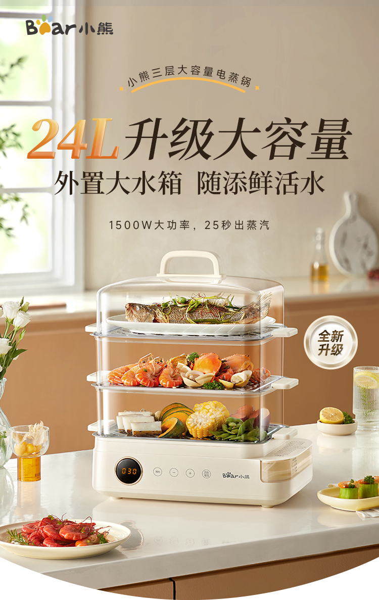 小熊/Bear 电蒸锅 DZG-CB3P2 米白色 电子式 三层蒸