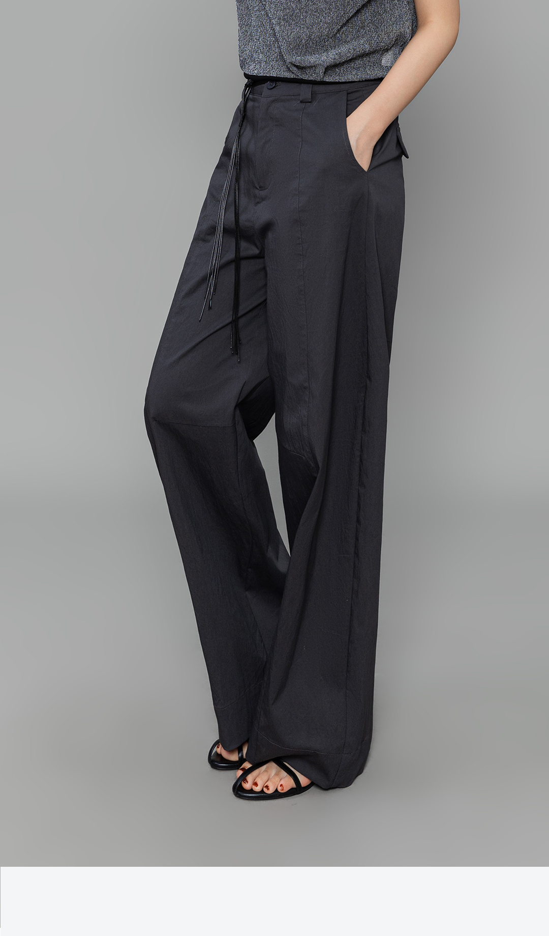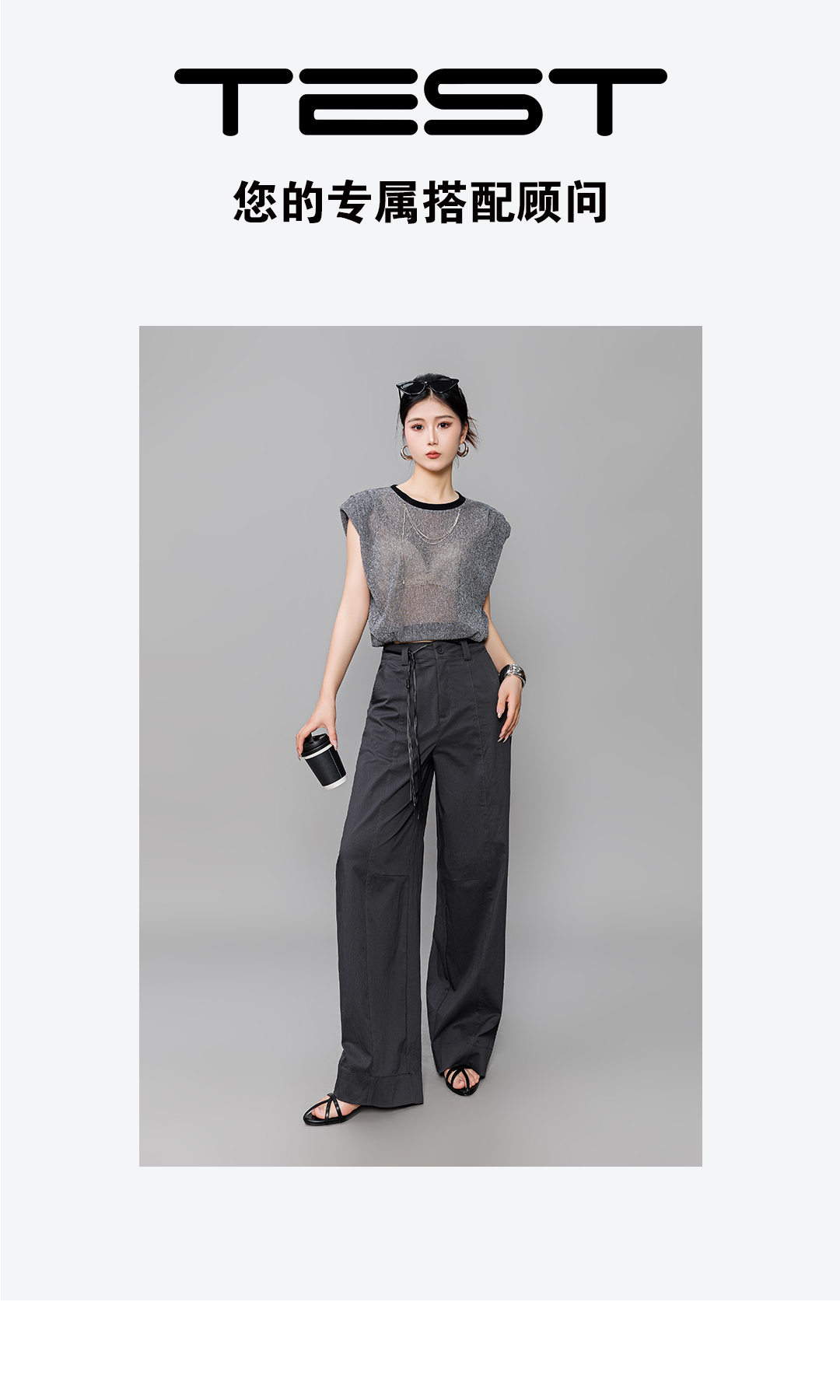 秋上新深灰色垂坠感阔腿侧边抽绳设计宽松休闲长裤3253011